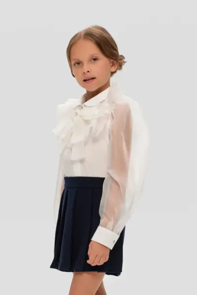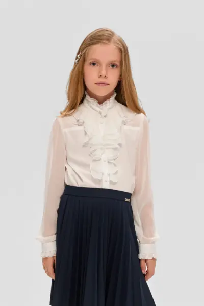 В школьном гардеробе девочки лучше иметь две-три блузки на случай стирки и просто для того, чтобы внести в повседневную учебную жизнь разнообразие во французском стиле. Используемая в моделях блузок фурнитура отличается великолепным европейским качеством: застежки-молнии, кнопочки, стильные пуговки будут надежно служить своей хозяйке в течение всего периода ношения.