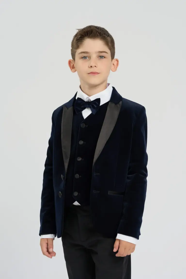 Стильный детский пиджак выполнен из мягкого бархатного материала, который придает ему роскошный вид. Атласные лацканы добавляют элегантности и изысканности. Застежка на пуговицы обеспечивает надежную фиксацию и ... легкость в использовании. Пиджак имеет классический крой, что позволяет легко сочетать его с различными брюками. Мягкая подкладка из вискозы обеспечивает дополнительный комфорт во время носки.