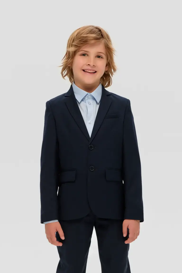 Элегантный пиджак – обязательный элемент одежды для школьника! Этот пиджак прямого силуэта изготовлен из ткани смешанного состава. Отличительные особенности модели: прямой крой, отложной воротник с лацканами ... и застежка на две пуговицы. Предусмотрены нагрудный кармашек и боковые карманы с клапанами. Внутри пиджака есть потайной карман, а сзади – разрез (шлица). Подкладка этой модели классического стиля отличается высоким содержанием вискозы.