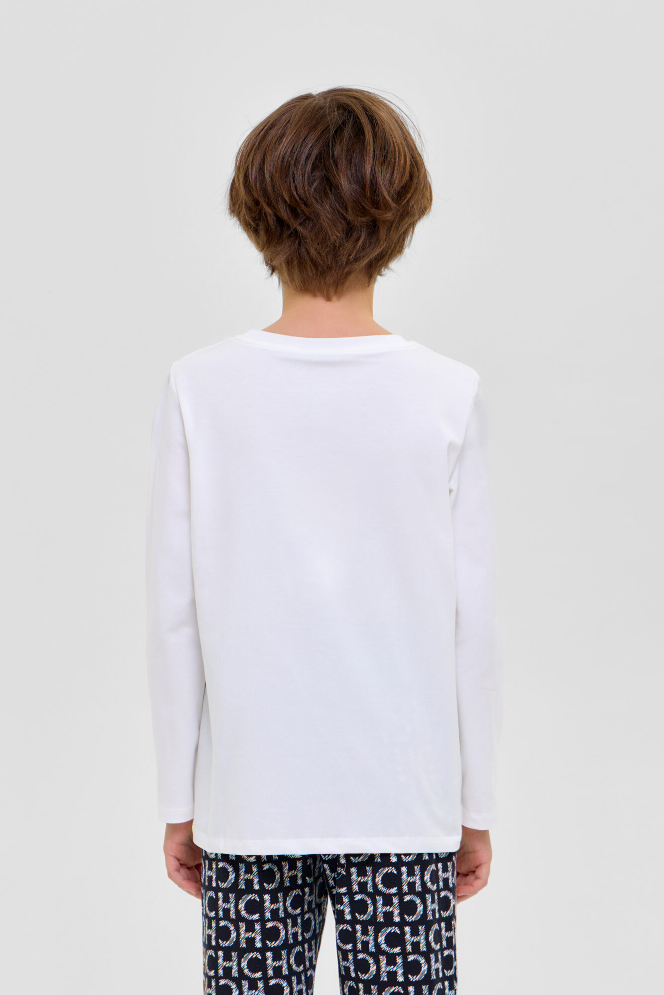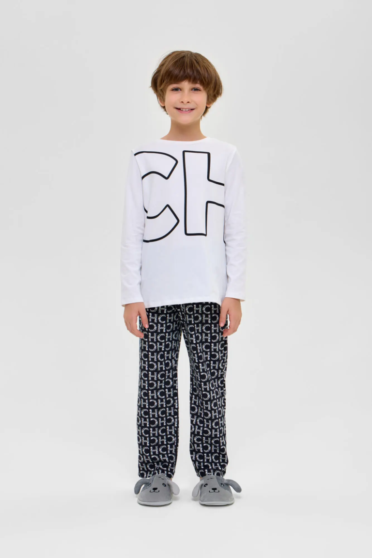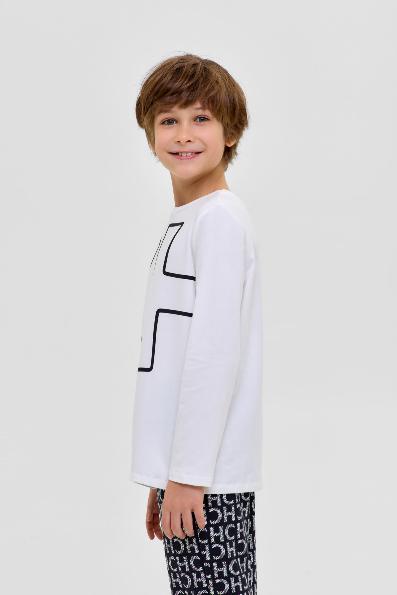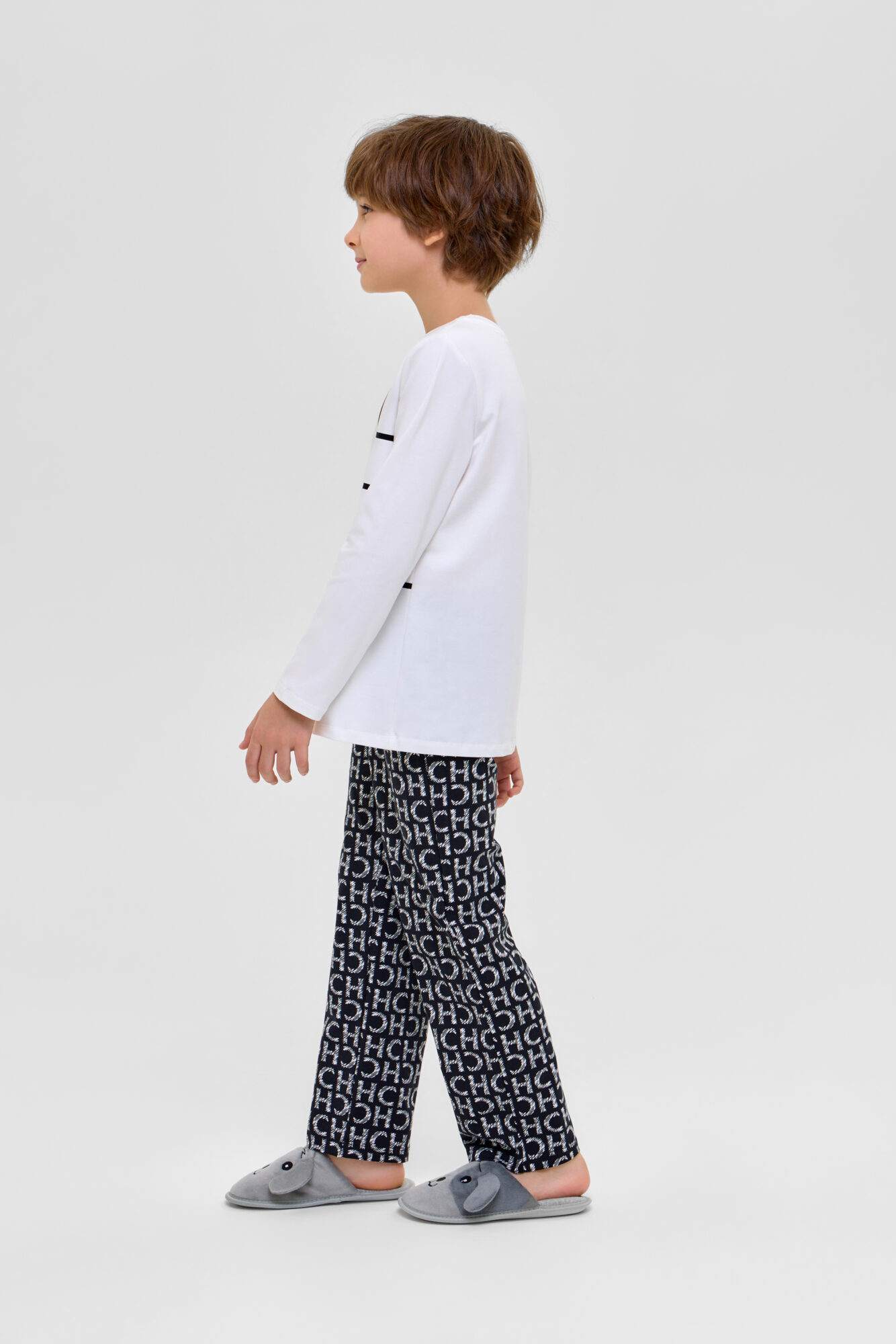 Домашний комплект для мальчика состоит из футболки и штанов, выполненных из смесового материала высокого качества. Футболка свободного кроя с длинными рукавами и обработанным бейкой воротом. Штаны ... с эластичной резинкой на поясе обеспечивают комфорт и удобство при носке. Этот комплект идеально подходит как домашнего использования, так и для сна в качестве пижамы.