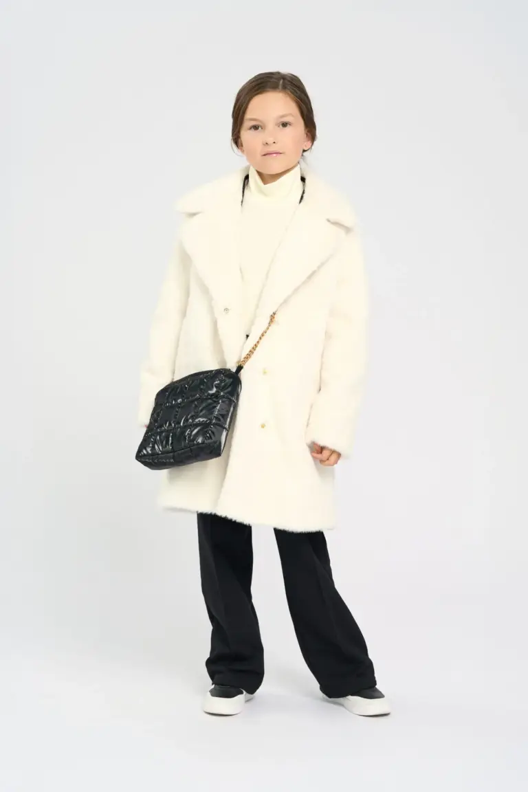 Элегантное пальто из искусственного меха для девочки станет идеальным дополнением к осеннему гардеробу. Модель свободного кроя. Его универсальный цвет и лаконичный дизайн позволяют без труда комбинировать ... его с различными комплектами – будь то классическое платье для праздничного мероприятия или уютный свитер и джинсы для повседневной носки. Каждая юная модница оценит возможность создать свой уникальный образ, дополняя пальто различными аксессуарами. Модная сумка на цепочке отлично подчеркивает общий стиль, создавая гармоничный образ для маленькой леди. Легкий, но теплый полиэфирный утеплитель обеспечивает комфорт даже в самые прохладные дни.