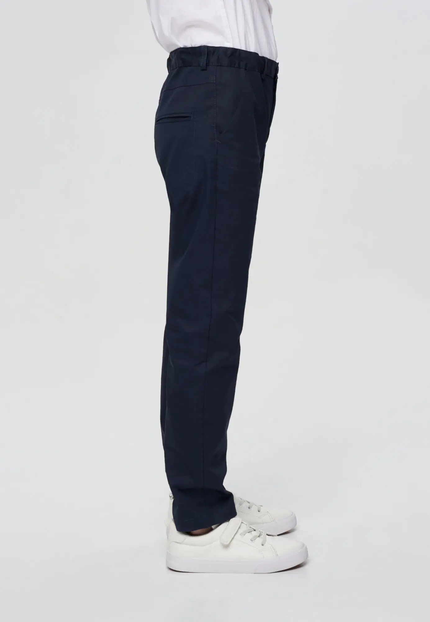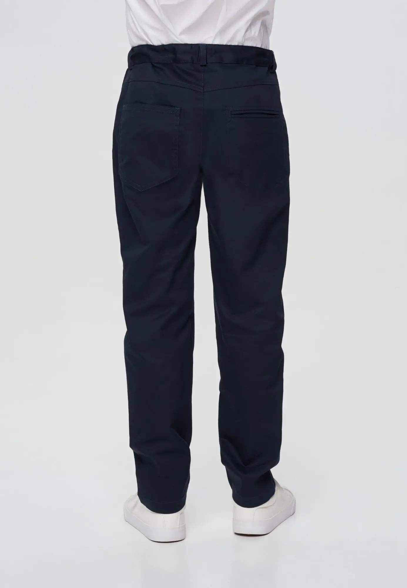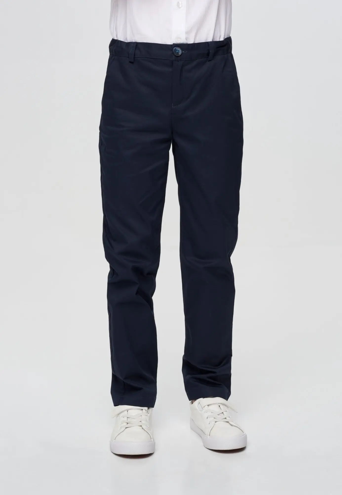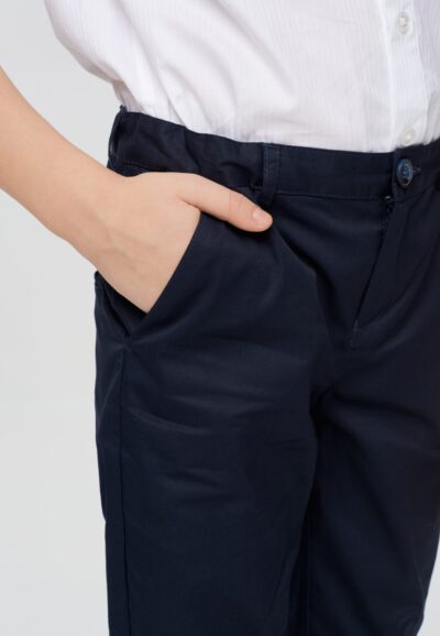 Брюки чинос из хлопка — идеальный выбор для стильного и модного образа. Классический синий цвет делает их универсальными, подходящими для различных случаев. Прямой крой не сковывает ... движений и создает элегантный силуэт. Застежка на молнию и пуговицу гарантирует надежную фиксацию и удобство. На поясе предусмотрены шлевки для ремня. Хлопковая ткань обеспечивает комфорт и хорошую воздухопроницаемость. Брюки легко стирать, они быстро сохнут, что делает их практичными в повседневной носке.