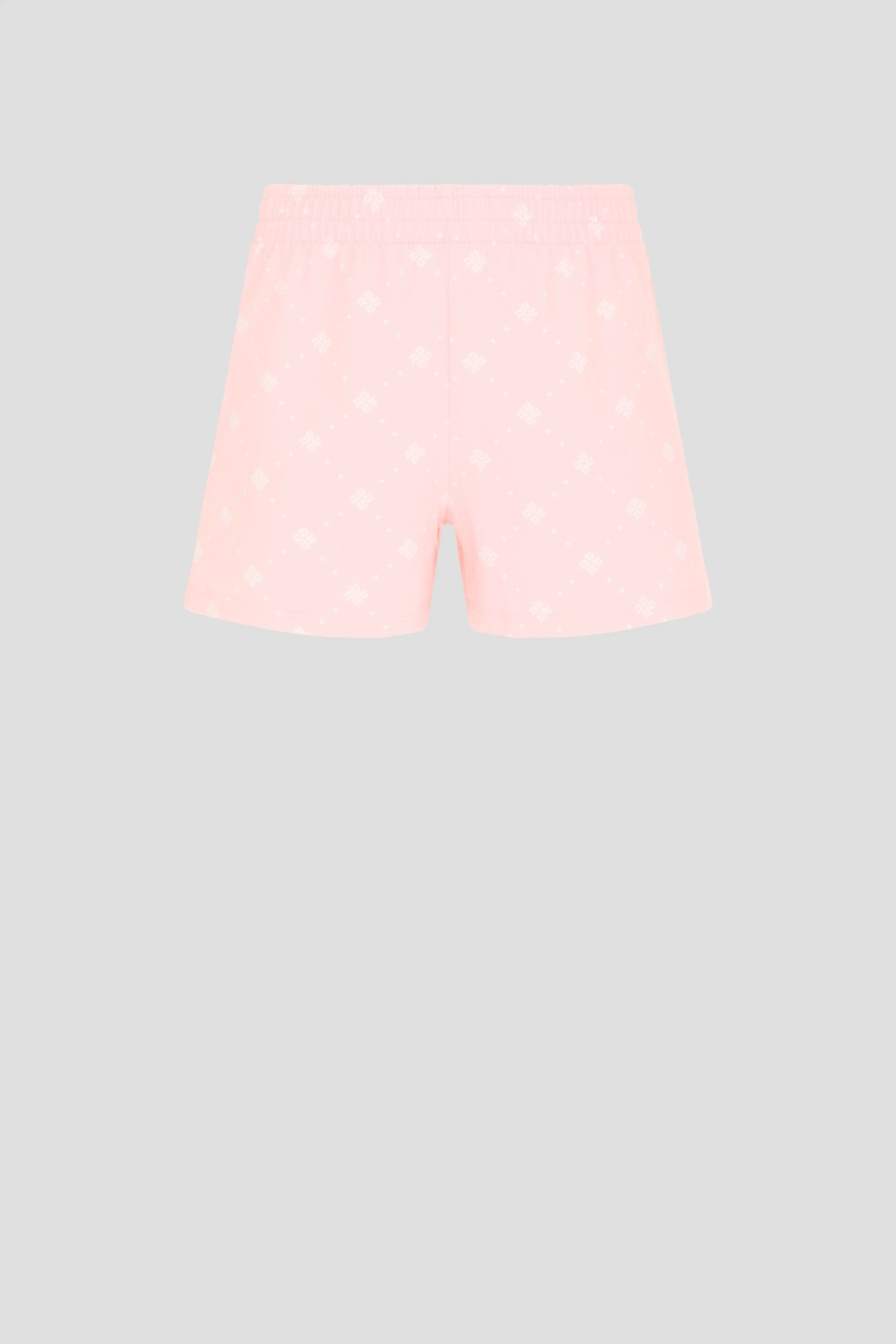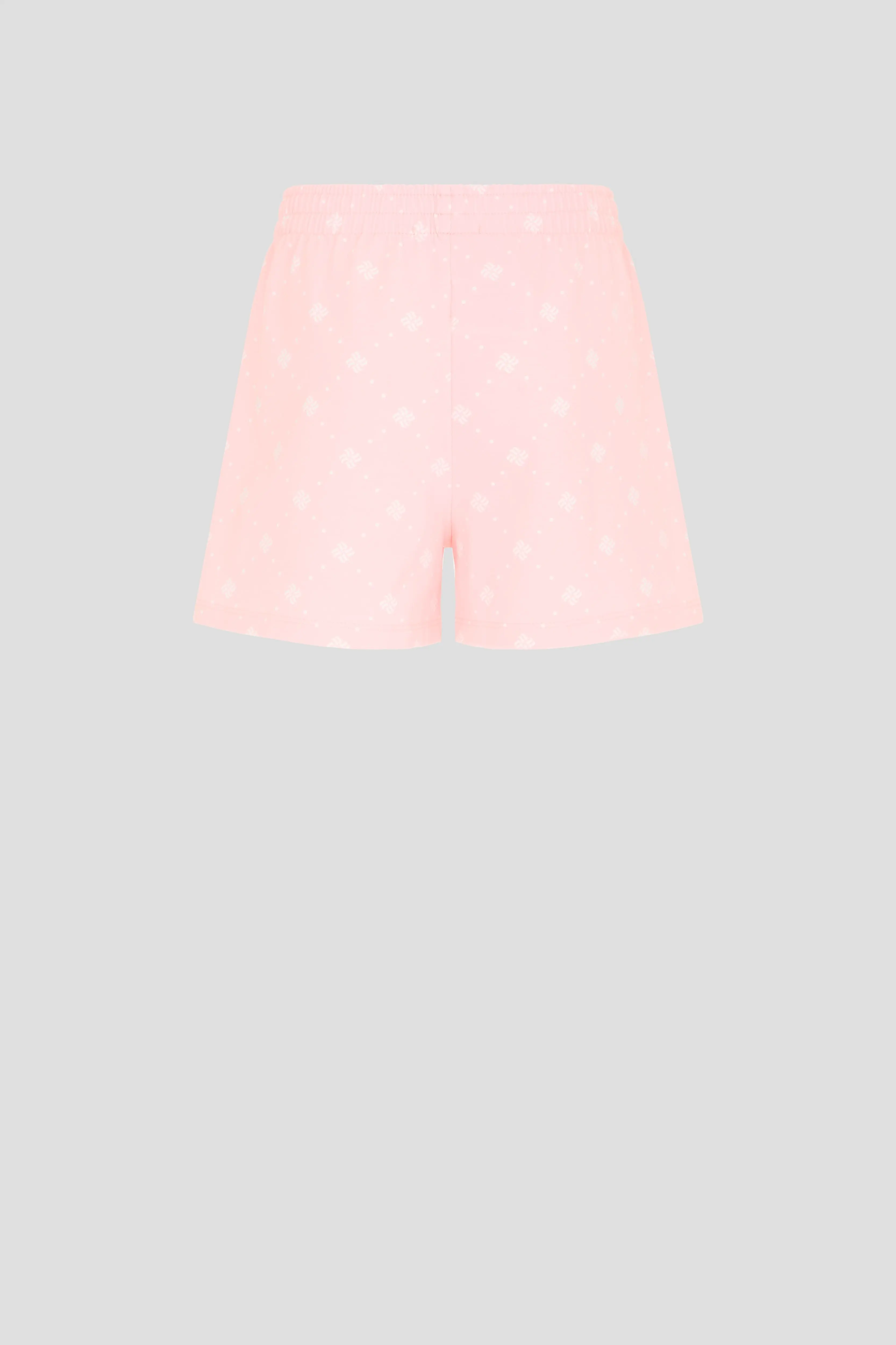 Широкие шорты приятного розового ... оттенка имеют на поясе эластичную резинку.