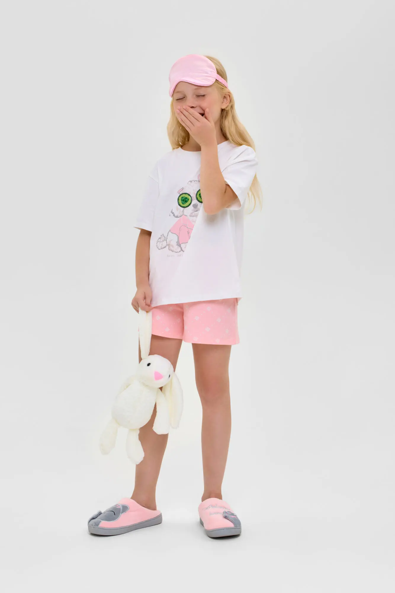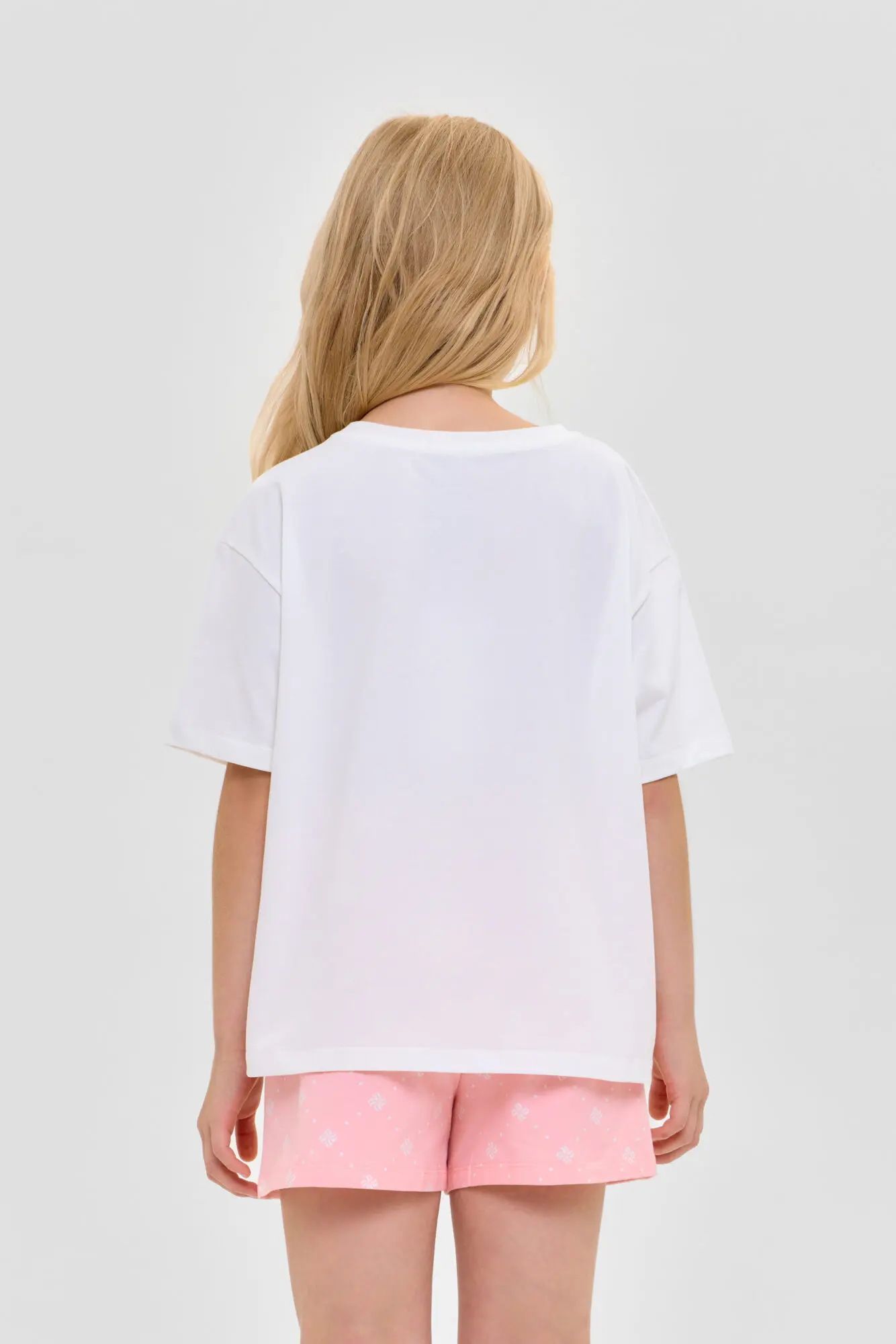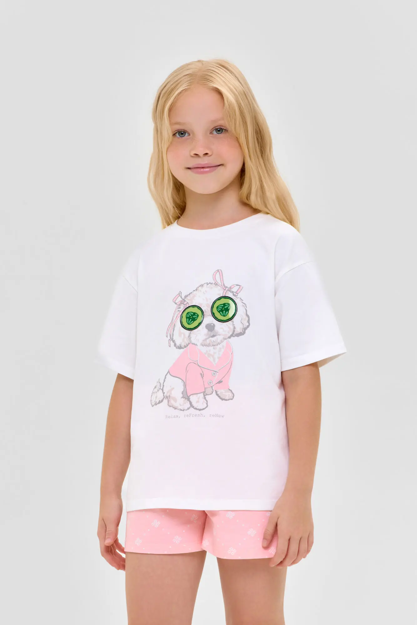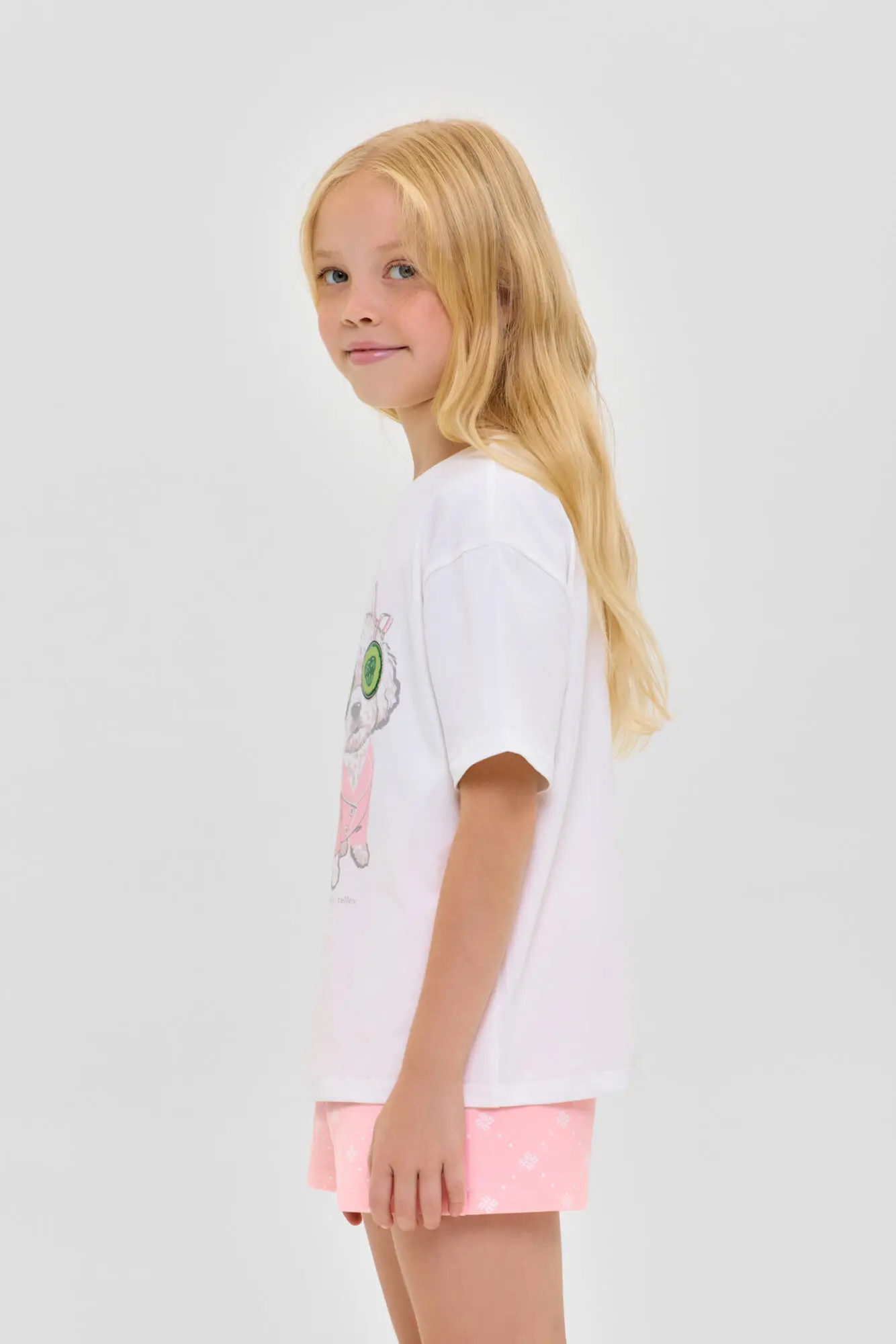 Удобная пижама для девочки выполнена из материала высокого качества. Модель состоит из футболки с коротким рукавом и шорт. Украшает изделие модный анималистический принт.