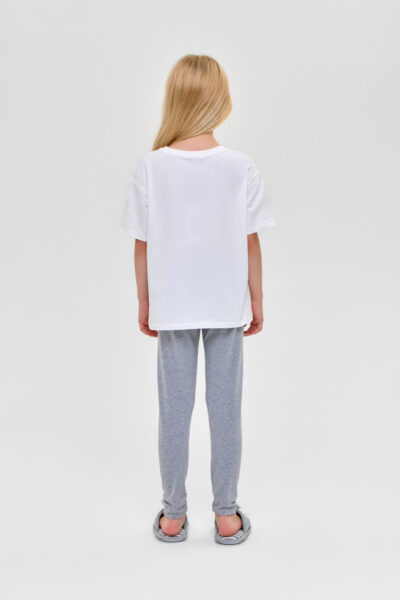 Практичный домашний комплект для девочки. Благодаря использованию качественного смесового материала изделие приятно на ощупь, поэтому его можно использовать в качестве пижамы.