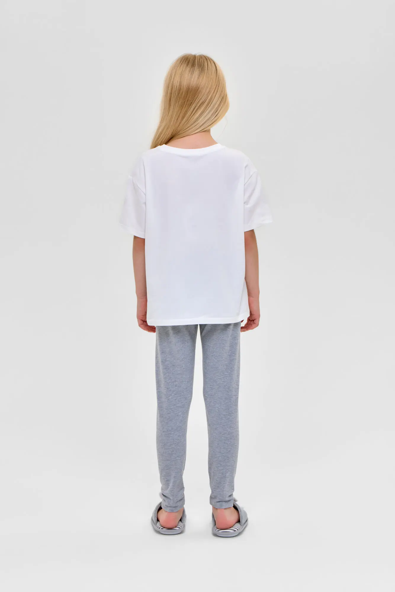 Практичный домашний комплект для девочки. Благодаря использованию качественного смесового материала изделие приятно на ощупь, поэтому его можно использовать в качестве пижамы.