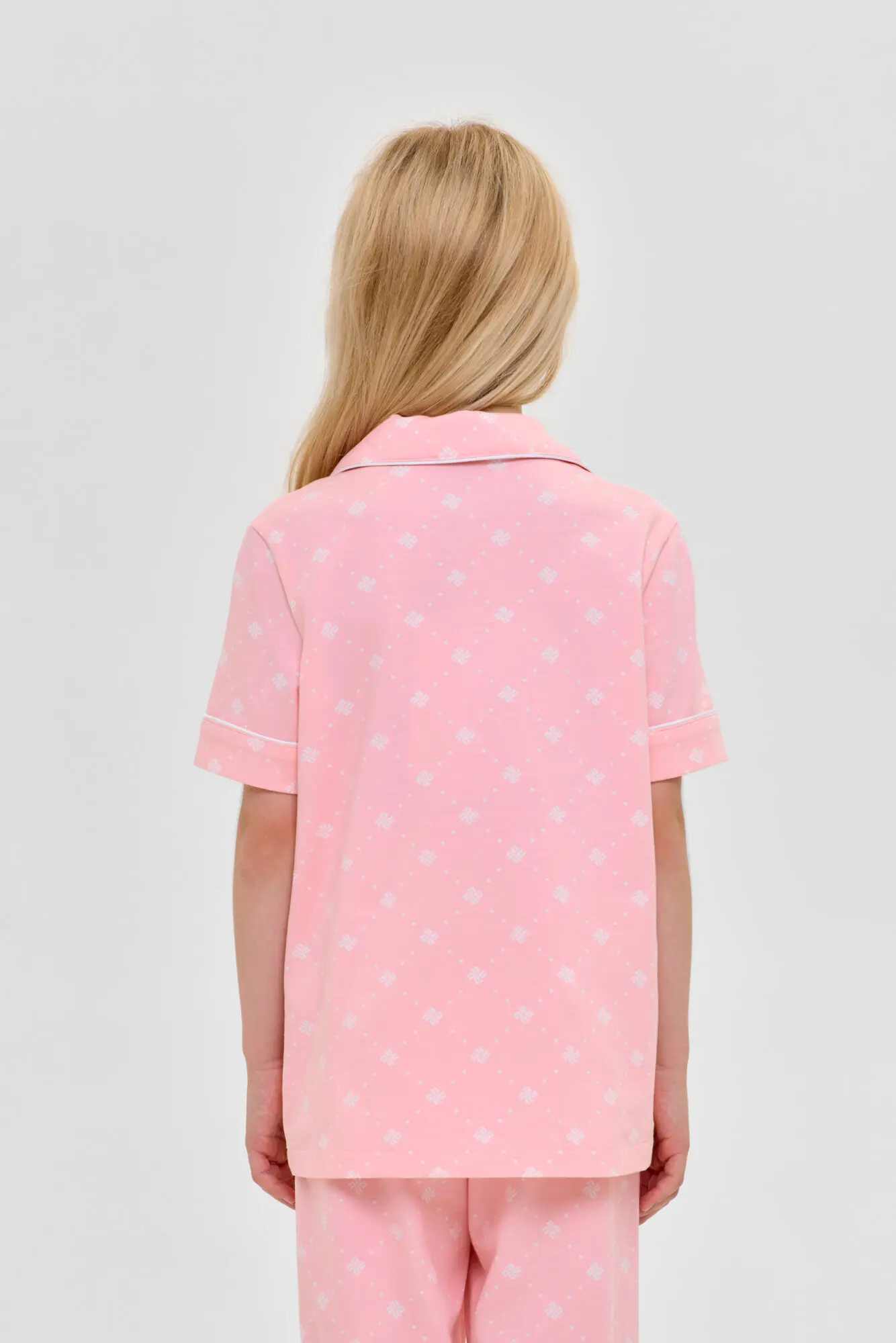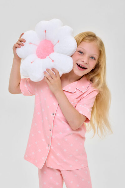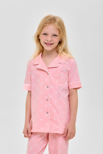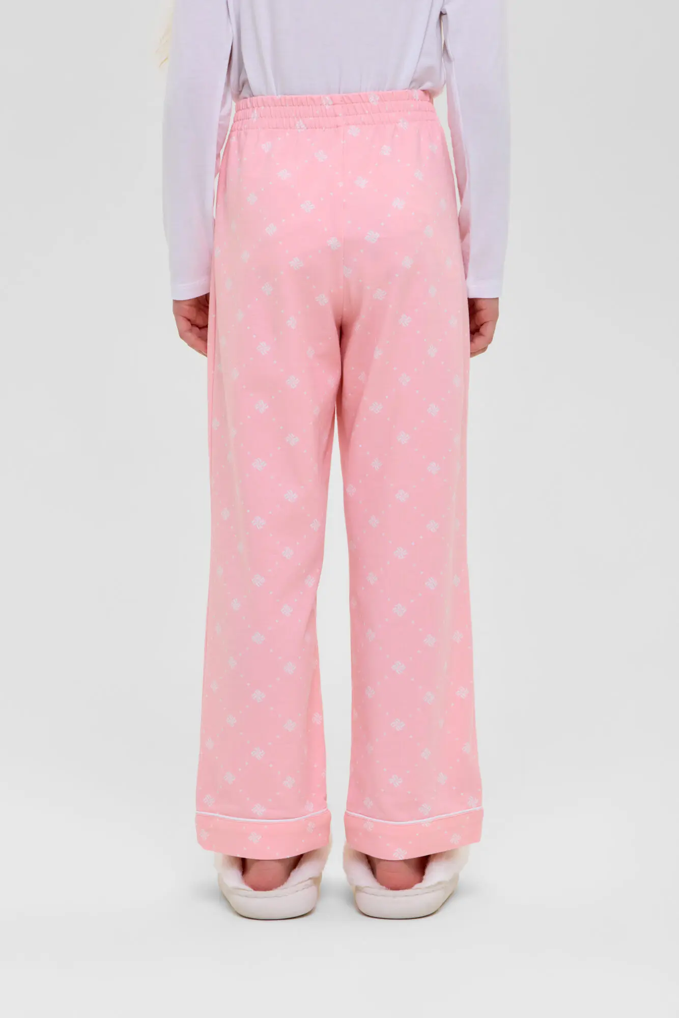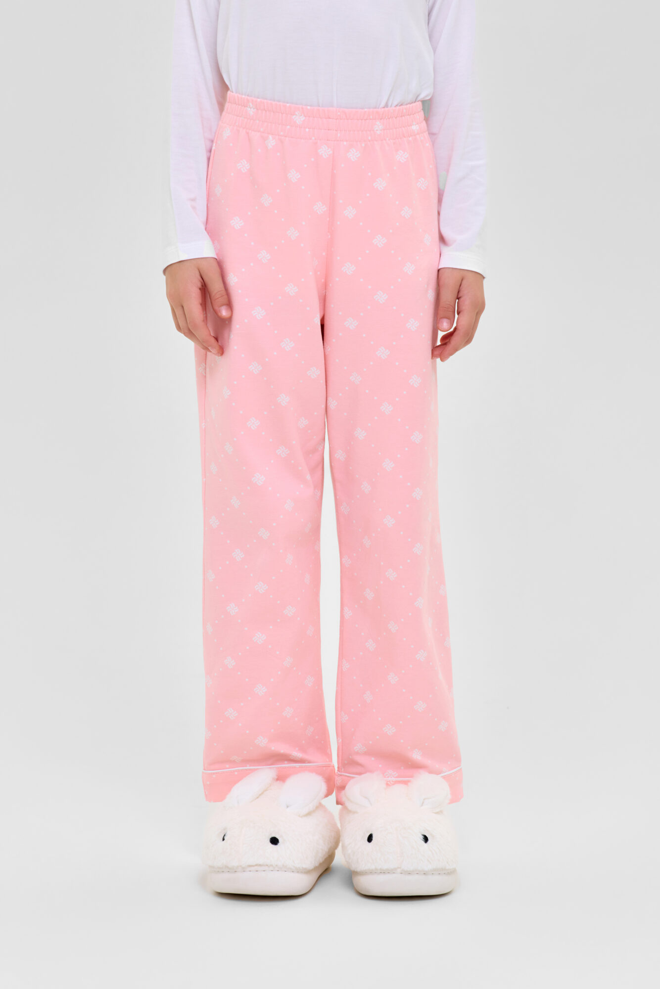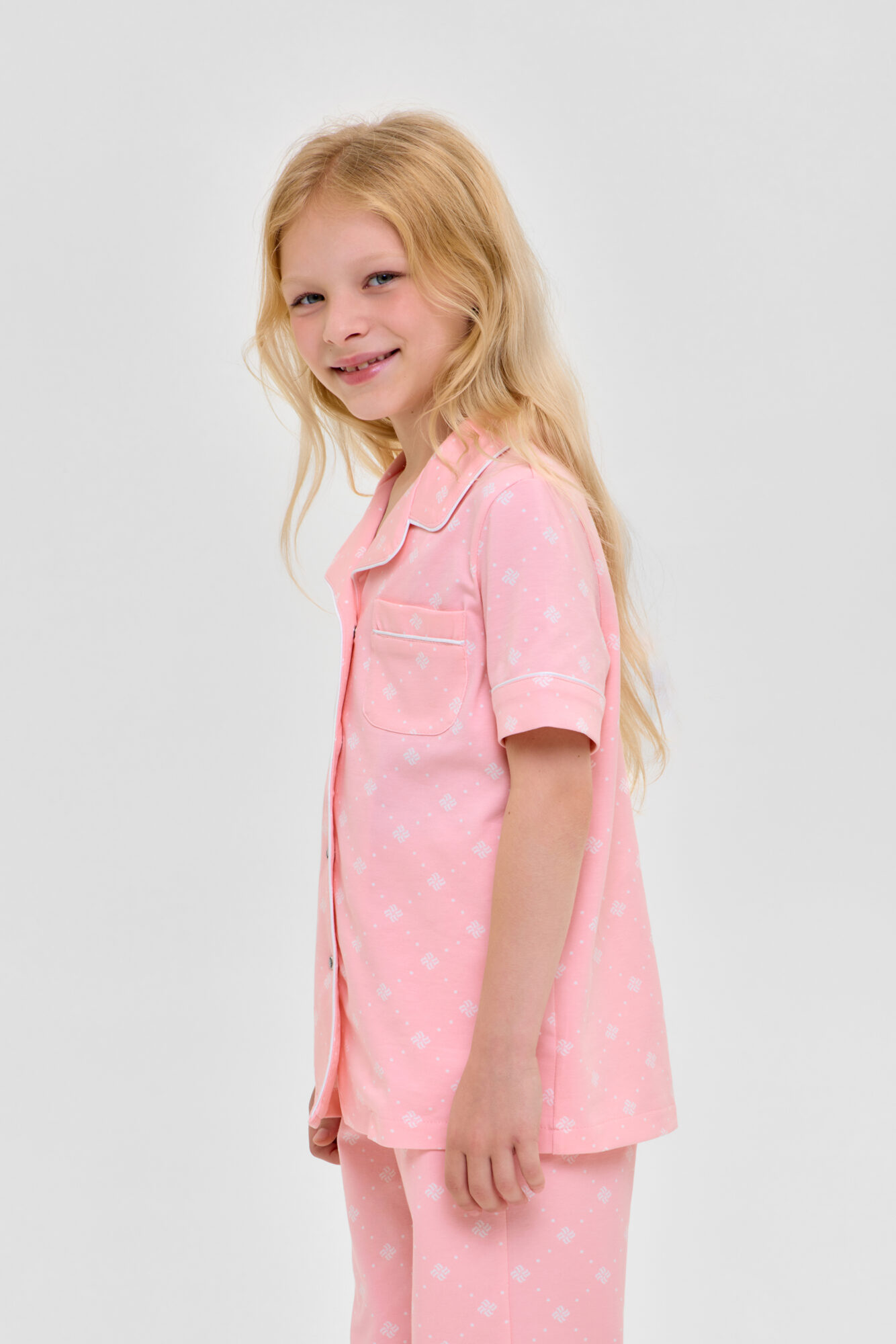 Нежный домашний комплект для девочки, состоящий из хлопковой рубашки и брюк. Рубашка свободного кроя с отложным воротником и застежкой на пуговицы по всей длине. Брюки с ... широким поясом на эластичной резинке обеспечивают комфортную посадку. Этот комплект универсален: его можно использовать как домашнюю одежду или пижаму. Качественные материалы сохранят форму и внешний вид изделия.