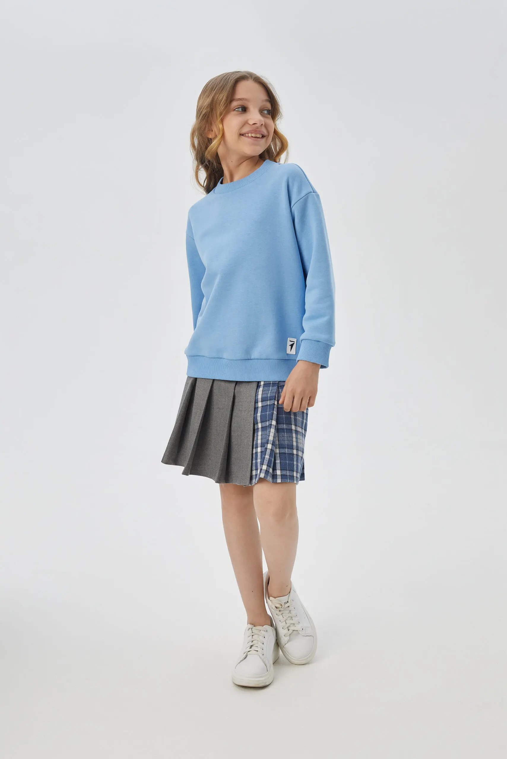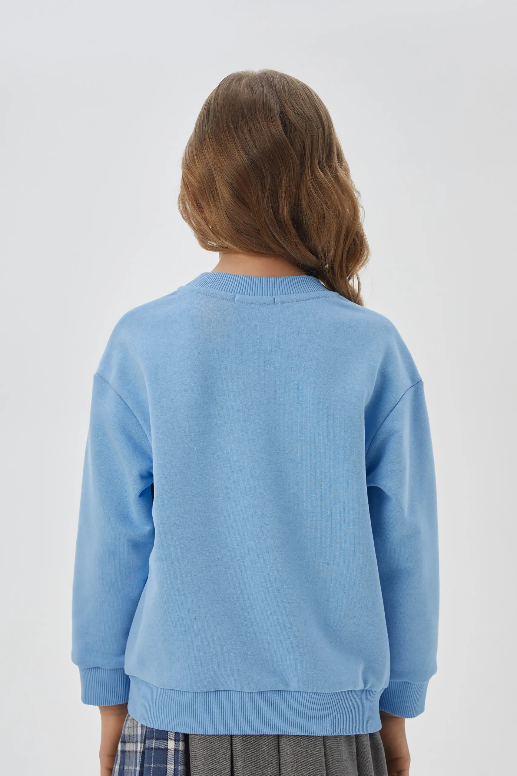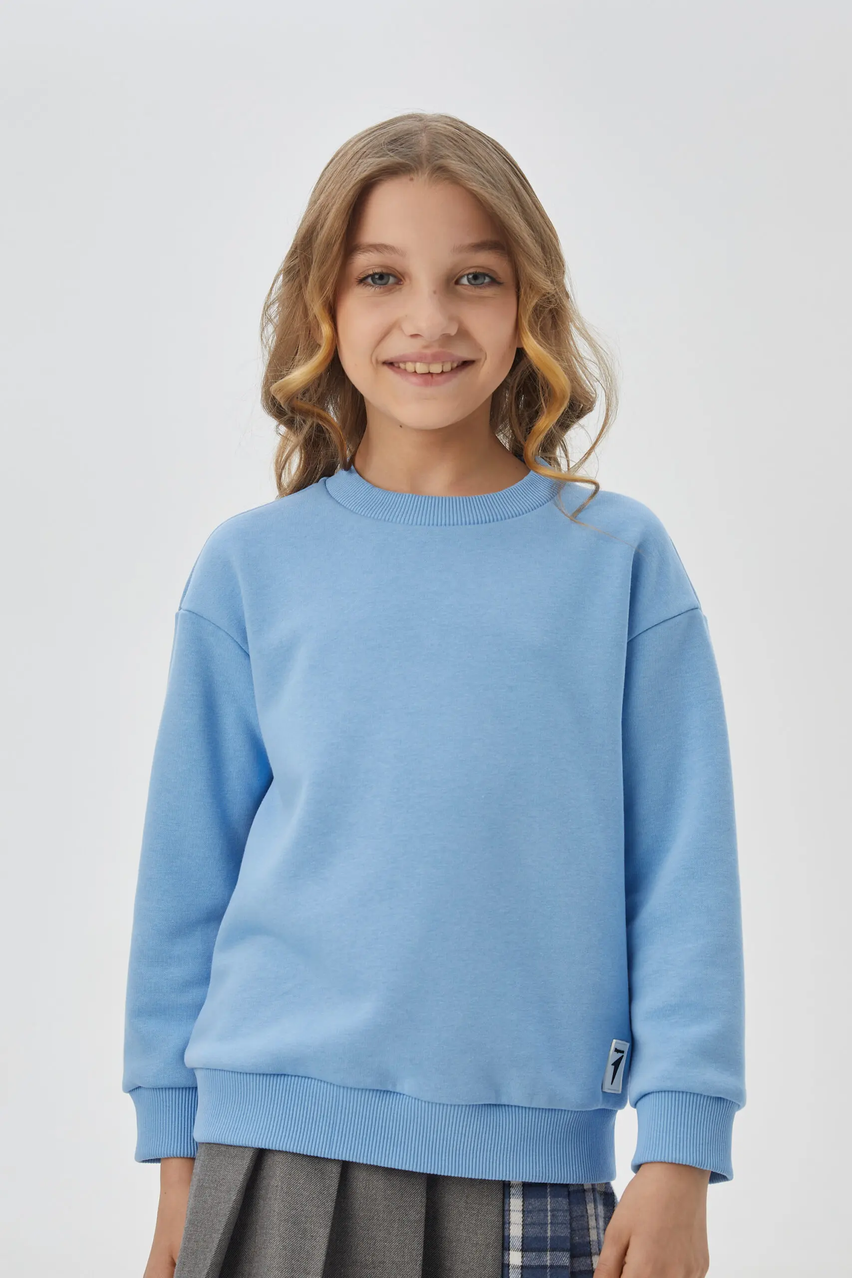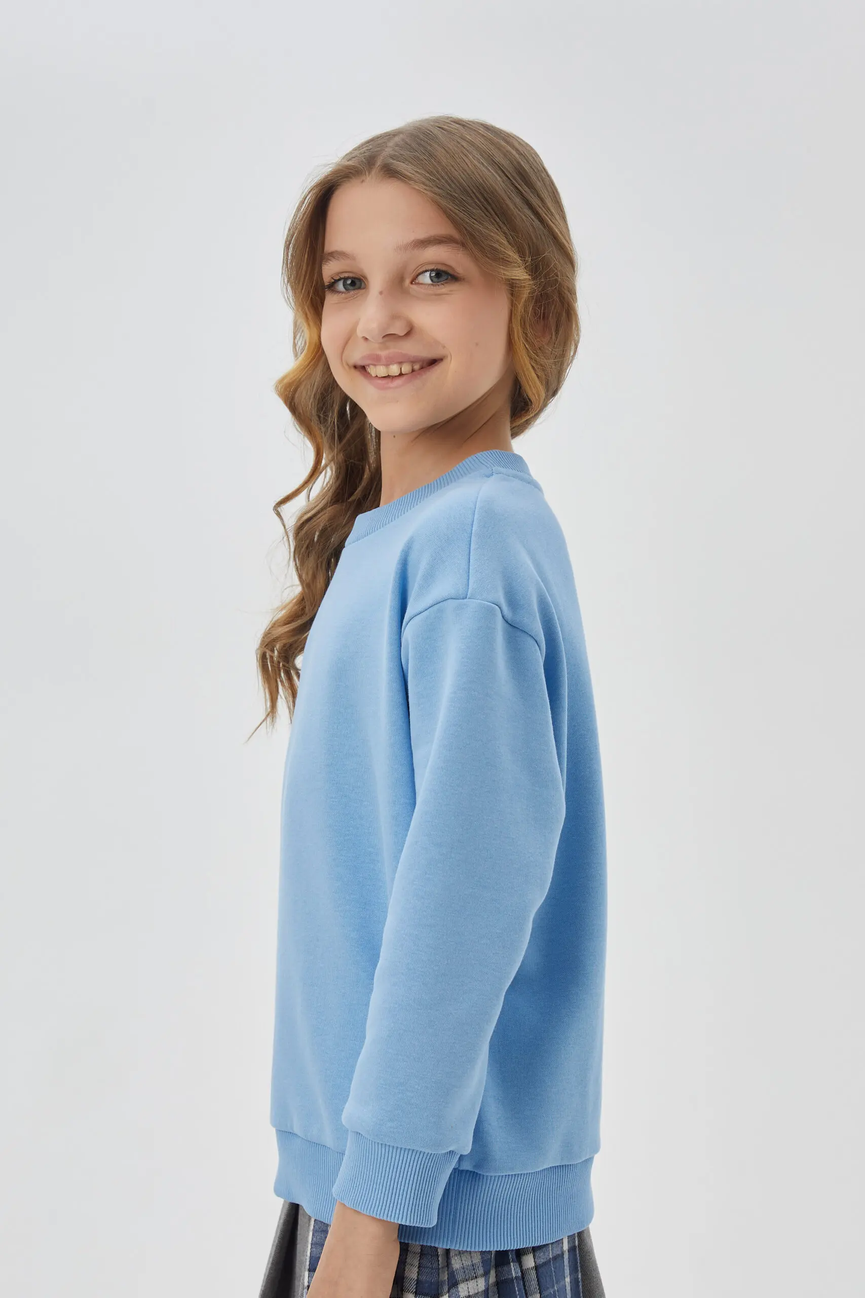 Модный джемпер для девочки – универсальная и удобная вещь, подходящая не только для школы, но и для обычных прогулок. Свободный крой свитшота и полукруглый вырез горловины, ... обработанный аккуратной окантовкой, создают стильный образ. Длинные рукава и нижний край джемпера дополнены широкими эластичными резинками, придающими изделию оригинальность.