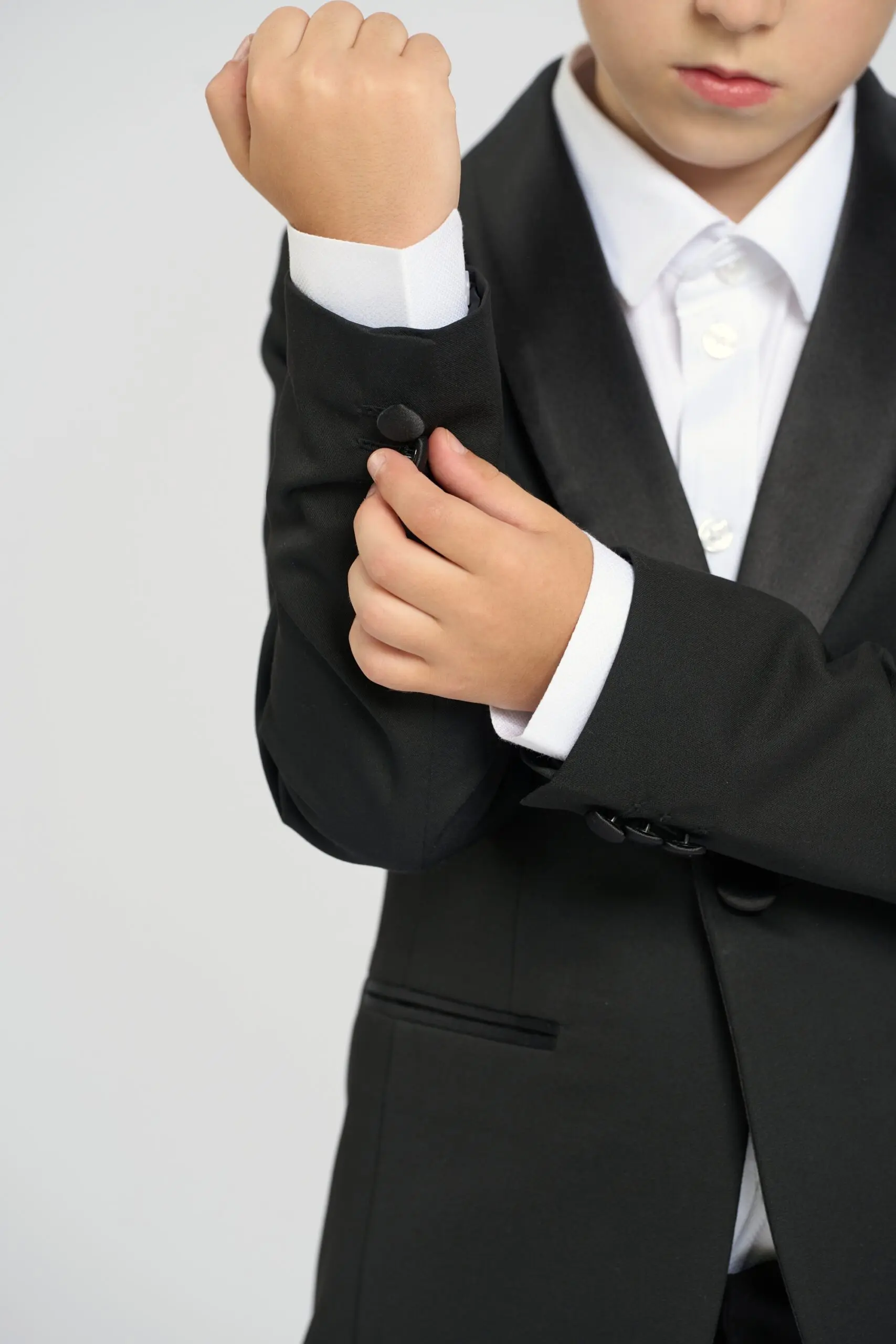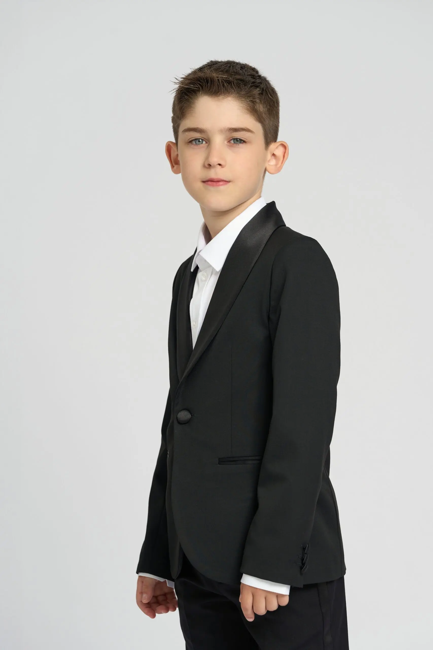 Пиджак-смокинг для мальчика — стильный и элегантный элемент гардероба. Классический дизайн с атласным лацканом придает ему торжественный вид, выделяя маленького джентльмена среди сверстников. Пуговицы и карманы ... оформленные атласной тканью создают дополнительный акцент. Пиджак прекрасно сочетается с классическими брюками и рубашками, создавая завершенный образ. Пиджак подойдет для школьных праздников, семейных торжеств и других значимых мероприятий. Легкий уход за материалом делает его практичным выбором для родителей.