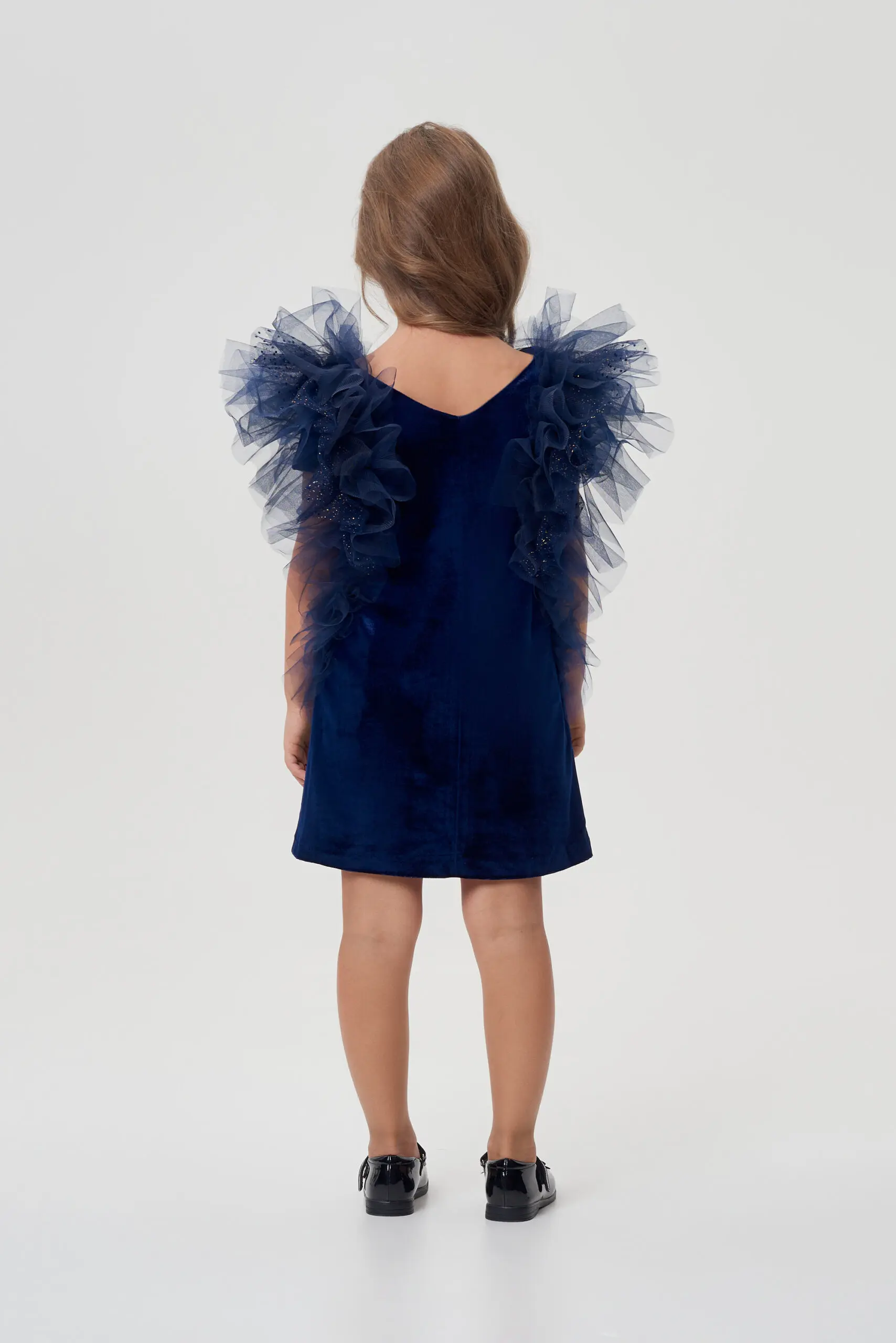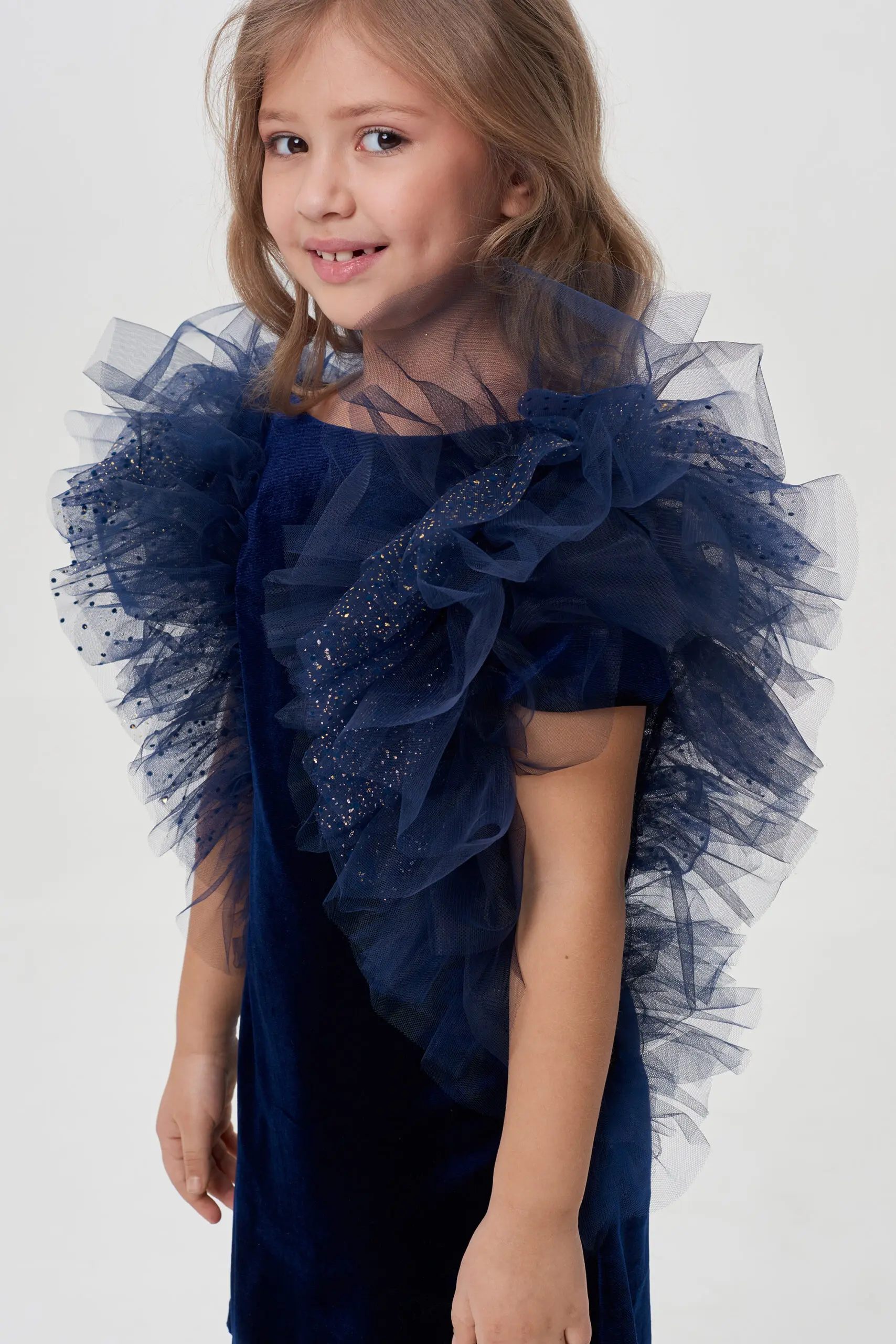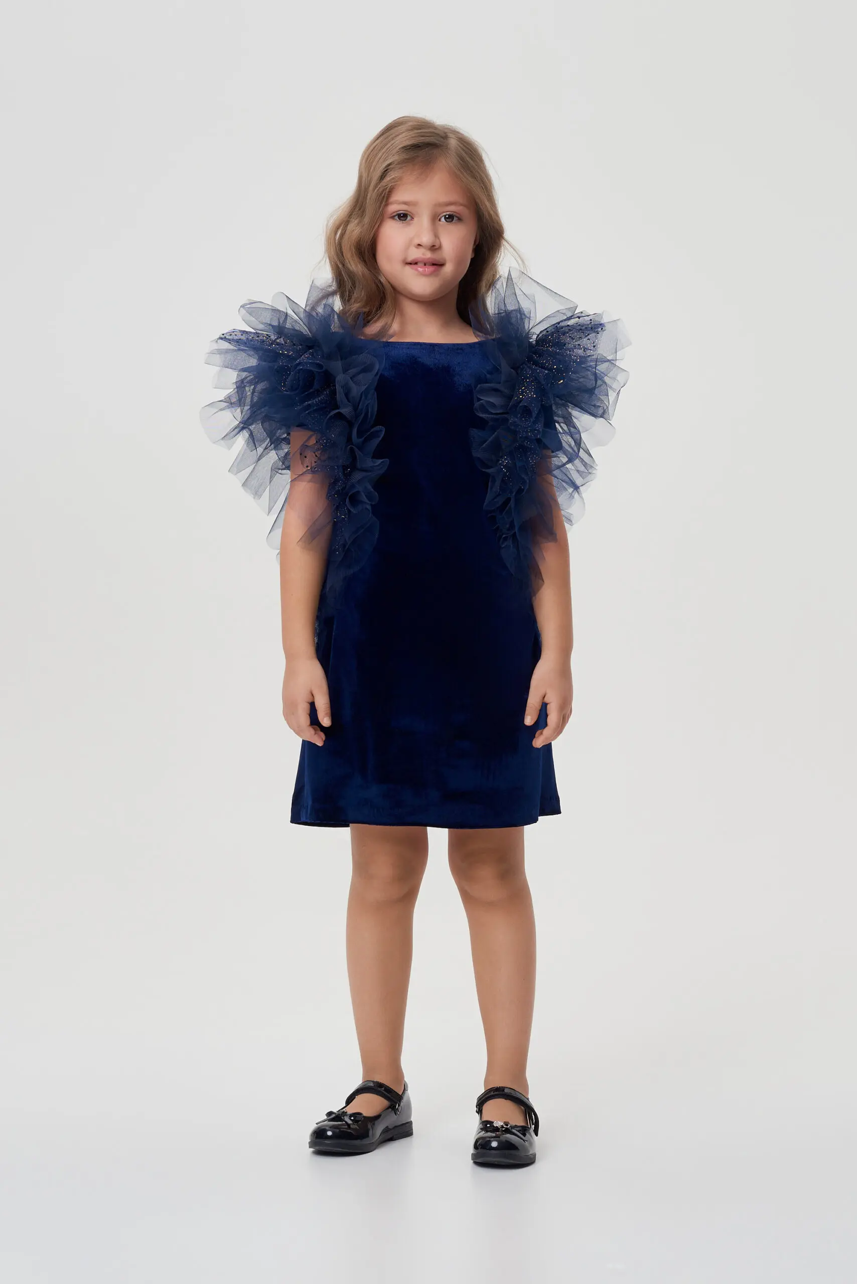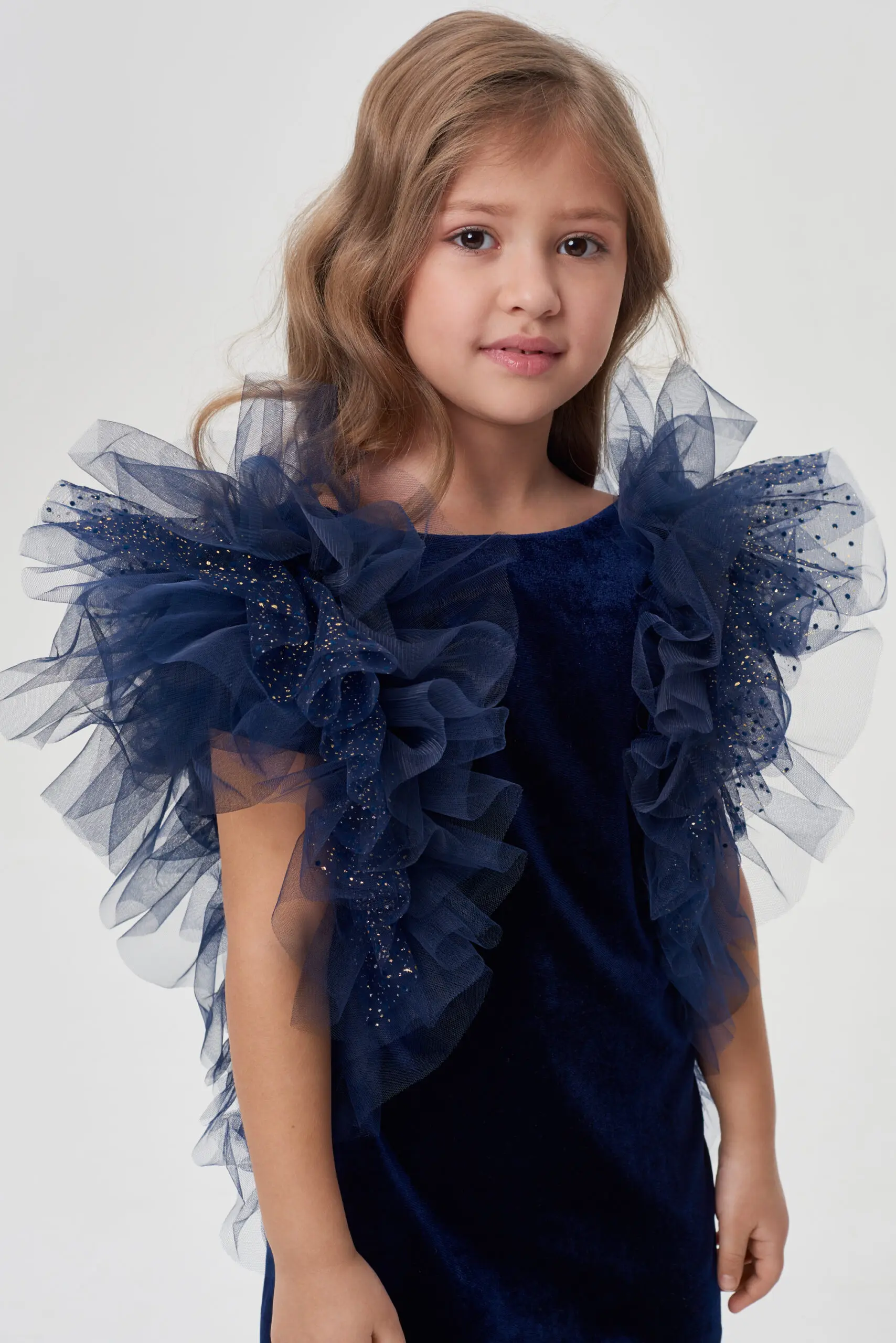 Потрясающее платье из бархата для девочки выполнено в полуприлегающем стиле, придающем модели изысканность и элегантность.