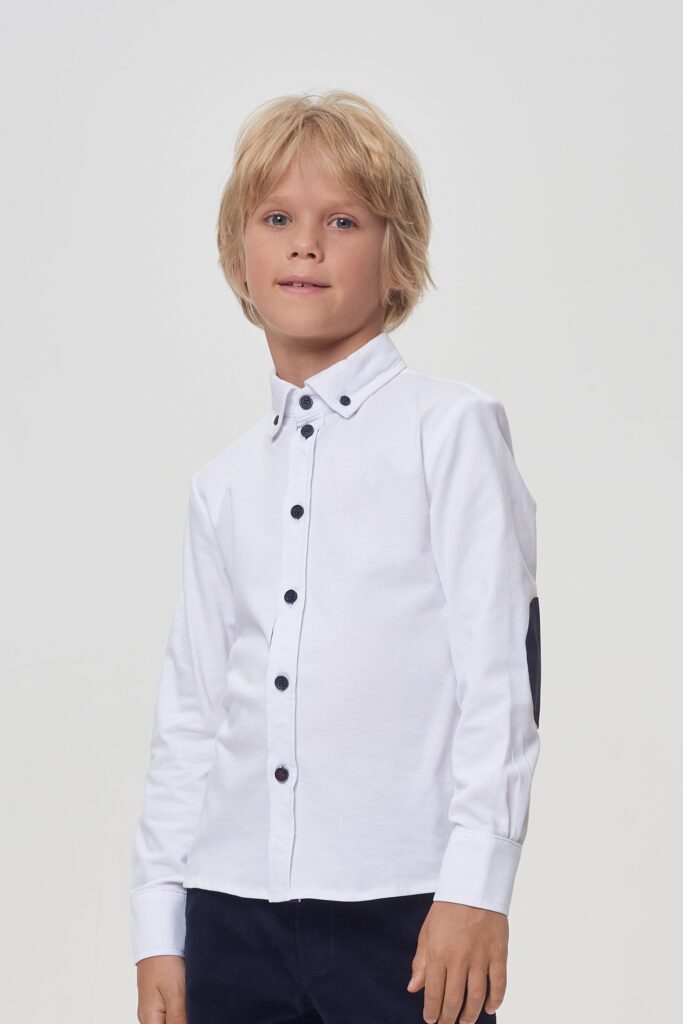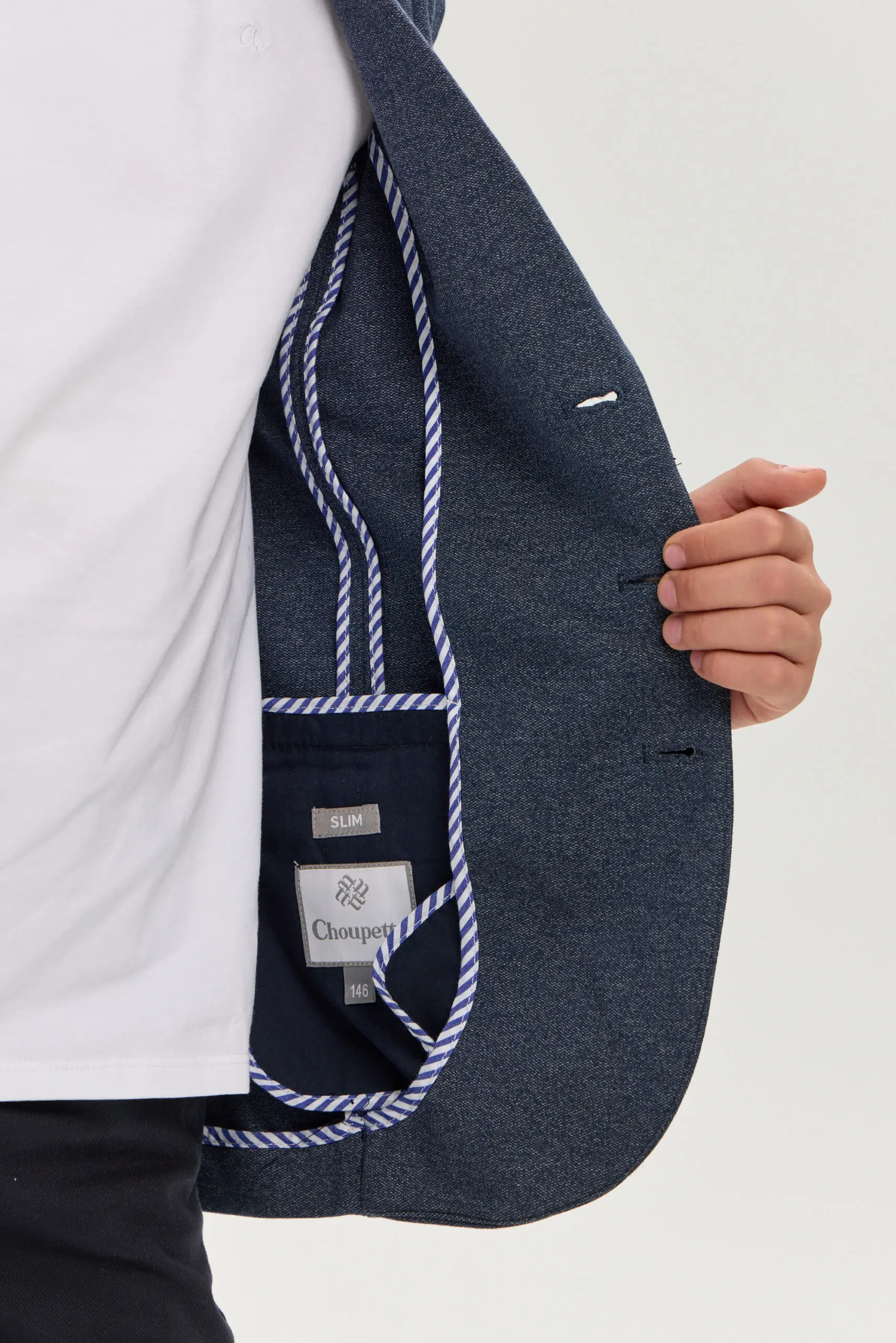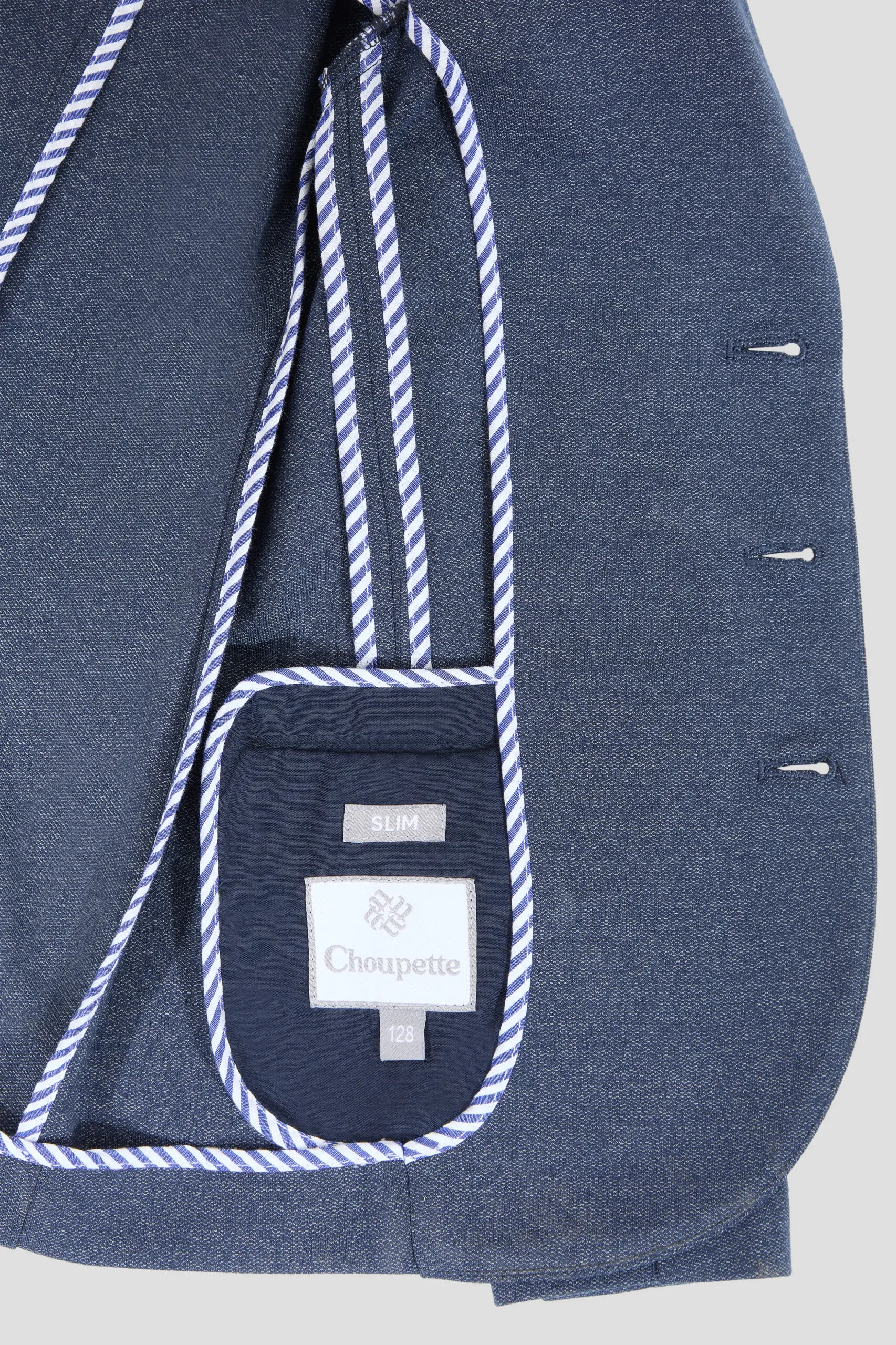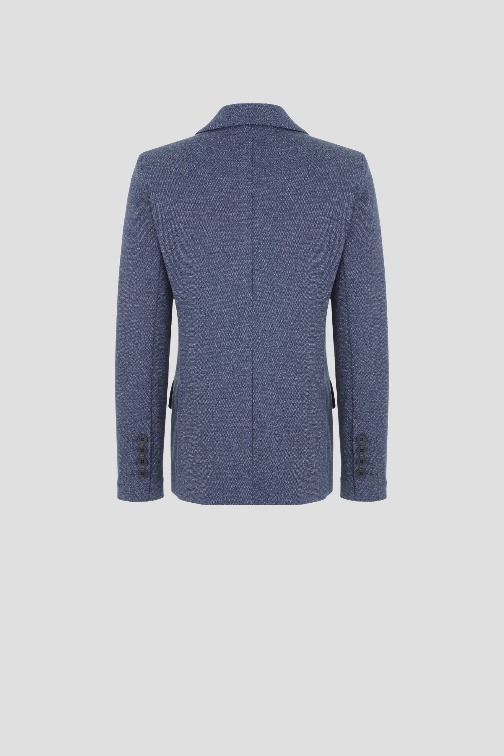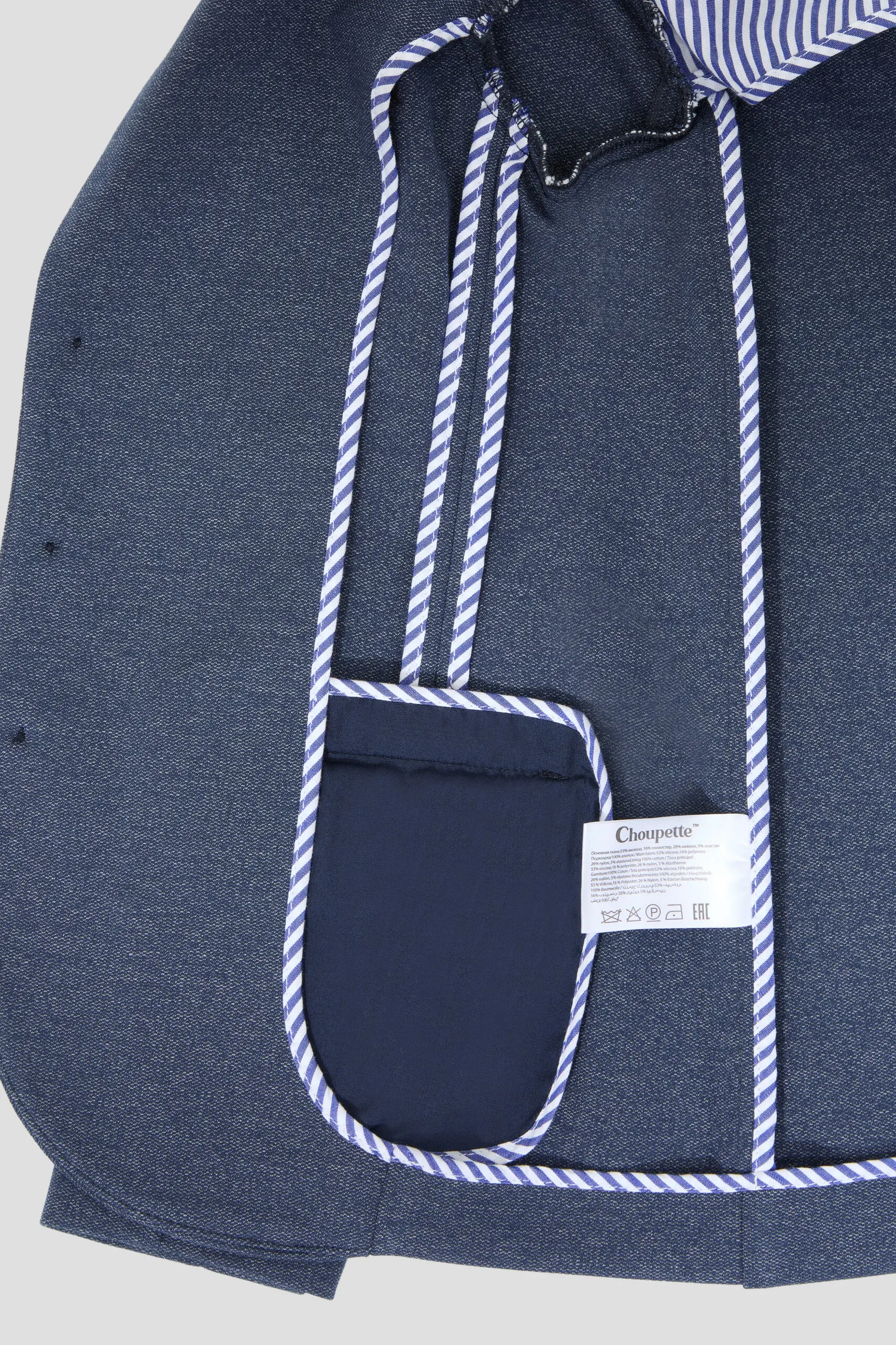 Пиджак из трикотажного полотна – многофункциональный элемент гардероба для юного ученика, который в тандеме со светлой сорочкой или тонким свитером создает нарядный и эффектный внешний вид. ... Отличное решение для торжественного события. Модная и удобная модель из футера в синей гамме имеет традиционный фасон: карманы с клапанами, лацканы на воротнике, шлица сзади. Декоративный элемент – несколько пуговиц на манжетах.