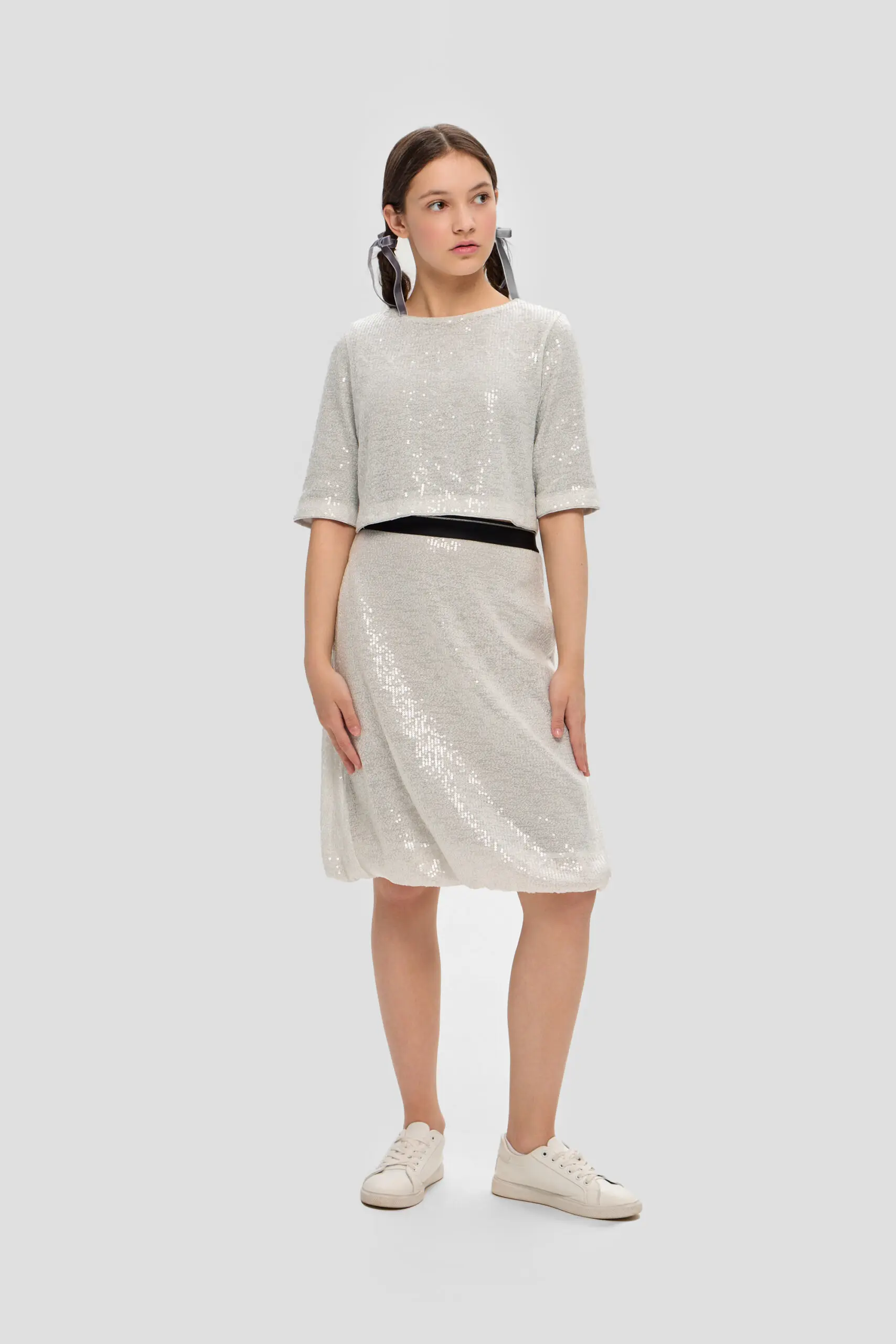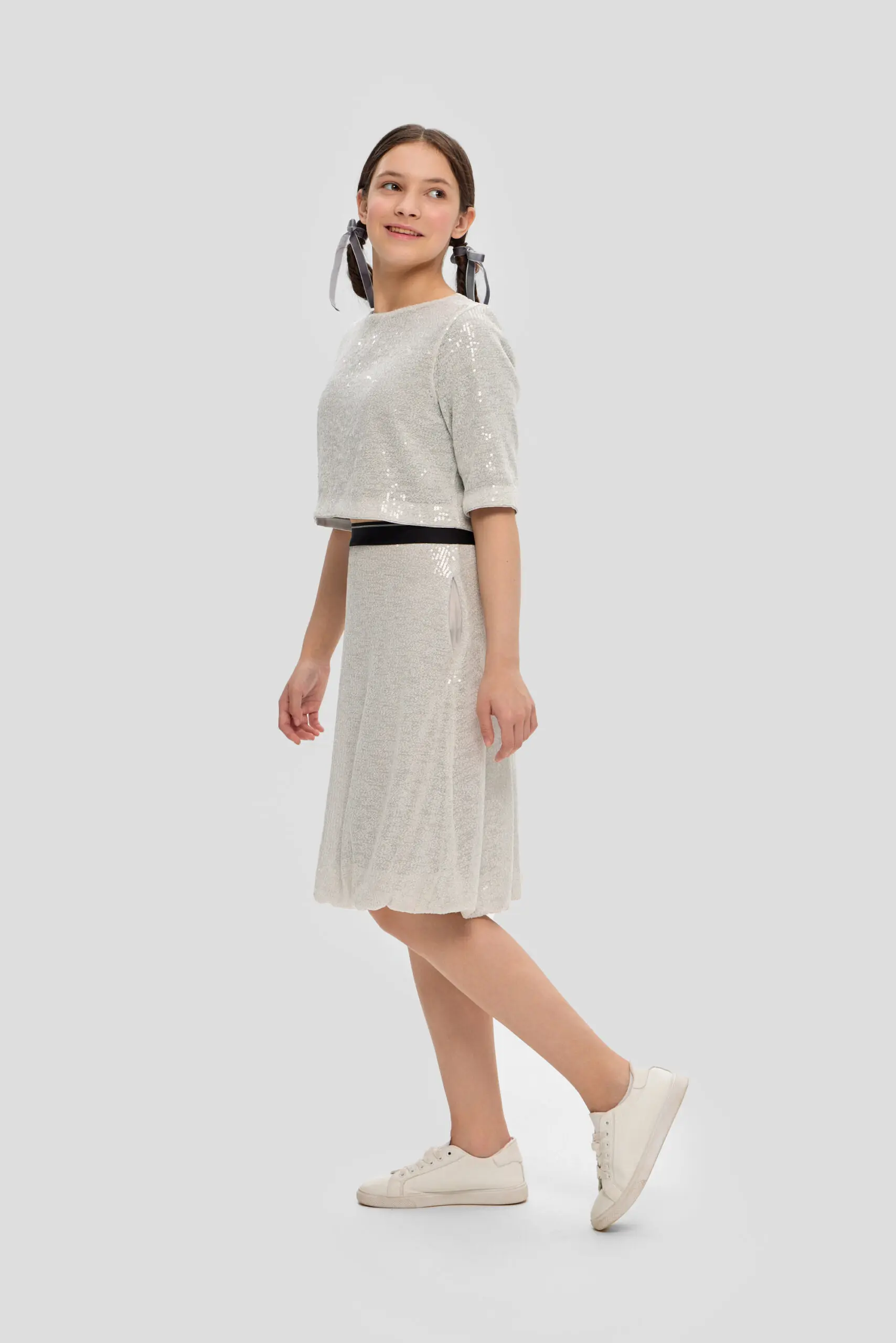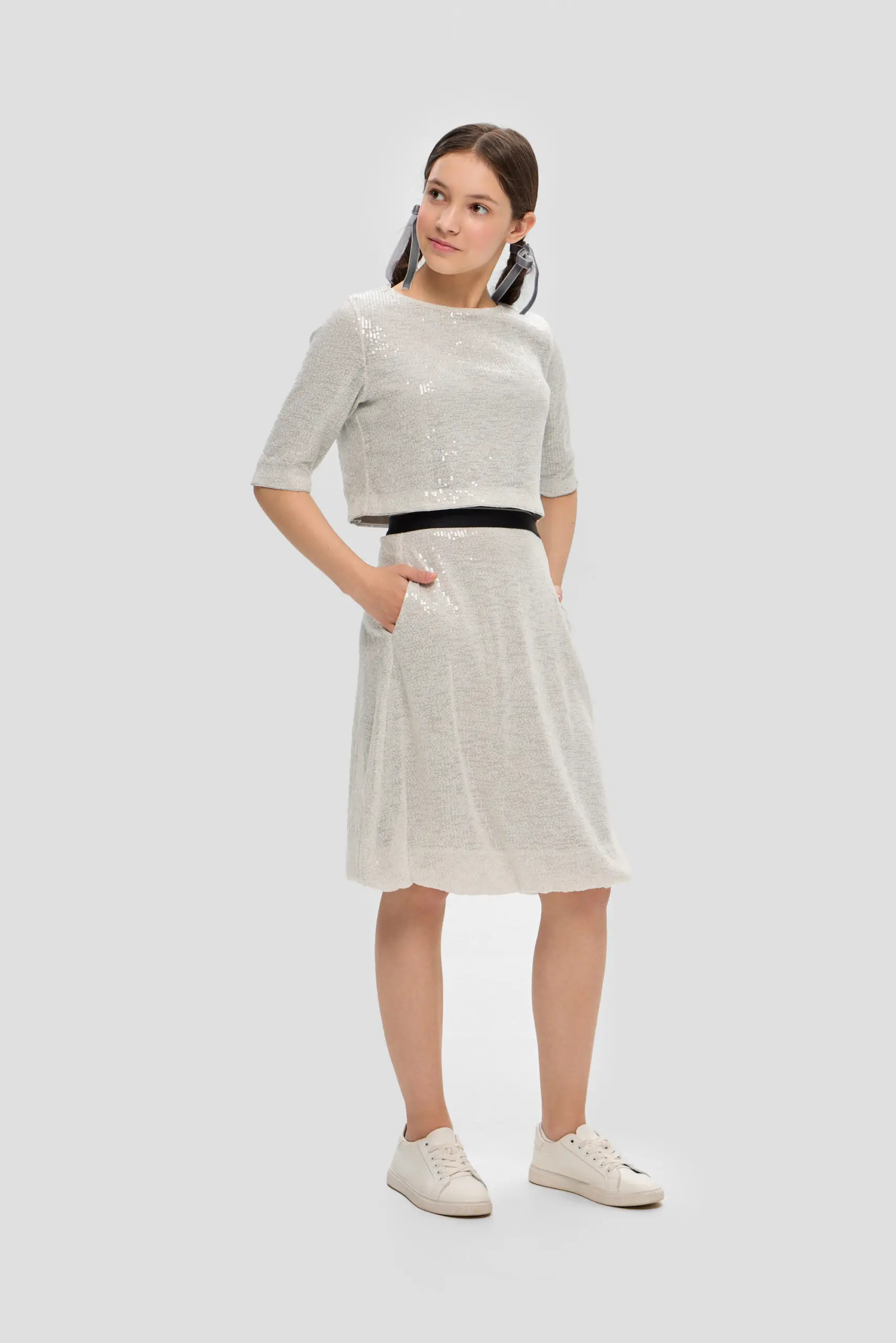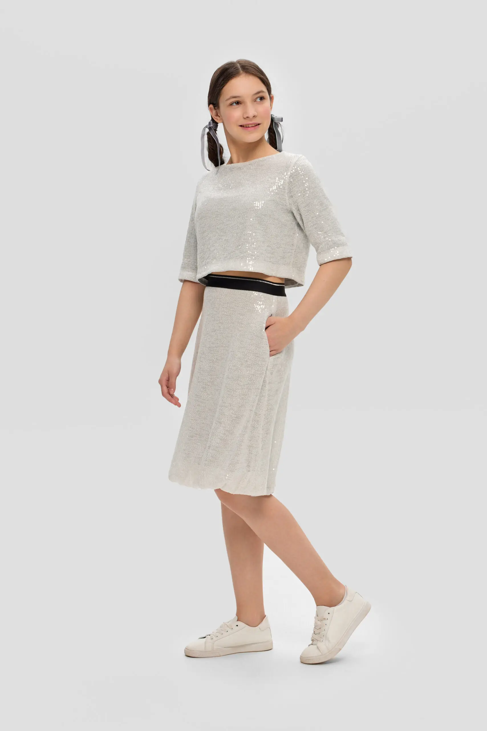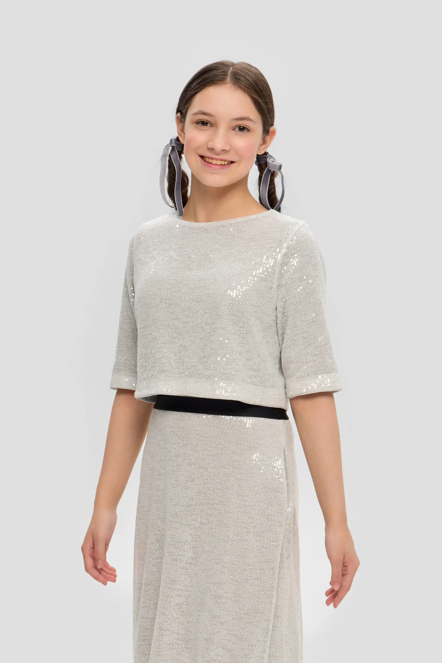 Топ из пайеток для девочки-тренд этого сезона. Модель свободного кроя с рукавами 3/4 оценит по достоинству каждая модница. Переливающийся топ отлично будет гармонировать с юбками, брюками ... и даже с джинсами. Дополните образ яркими аксессуарами в виде ободка, браслета или модной сумочкой. Этот топ не только добавит ярких красок в гардероб, но и создаст эффект неповторимого стиля.