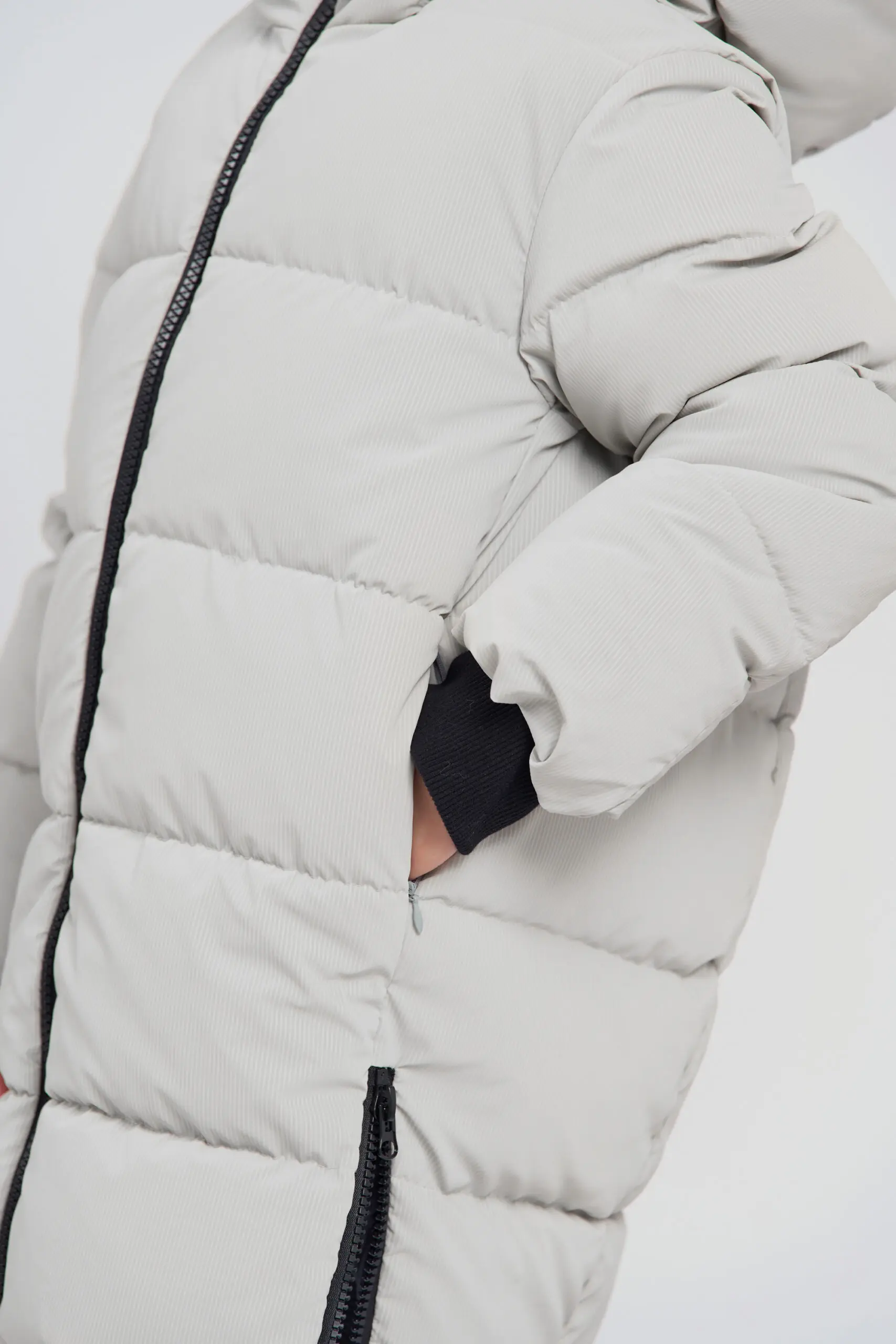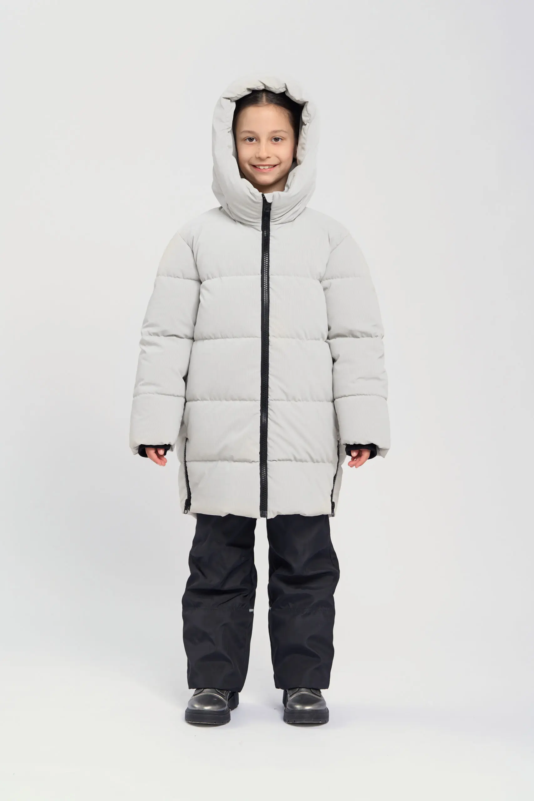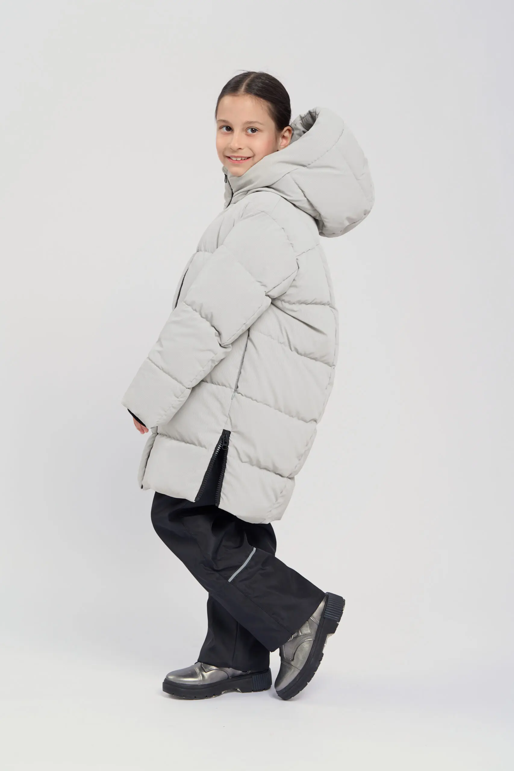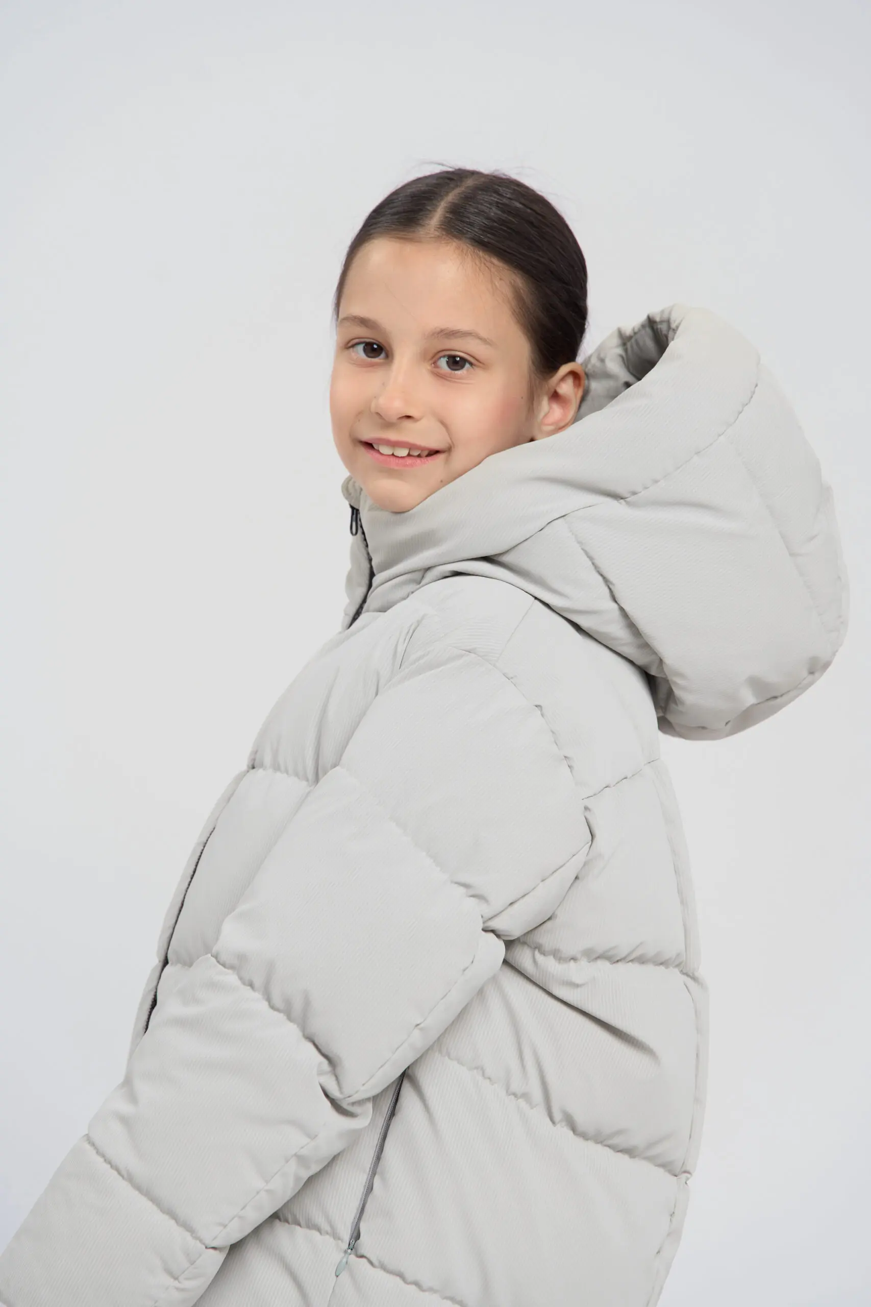 Пуховик для девочки - это идеальный выбор для холодной зимы. Стильный дизайн модели имеет прямой крой. Глубокий капюшон прекрасно защищает от продувания и дарит дополнительное тепло. ... Удобная застежка на молнию по всей длине и по бокам облегчает процесс использования и создает дополнительный комфорт. Внутренние карманы также застегиваются на молнию. Наполнитель из пуха и пера делает этот пуховик превосходным выбором для холодного времени года. Такой пуховик превосходно сочетается как с утеплёнными ботинками, так и с яркими аксессуарами, создавая гармоничный образ для активного отдыха на свежем воздухе или прогулки по городу.