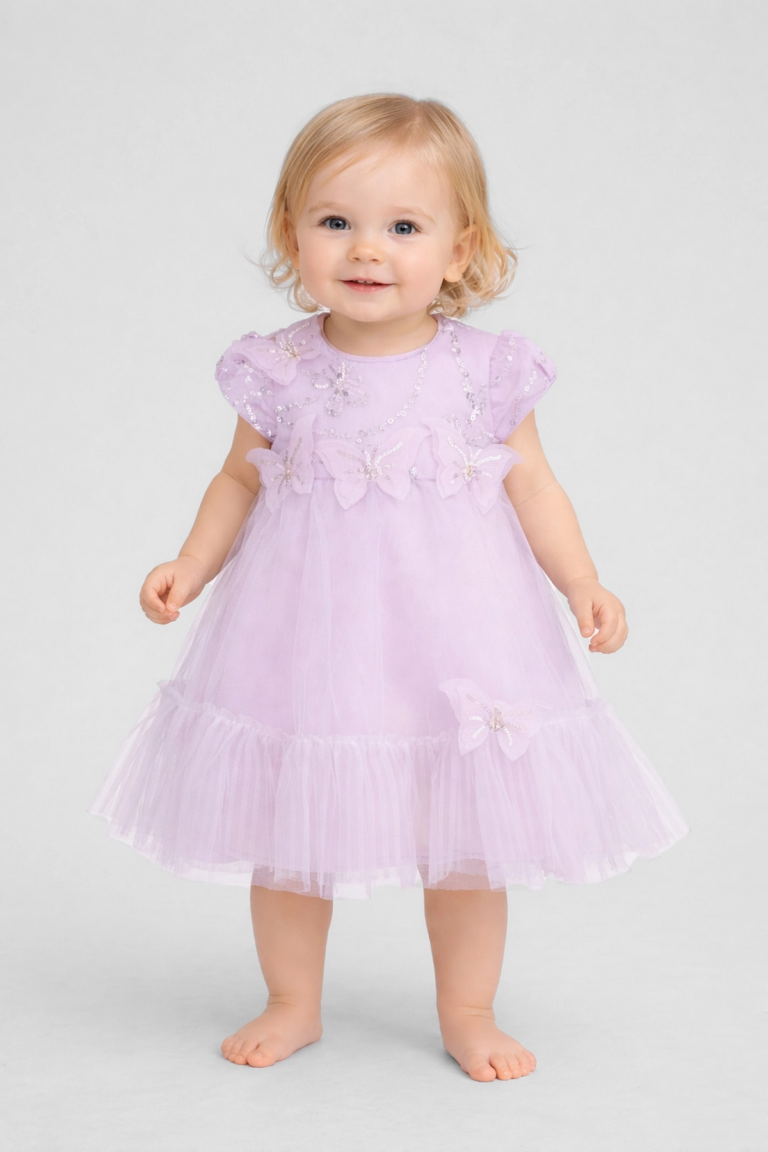 Платье из фактурной ткани с пайетками и бабочками