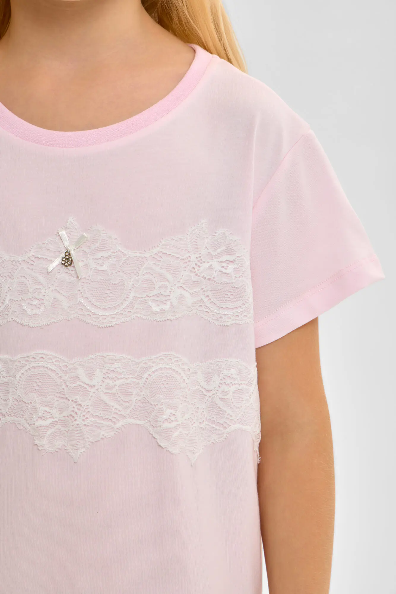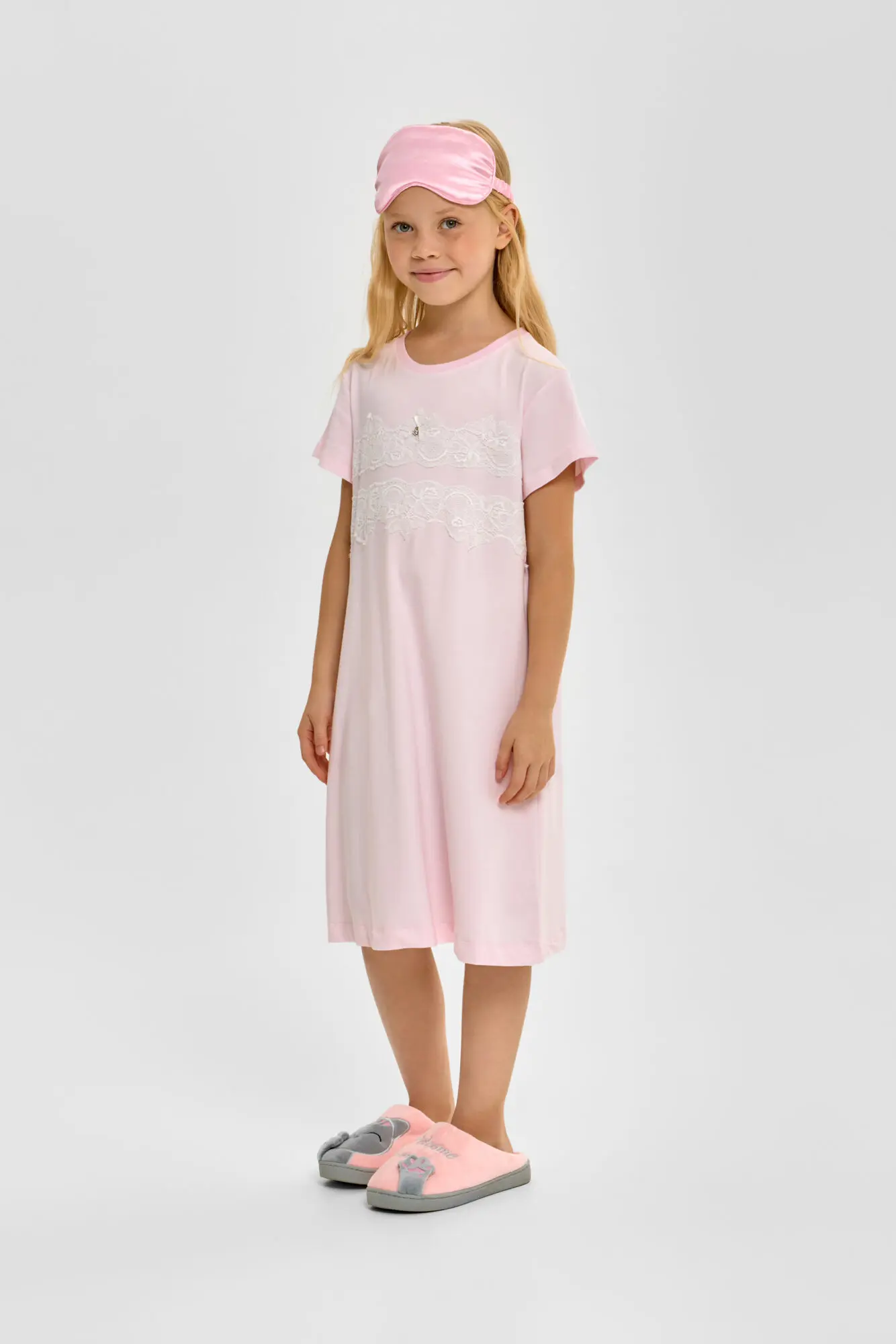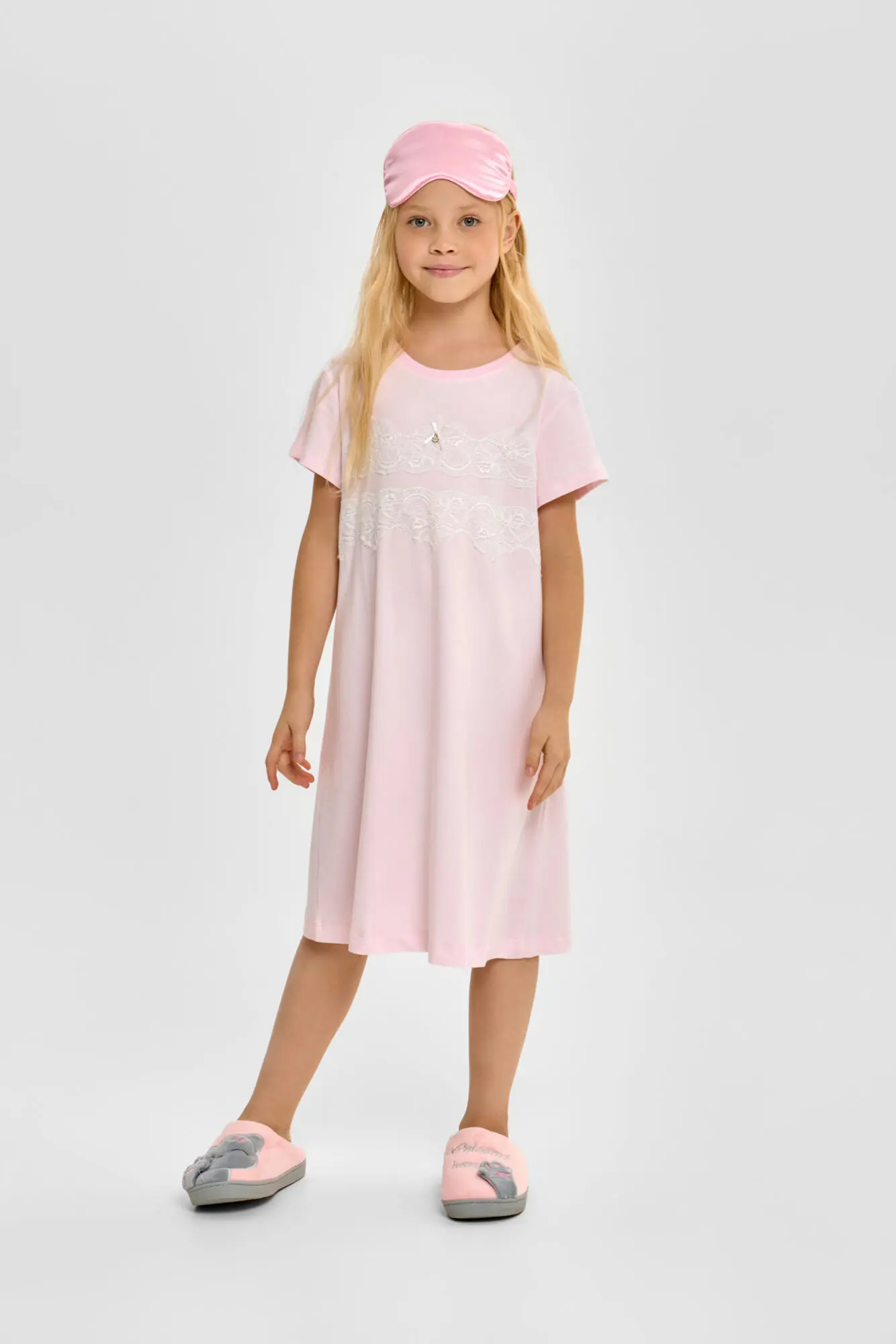 Детское платье для дома – отличный выбор не только для игр и отдыха, но и как ночная сорочка. Модель выполнена из безопасных, не вызывающих аллергию тканей. ... Благодаря своей нежной фактуре, оно превосходно подходит для сна. Свободный фасон обеспечивает полную свободу движений. Изящным украшением служит кружевная отделка.