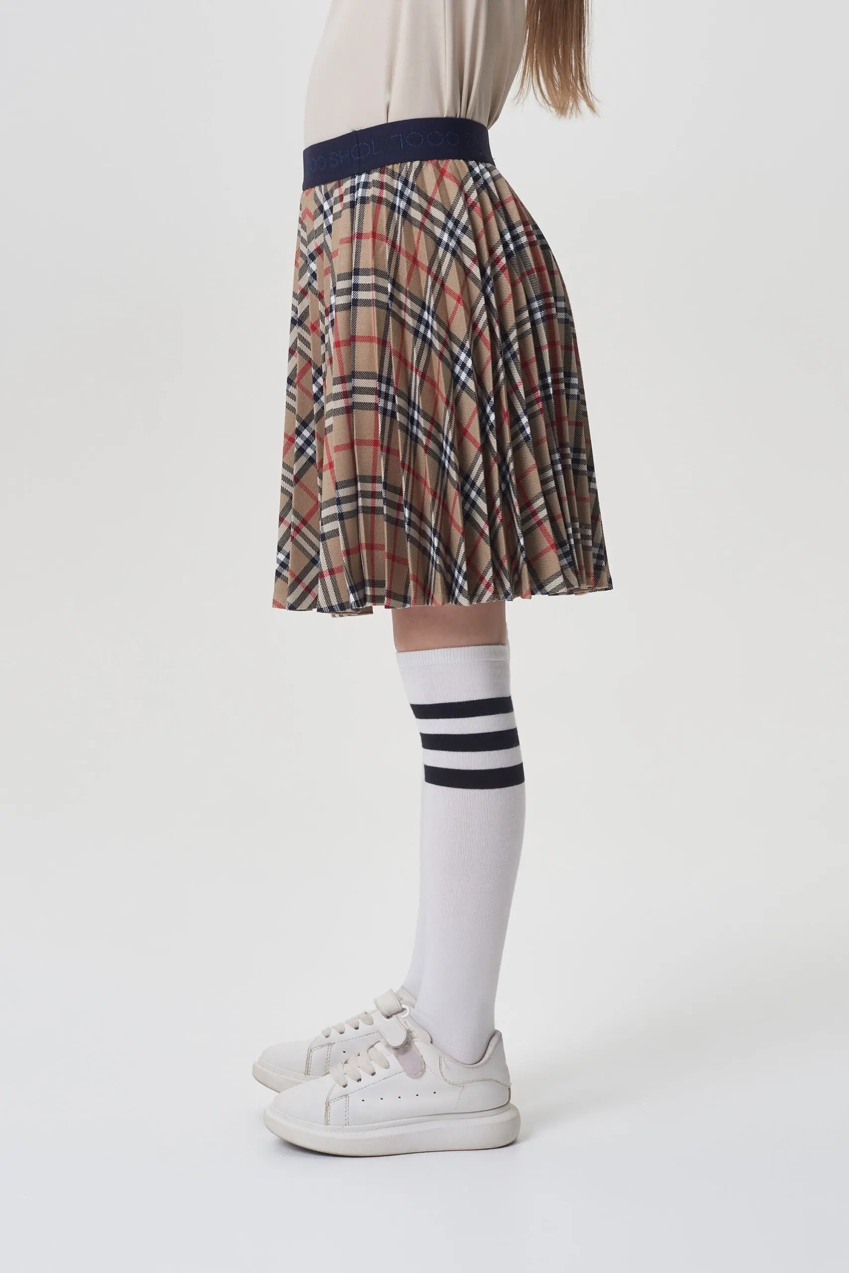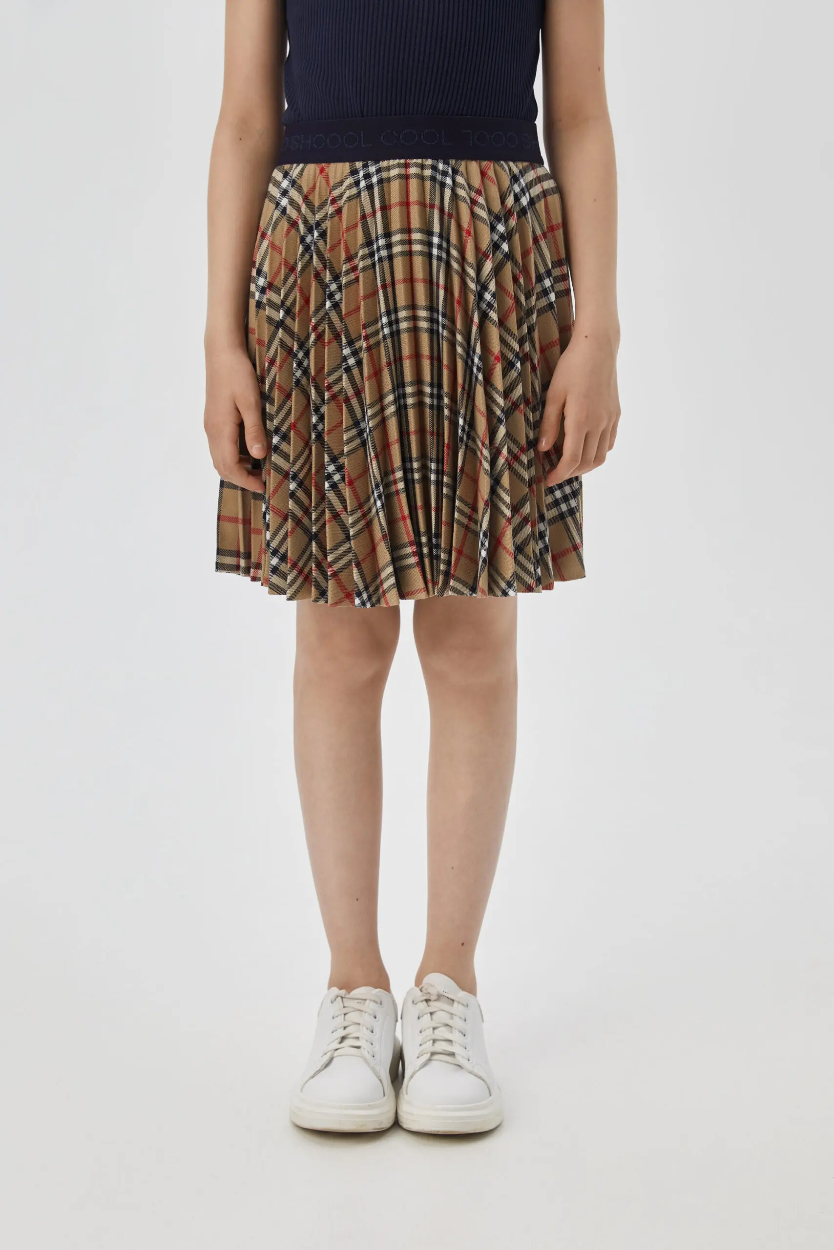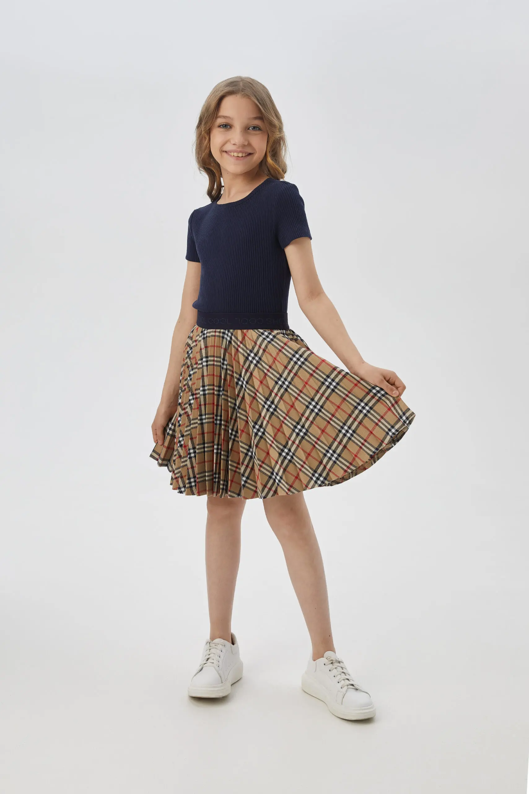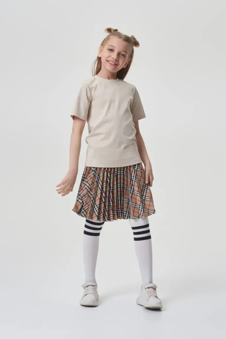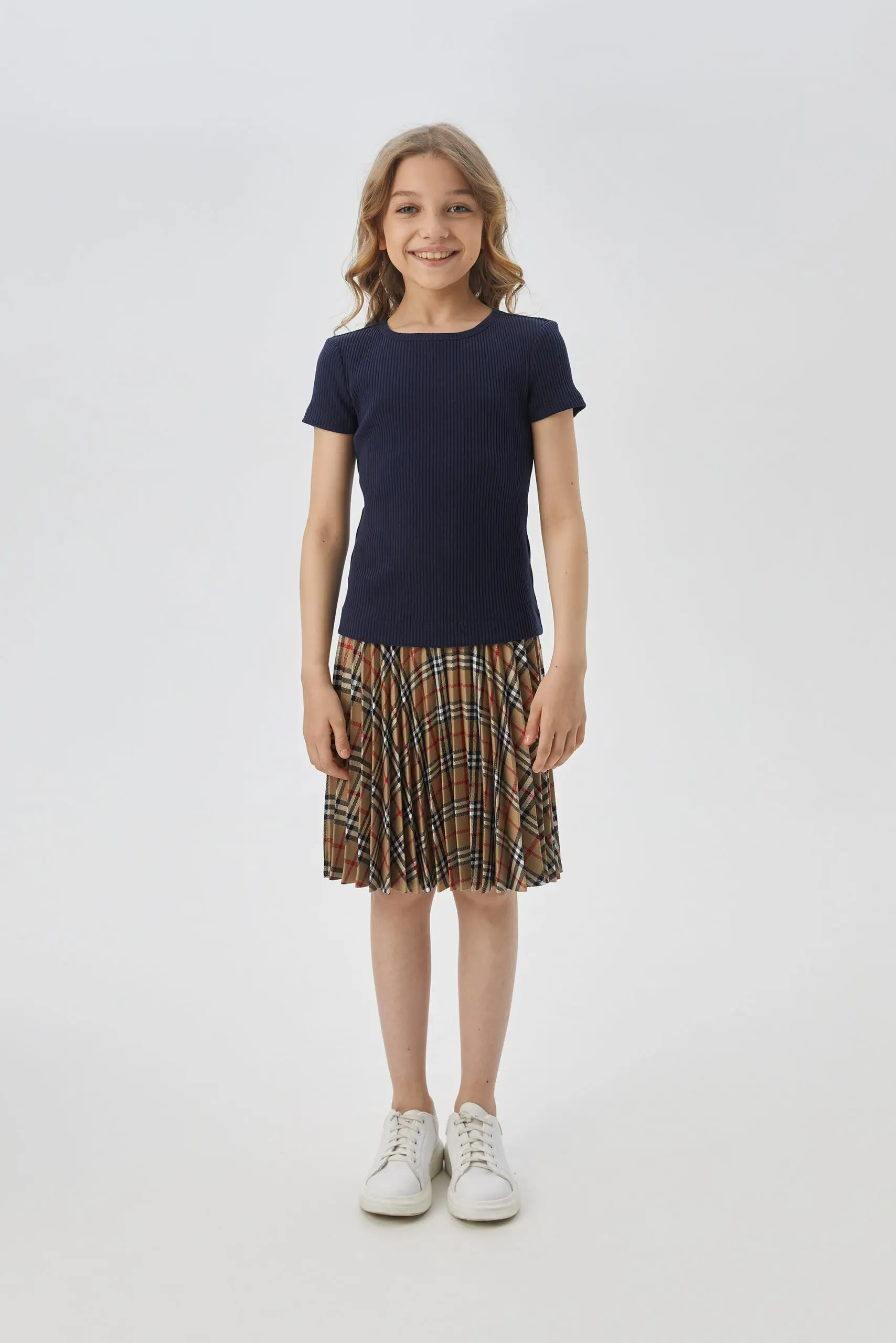 Юбка-гофре для девочки – хит этого сесона! Стильная модель в бежево-синей гамме идеально подходит для создания эффектного школьного лука. Изделие выполнено из ткани с гофрированной текстурой, ... на поясе – удобная эластичная резинка. Юбка отлично сочетается с рубашками, тонкими свитерами, футболками, а также с худи, свитшотами и кардиганами, позволяя каждый день создавать яркие и запоминающиеся образы.