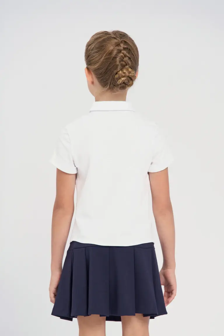 Неподвластная времени классика – это всегда актуально. Лаконичная блузка белого цвета – отличный выбор для школьного комплекта одежды. Полуприлегающий крой изделия выполнен из ткани с высоким ... процентом натурального хлопка. Модель дополнена отложным воротничком и короткими рукавами. Удобная застежка на пуговицы по всей длине изделия. Блузка прекрасно сочетается с любыми юбками и брюками. Идеально подходит для ношения под пиджаки, жакеты и кардиганы.