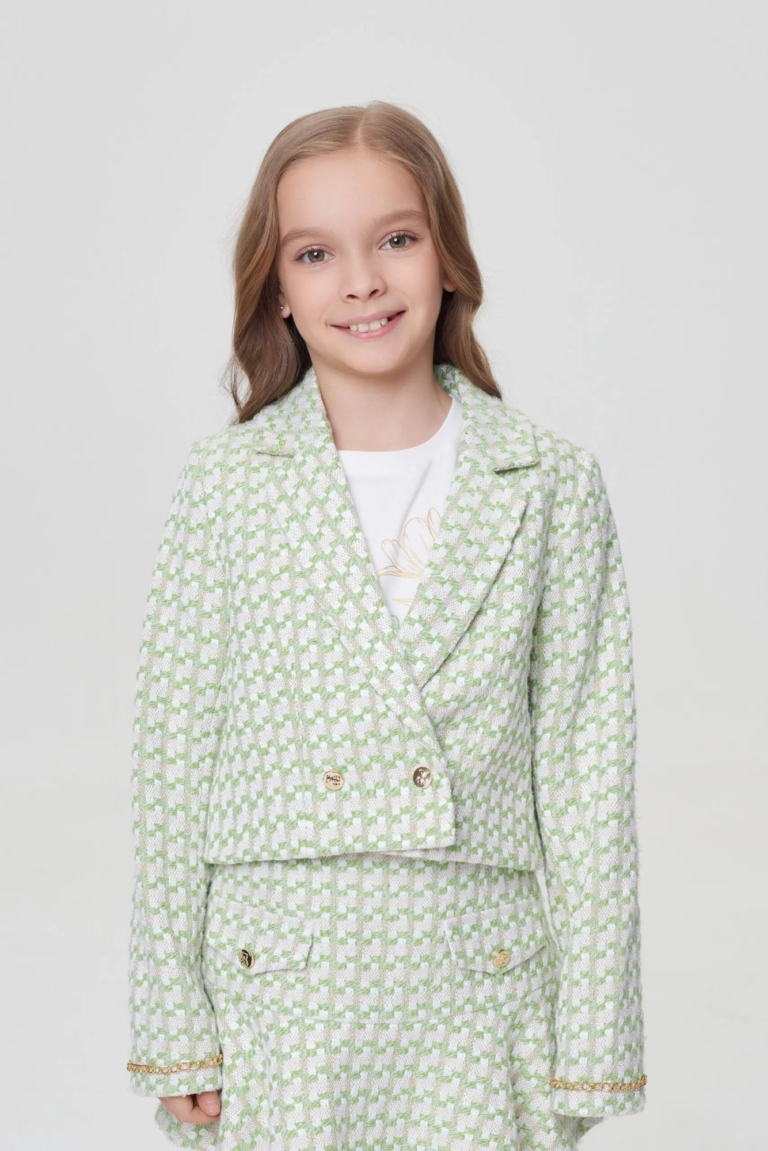 Наша стильная ... модель мятного оттенка с золотым люрексом станет настоящим украшением гардероба каждой юной модницы.