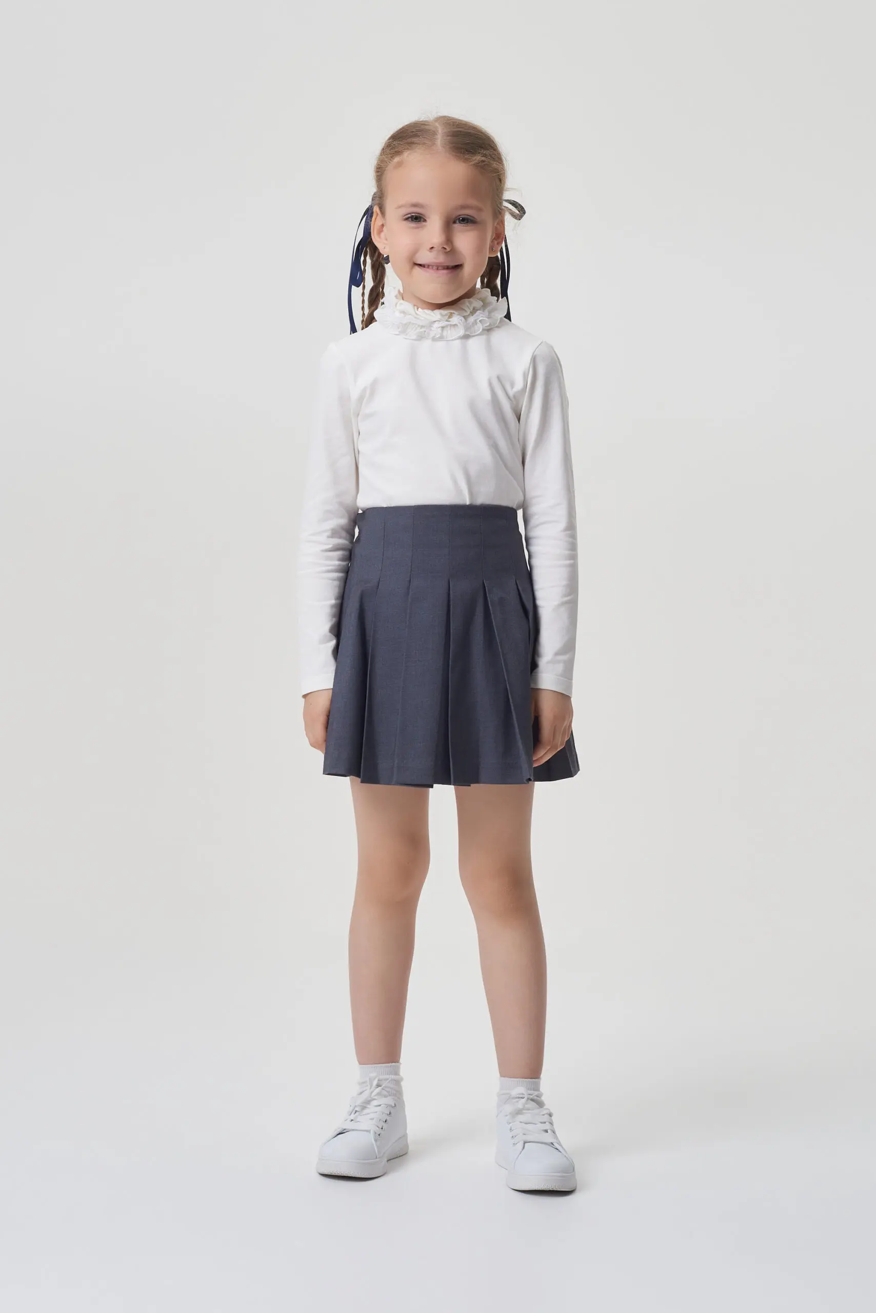 Элегантная и современная юбка в складку – прекрасный выбор для школьного гардероба юной девушки. Регулируемый пояс с эластичной резинкой и молнией обеспечивает легкость и удобство в ... носке. Вискозная подкладка деликатно оберегает ткань, эффективно отводит влагу и сохраняет изначальный вид изделия на протяжении всего срока службы. Юбка легко сочетается с разнообразными элементами школьной формы: блузками, тонкими джемперами, рубашками и жакетами. Она без труда адаптируется к различным модным тенденциям и позволяет формировать множество разнообразных образов.