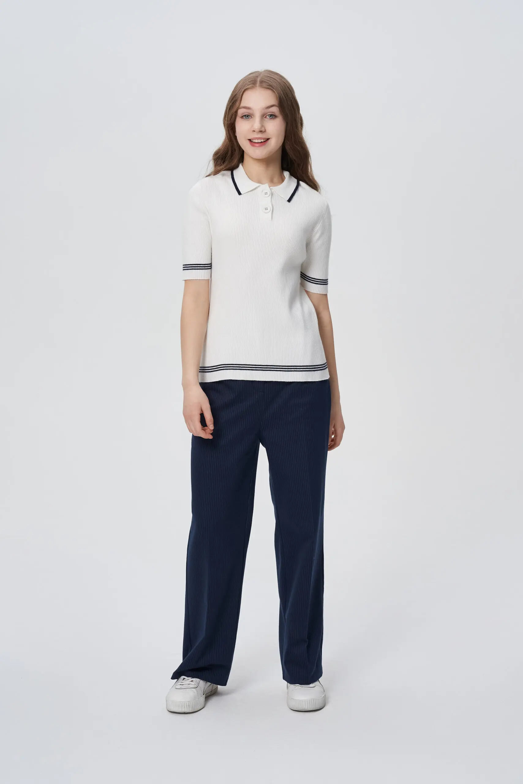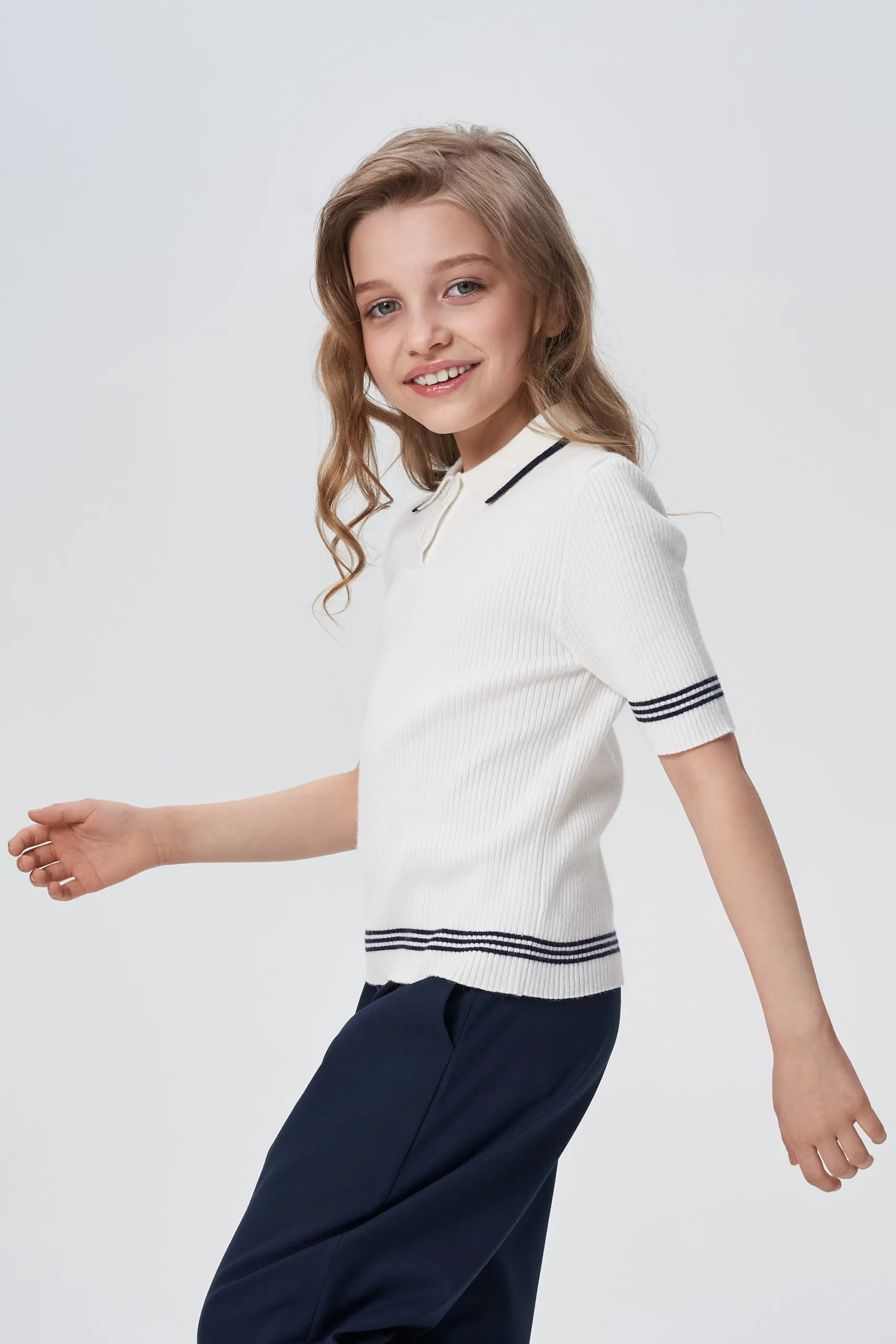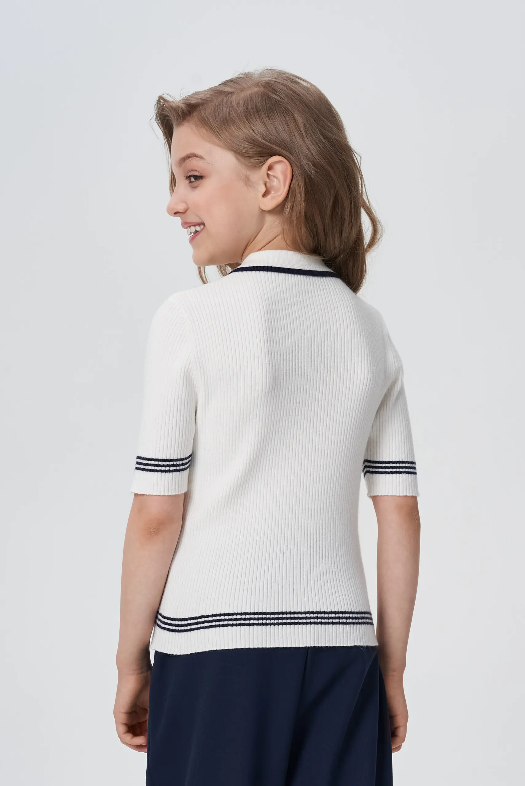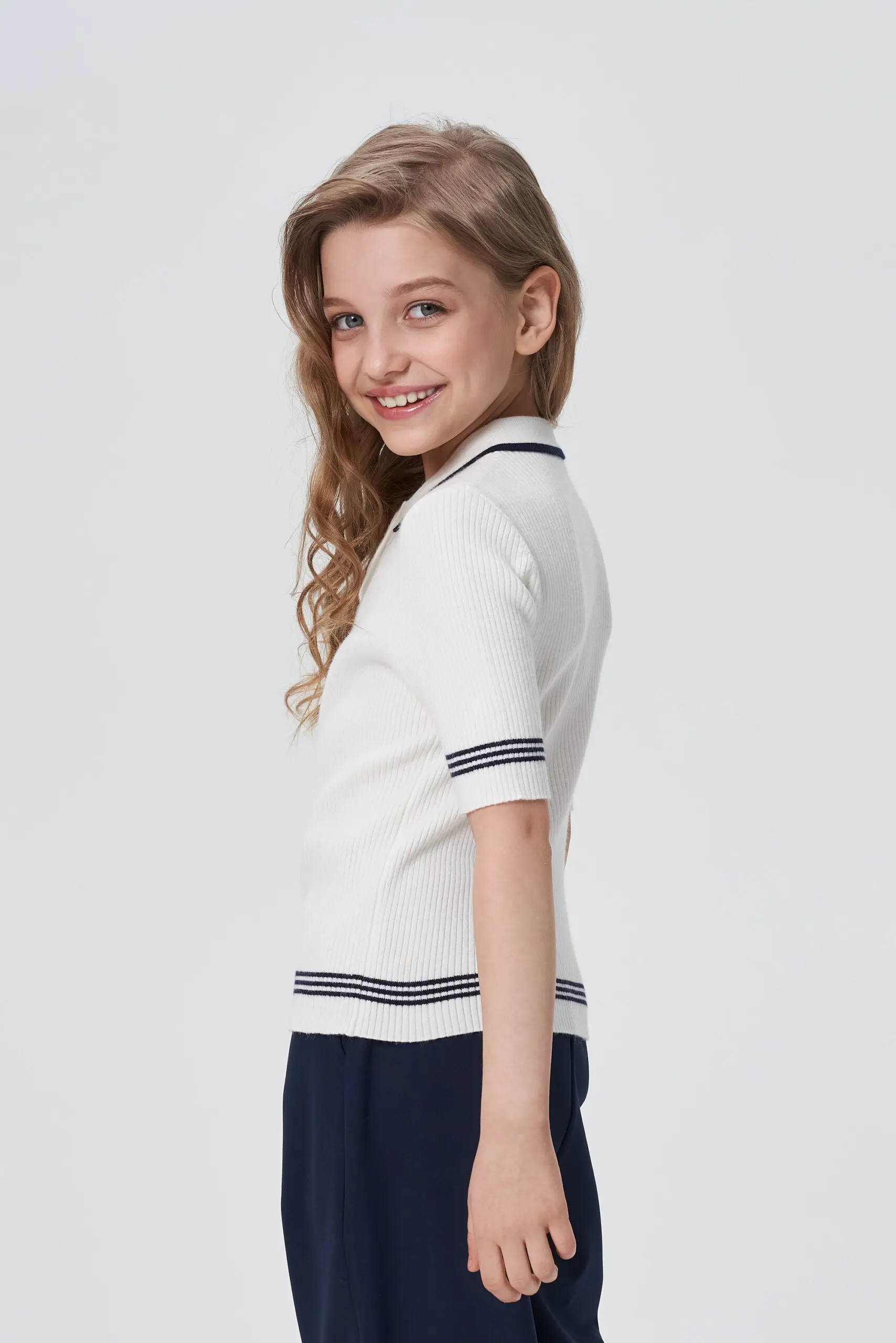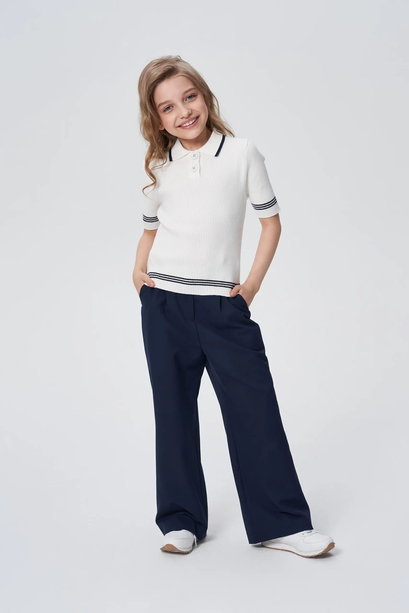Вязаный джемпер-поло для девочки оживит официальный лук и станет незаменимой вещью в повседневном гардеробе школьницы.