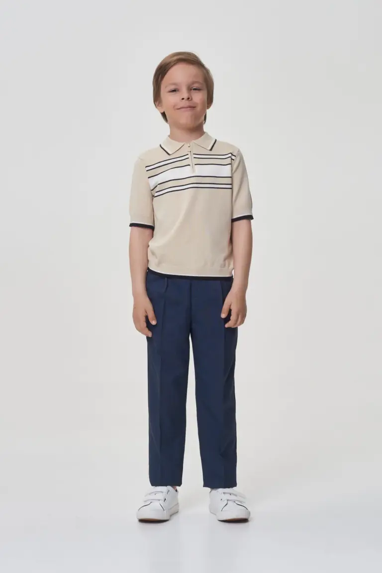 Тёмно-синие брюки станут отличным дополнением к школьному гардеробу мальчика. Классическая модель прямого силуэта со стрелками выполнена из качественной костюмной ткани. Брюки имеет практичные боковые карманы, застёгивается ... на молнию и пуговицу. Эластичный пояс и шлевки для ремня обеспечивают идеальную посадку на любой тип фигуры. Брюки для мальчика легко сочетаются с разнообразным верхом: рубашками, поло, водолазками, а также пиджаками и жилетами, что позволяет создавать множество школьных образов.
