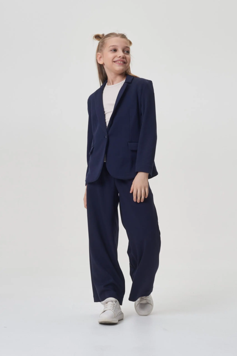 Трикотажные брюки-палаццо – актуальный тренд, идеальный для создания стильного школьного наряда. Модный элемент одежды придает элегантность и изысканность образу. Комбинация с просторным пиджаком и нарядной блузой ... позволит составить запоминающийся и трендовый комплект. Модель дополнена регулируемой резинкой на поясе и шлевками для ремня.