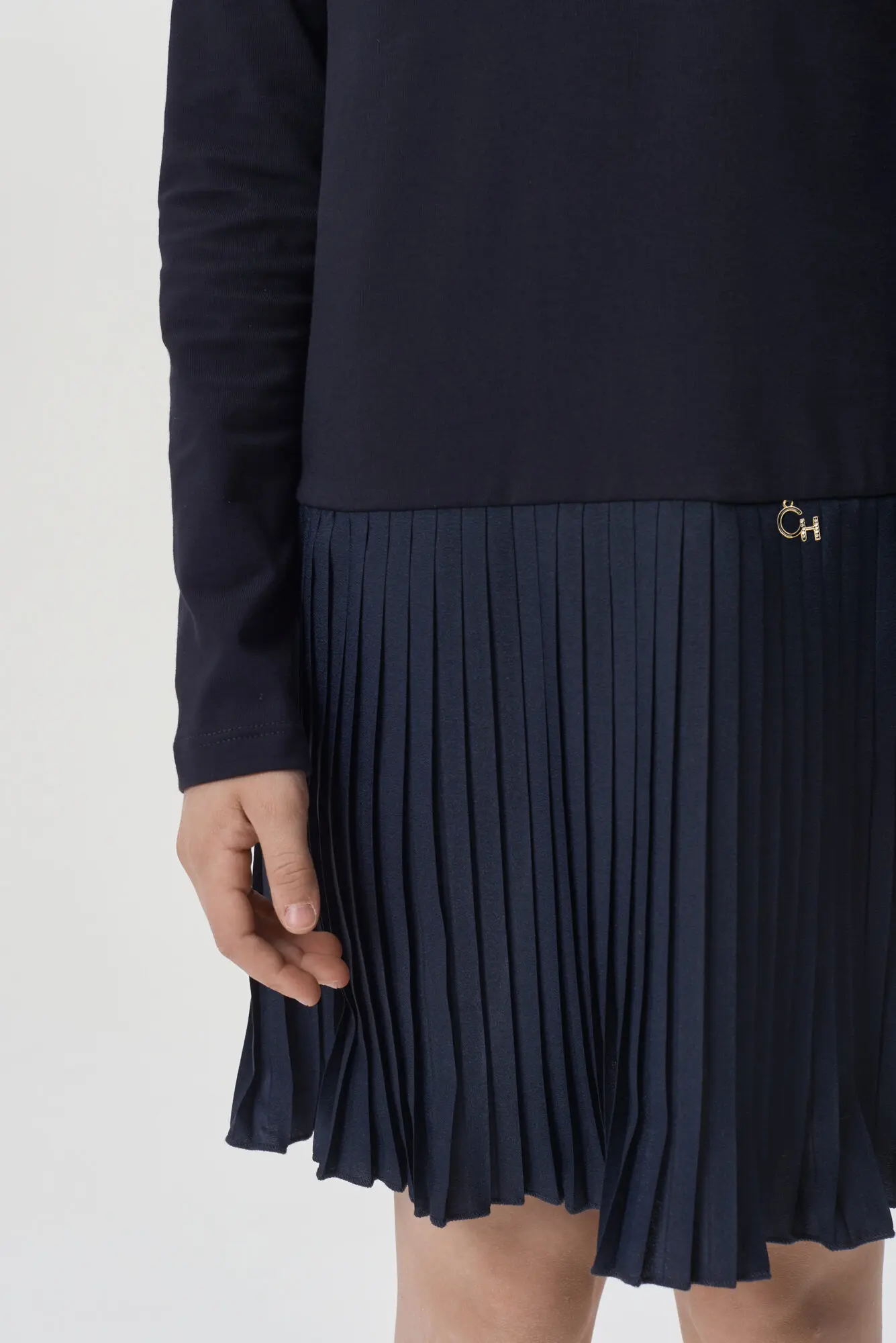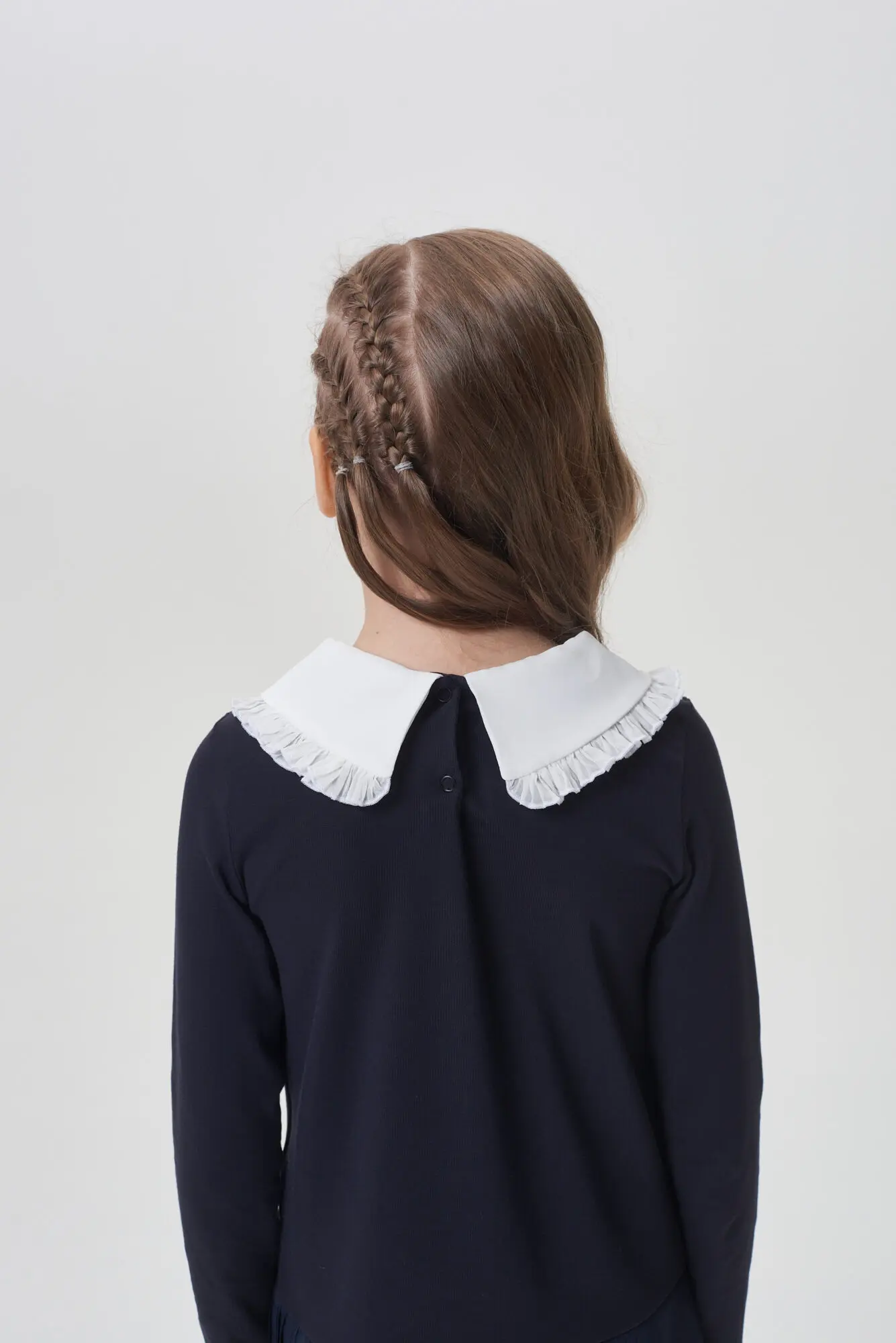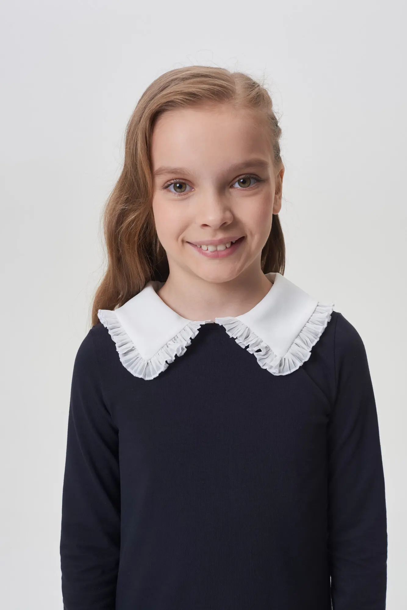 Платье синего цвета с плиссированной юбкой и контрастным воротничком станет прекрасным выбором для юной школьницы!