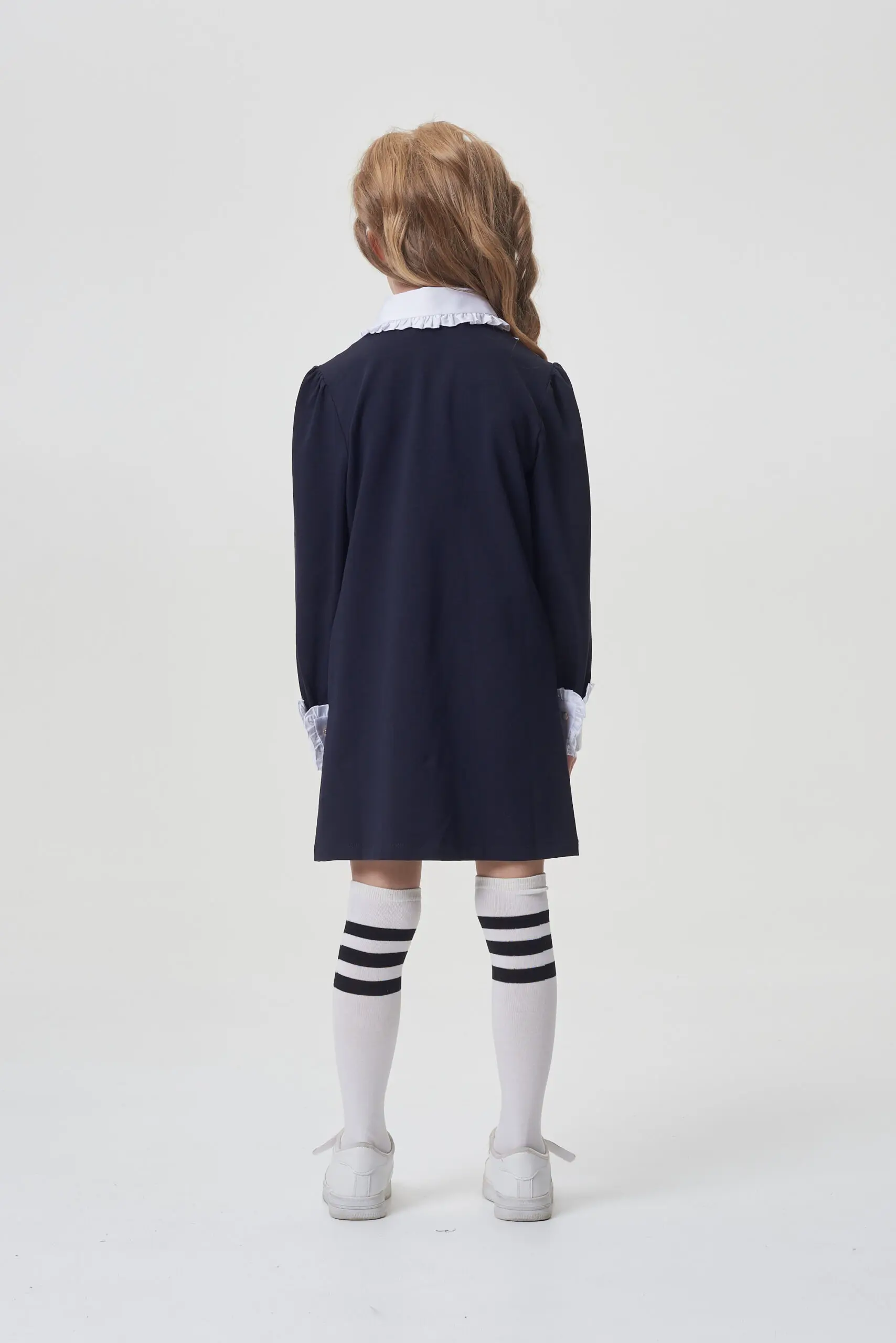 Платье будет элегантно смотреться как с белыми, так и с черными колготками или гетрами, создавая яркий и запоминающийся образ.