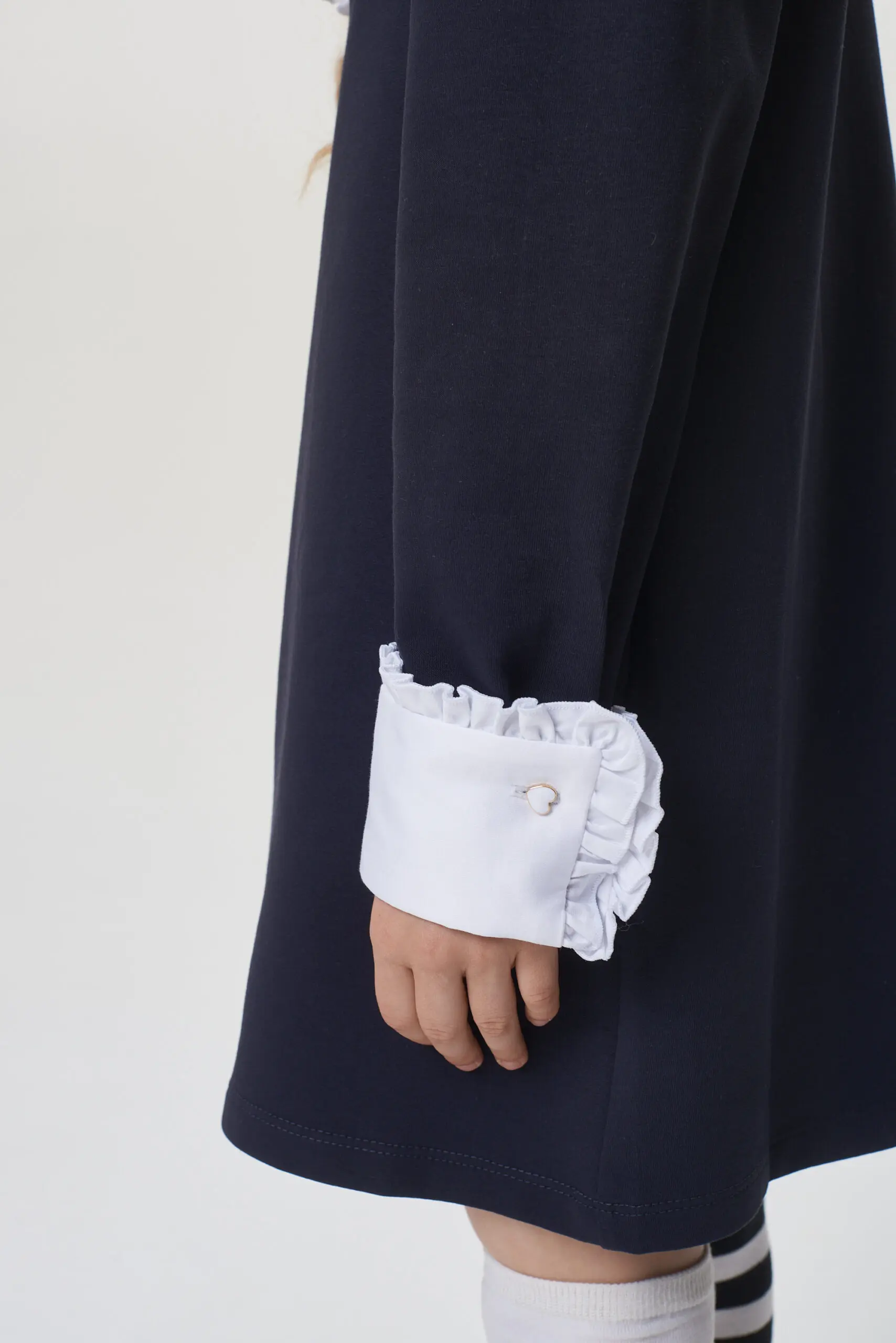 Платье синего цвета с белыми контрастными манжетами ... и воротничком придаст школьному образу аккуратность и стиль.