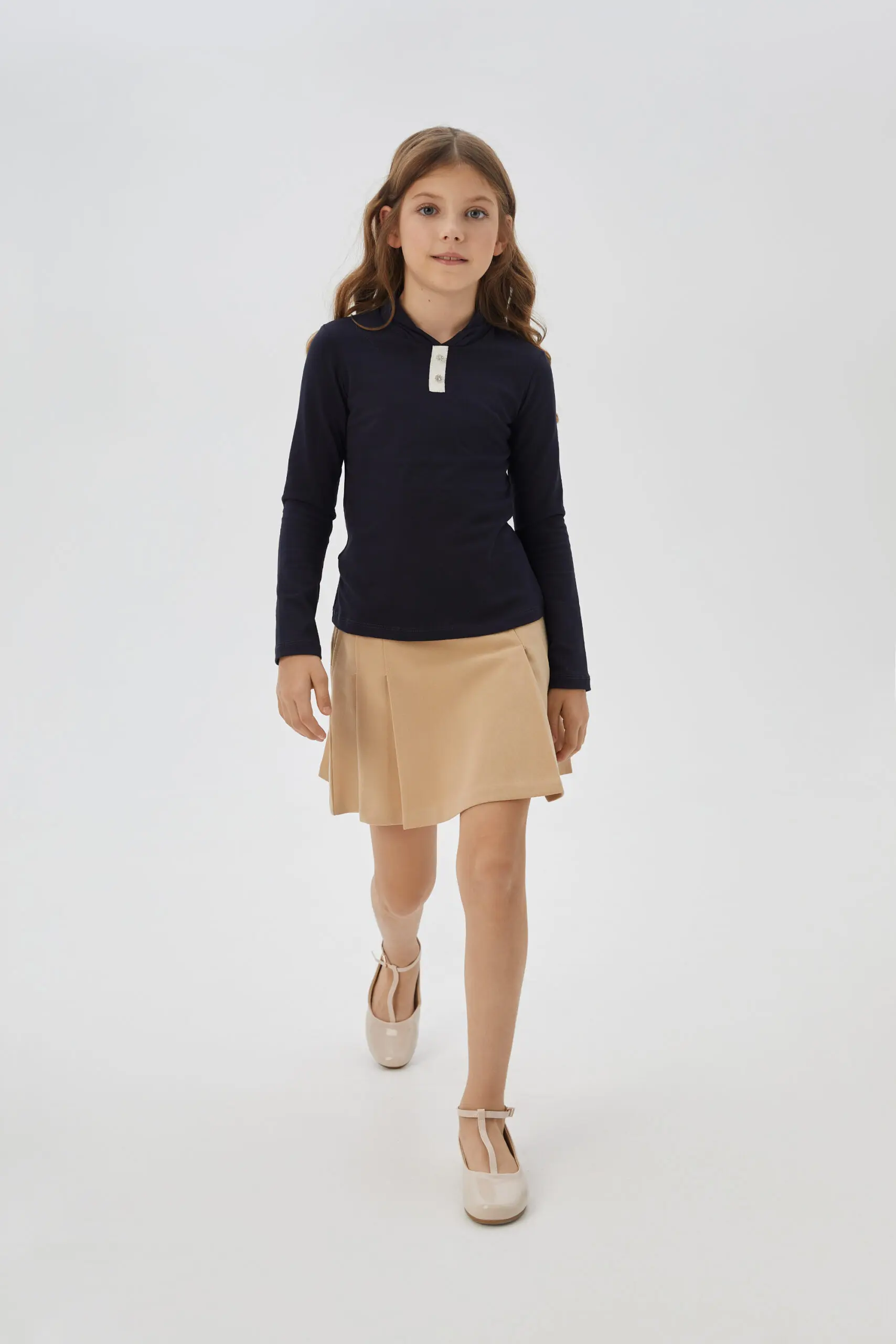 Водолазка синего цвета для девочки – отличный выбор для школьных будней. Главное – это лаконичность и практичность, а комфорт достигается за счет смешанного состава ткани. Благодаря ... тщательно разработанному дизайну, водолазка не ограничивает движения, что является ключевым фактором для энергичных детей. Она совершенно не стесняет и дарит ощущение комфорта в течение всего дня в школе, будь то уроки, подвижные игры на переменах или участие во внеурочных занятиях. Этот незаменимый предмет одежды без труда комбинируется с различными элементами школьного костюма, будь то юбка трапеция, строгие брюки или стильный сарафан.