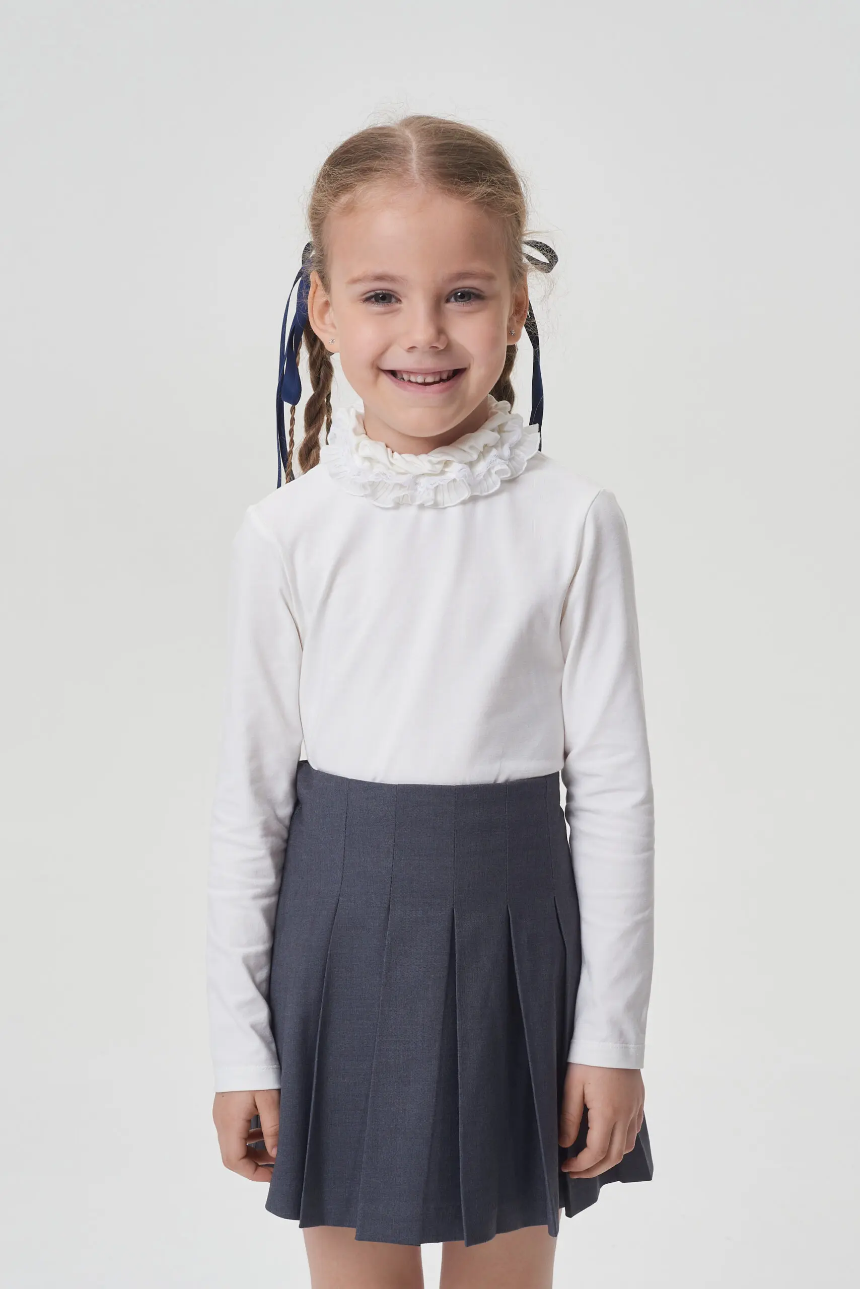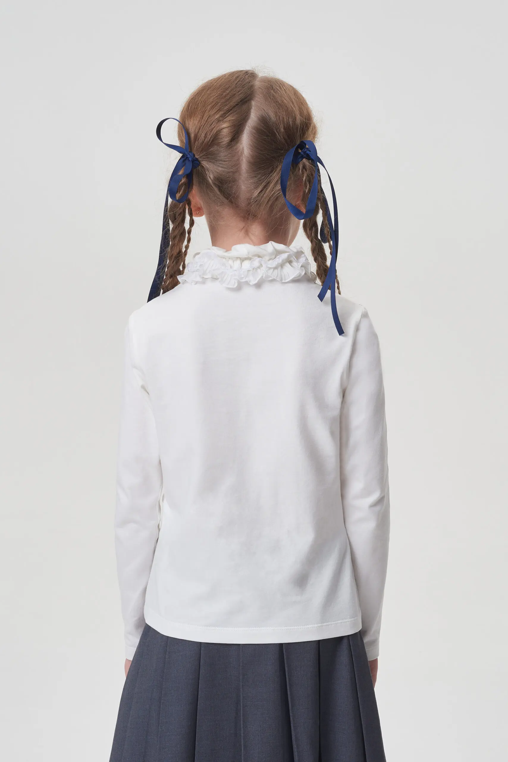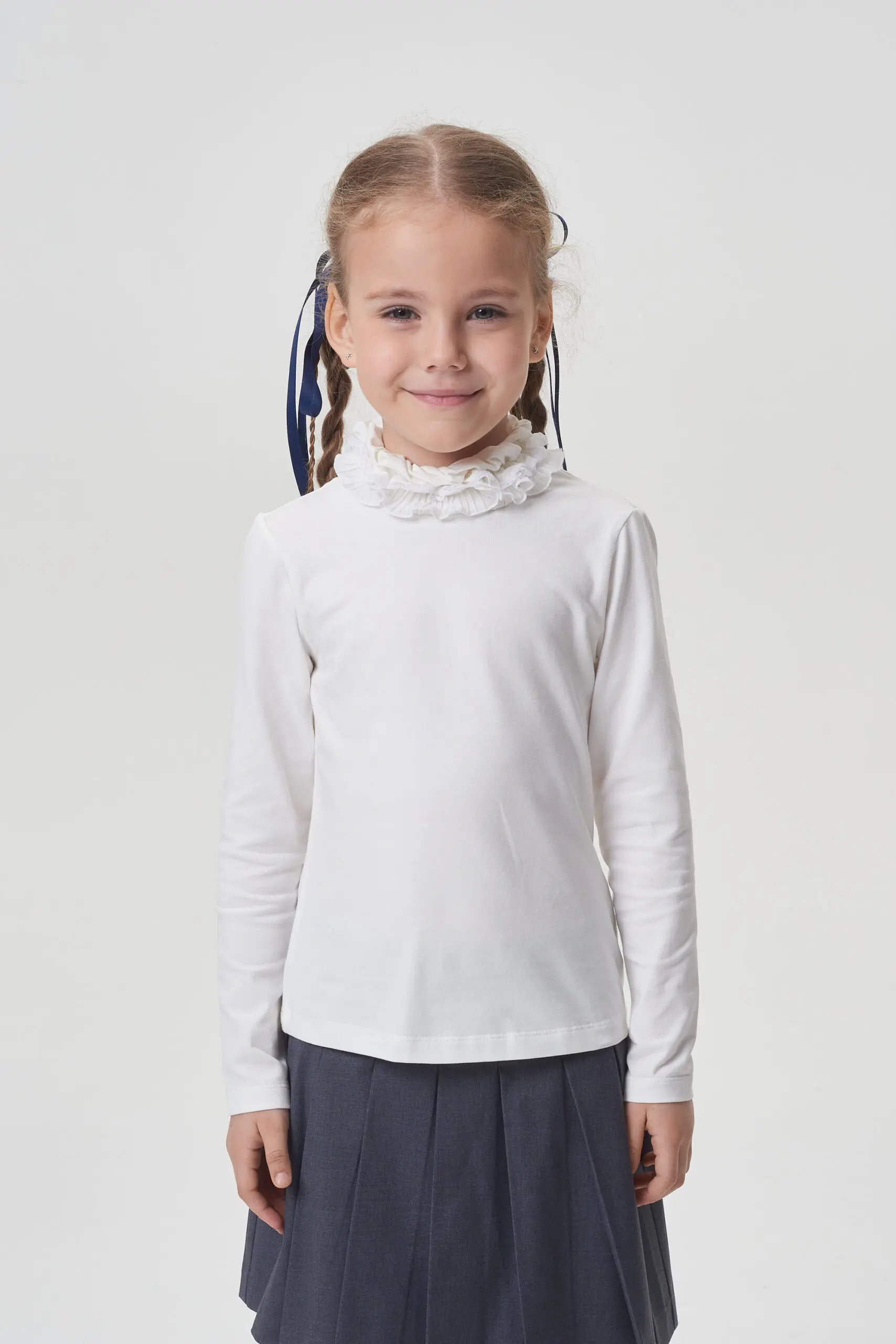 Нарядная водолазка для девочки - это не просто функциональный элемент школьной формы, но и стильный, удобный и практичный предмет гардероба, способный удовлетворить потребности как ученика, так ... и его родителей. Простой прямой крой трикотажной водолазки дополнен изящным кружевным воротником делая ее отличным вариантом на любое школьное мероприятие. Эта модель идеально комбинируется с сарафанами, юбками, брюками и превосходно смотрится как с классическими жакетами и пиджаками, так и с кардиганами.