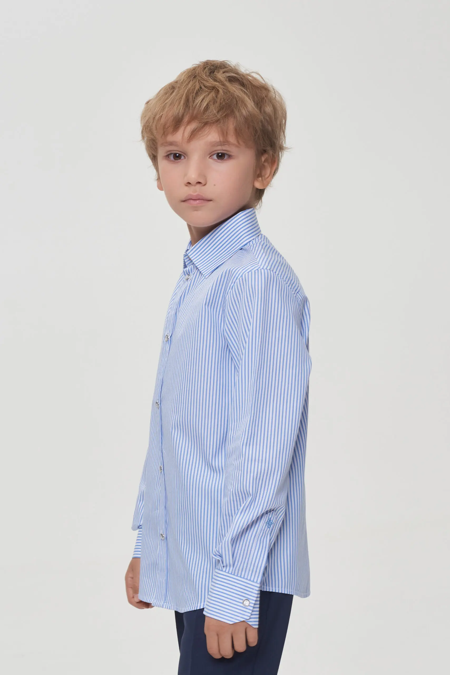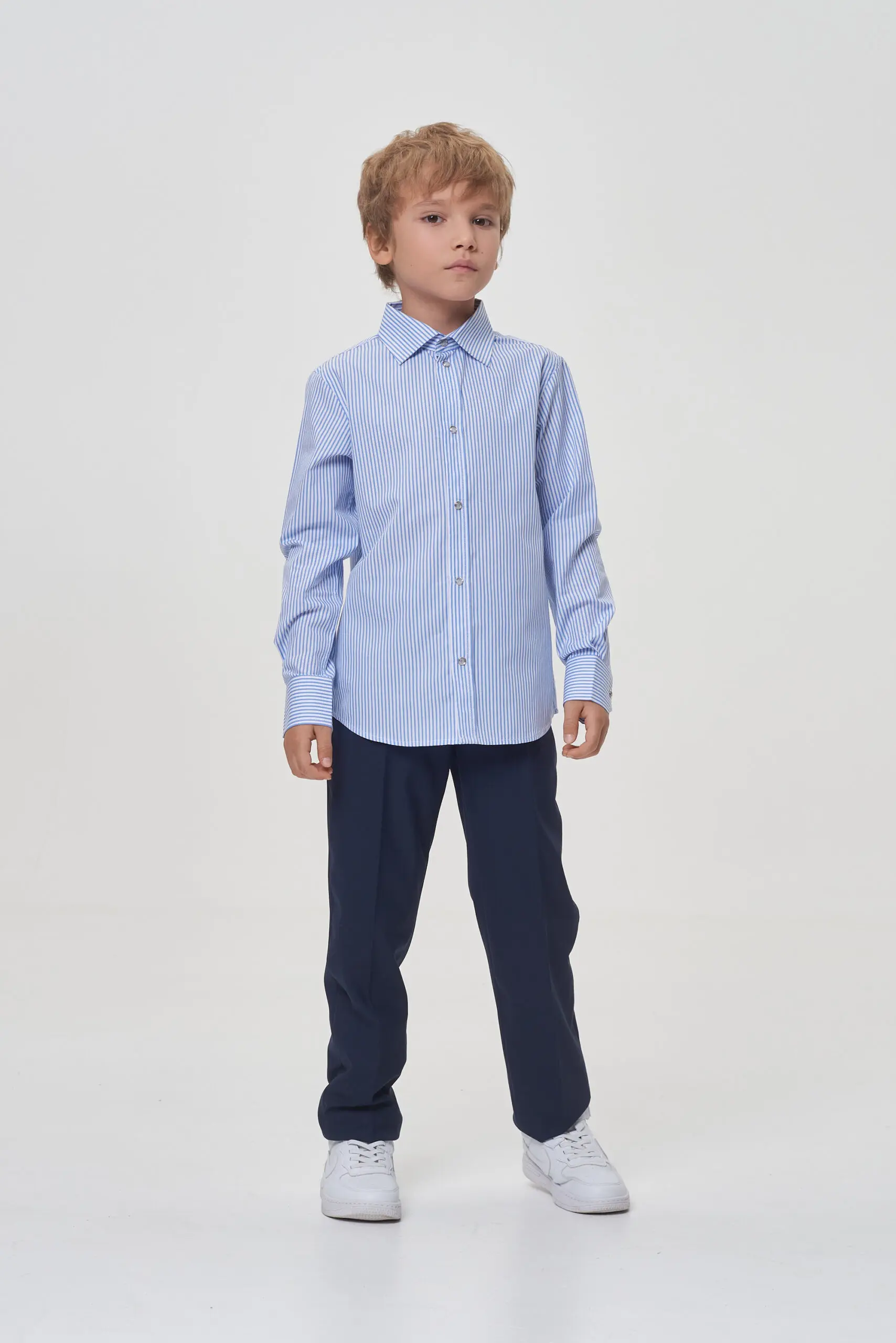 Стильная рубашка для мальчика – обязательная вещь в школьном гардеробе любого ученика. Эта модель создана из высококачественных, воздухопроницаемых тканей. Ярко выраженная полоска добавляет рубашке изысканности и ... актуальности. Этот ненавязчивый рисунок делает возможным комбинировать рубашку с разнообразными предметами школьной формы. Классический, аккуратно выполненный воротник подчеркивает официальный и сдержанный характер внешнего вида. Комфортная застежка на кнопки