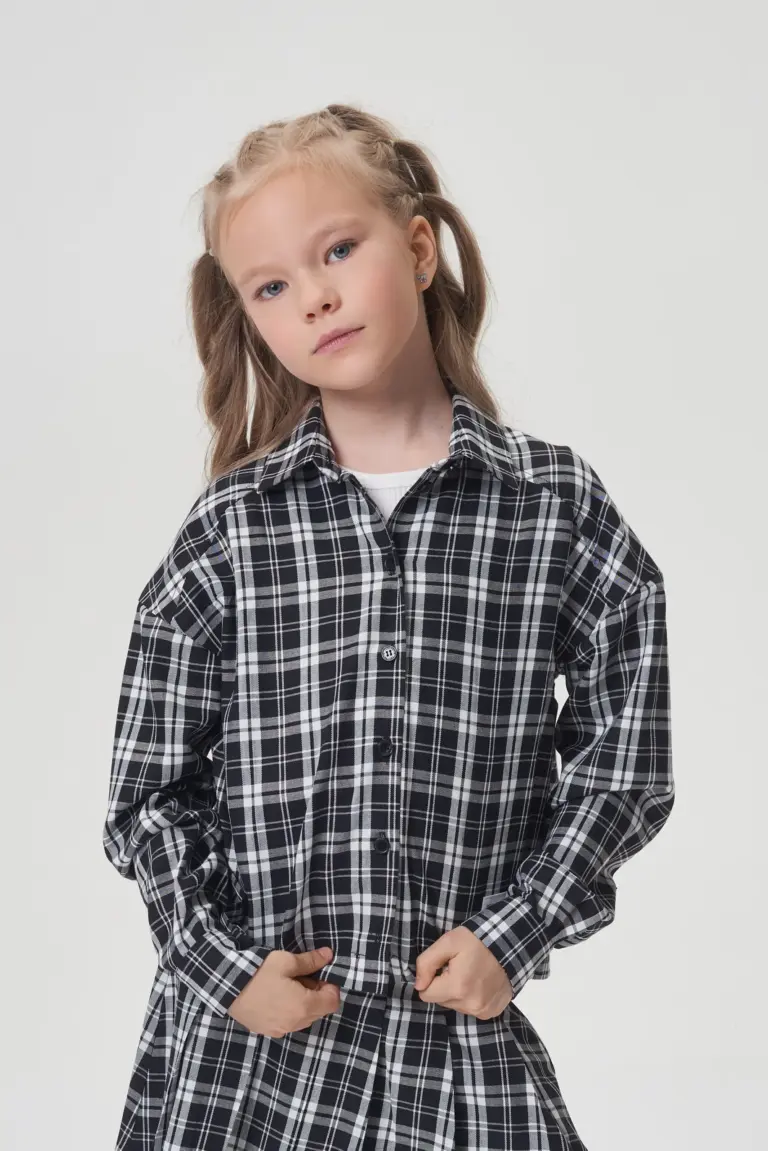 Каждая юная модница непременно оценит эту трендовую блузу. Благодаря свободному крою оверсайз, в ней будет удобно на протяжении всего дня. Длинные рукава акцентированы слегка приспущенной линией ... плеча. Застежка выполнена на пуговицах по всей длине изделия. Оригинальная контрастная нашивка добавляет образу выразительности. Блузка идеально комбинируется с юбками и широкими брюками, а также может быть надета поверх водолазки или базовой белой футболки. Эта модель гармонично дополнит как школьный, так и повседневный гардероб девочки.