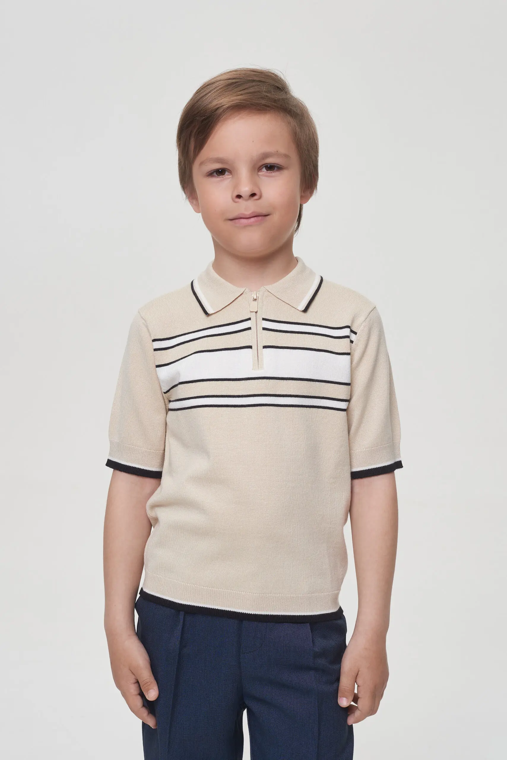 Поло с коротким рукавом для мальчика станет отличным дополнением к школьному гардеробу. Модель прямого кроя с традиционным воротником поло и застежкой на молнию. Молния добавляет поло ... современный и стильный акцент, выделяя его среди классических моделей.