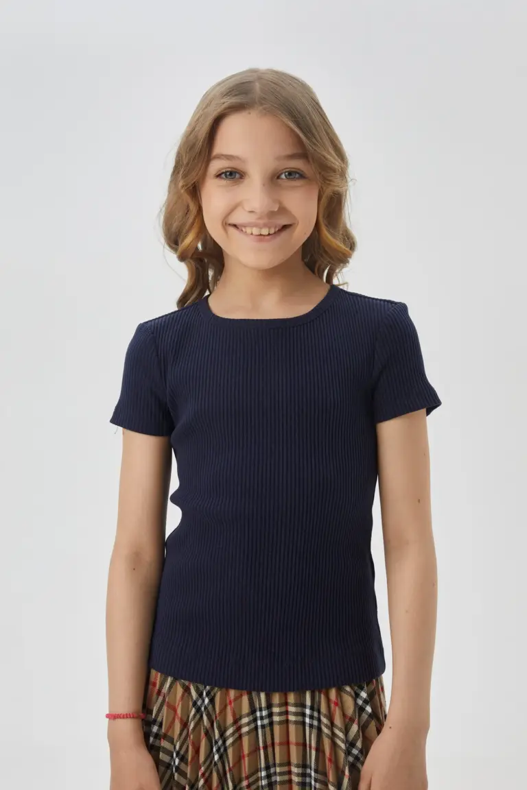 Футболки стали неотъемлемой частью школьного гардероба современной ученицы, вытеснив привычные блузы и водолазки. Трикотажная футболка облегает фигуру, имеет короткие рукава, а круглый вырез горловины обработан бейкой. ... Футболка насыщенного синего оттенка станет прекрасным дополнением к базовому школьному гардеробу. Она легко комбинируется с юбками и брюками, хорошо смотрится с пиджаками и бомберами. Мягкая ткань с высоким содержанием хлопка обеспечивает комфорт, хорошо тянется, не стесняя движений, что делает эту модель идеальной для ношения в течение всего учебного дня.