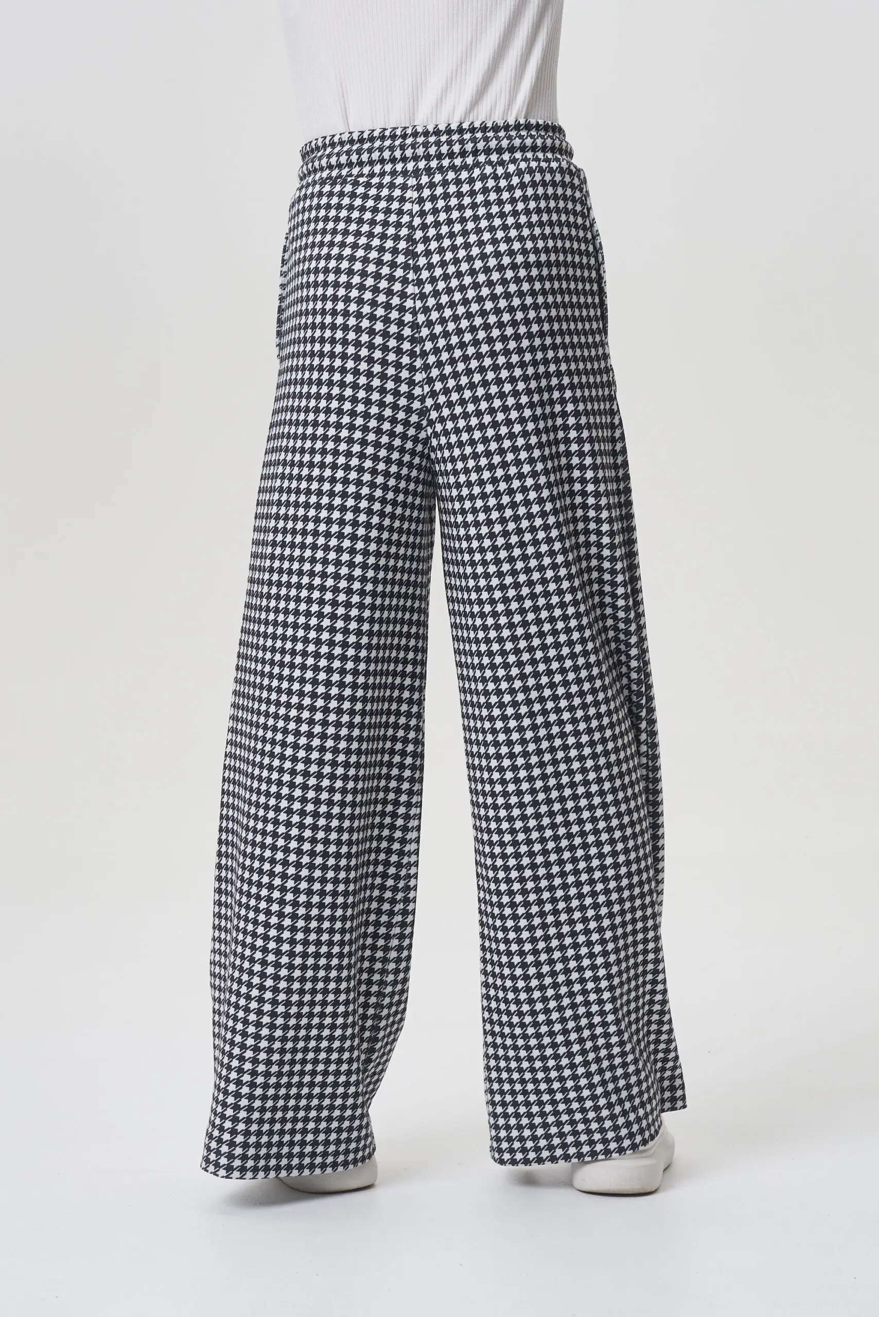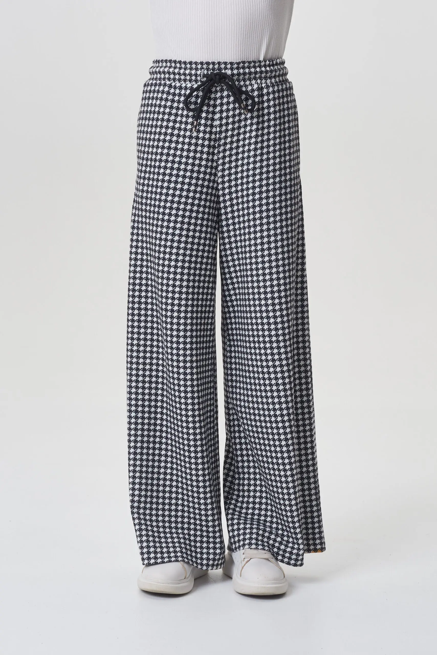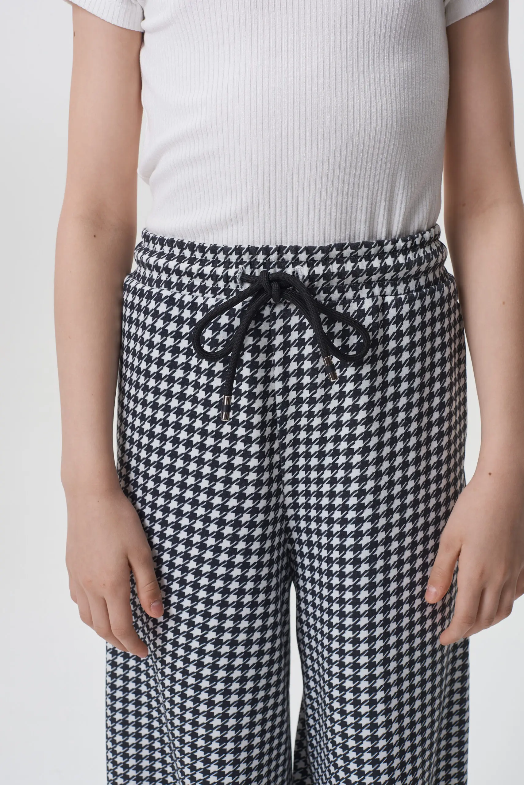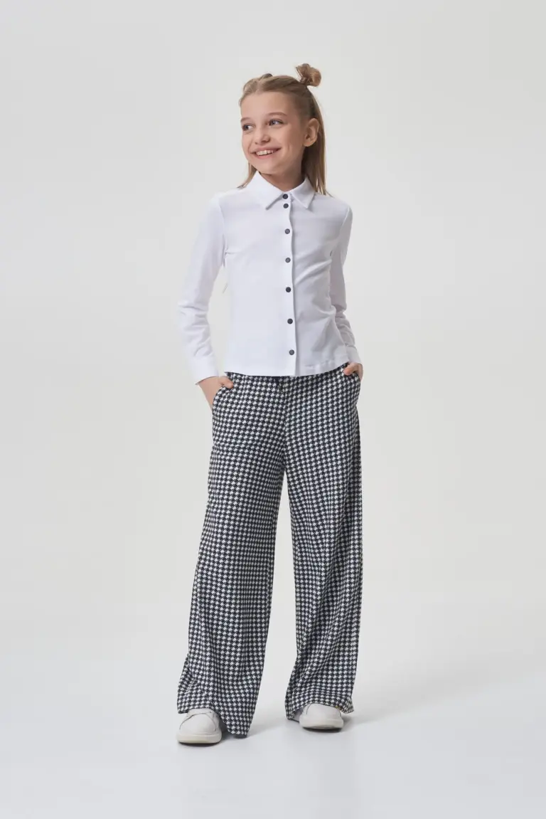 Брюки из джерси для девочки - тренд этого сезона! Модель прямого кроя, пояс на резинке с регулирующей кулиской, по бокам карманы. Модный принт "pied-de-poule" приковывает взгляды и ... добавляет этим брюкам практичности. В сочетании с жакетами и блузами они идеально подойдут для школы, а со свитшотами и толстовками – для создания стильного повседневного образа. Премиальное качество ткани гарантирует идеальную посадку.