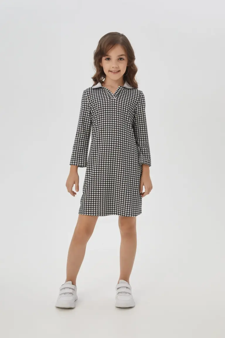 Платье из джерси с принтом пье-де-пуль и оригинальным белым воротником станет отличным вариантом как для школы, так ... и для повседневной носки.