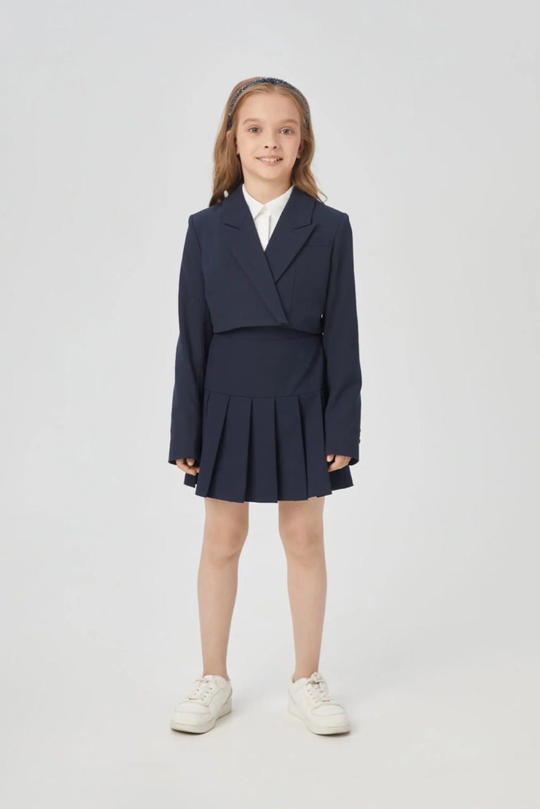 Классическая синяя юбка - идеальный выбор для учениц любого возраста, от младших до старших классов, и соответствует правилам школьного дресс-кода. Элементы дизайна данной классической юбки: складки ... на кокетке, удобный регулируемый пояс, застежка на молнию. Использование в составе смесового материала гарантирует прочность и износостойкость, что не мало важно для повседневого использования. Юбка со складками – универсальная модель, которая отлично сочетается с различными блузками, жакетами и пиджаками.