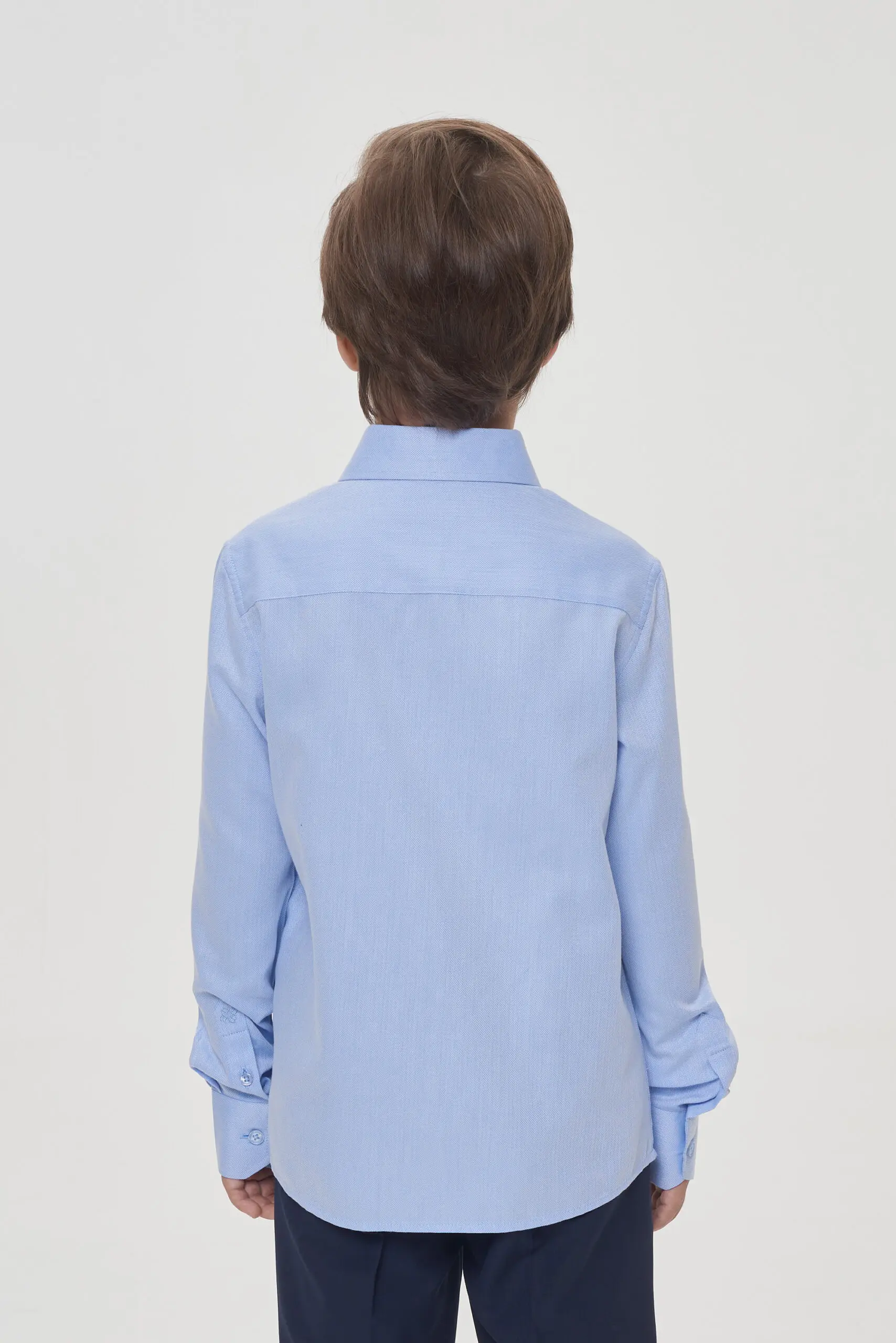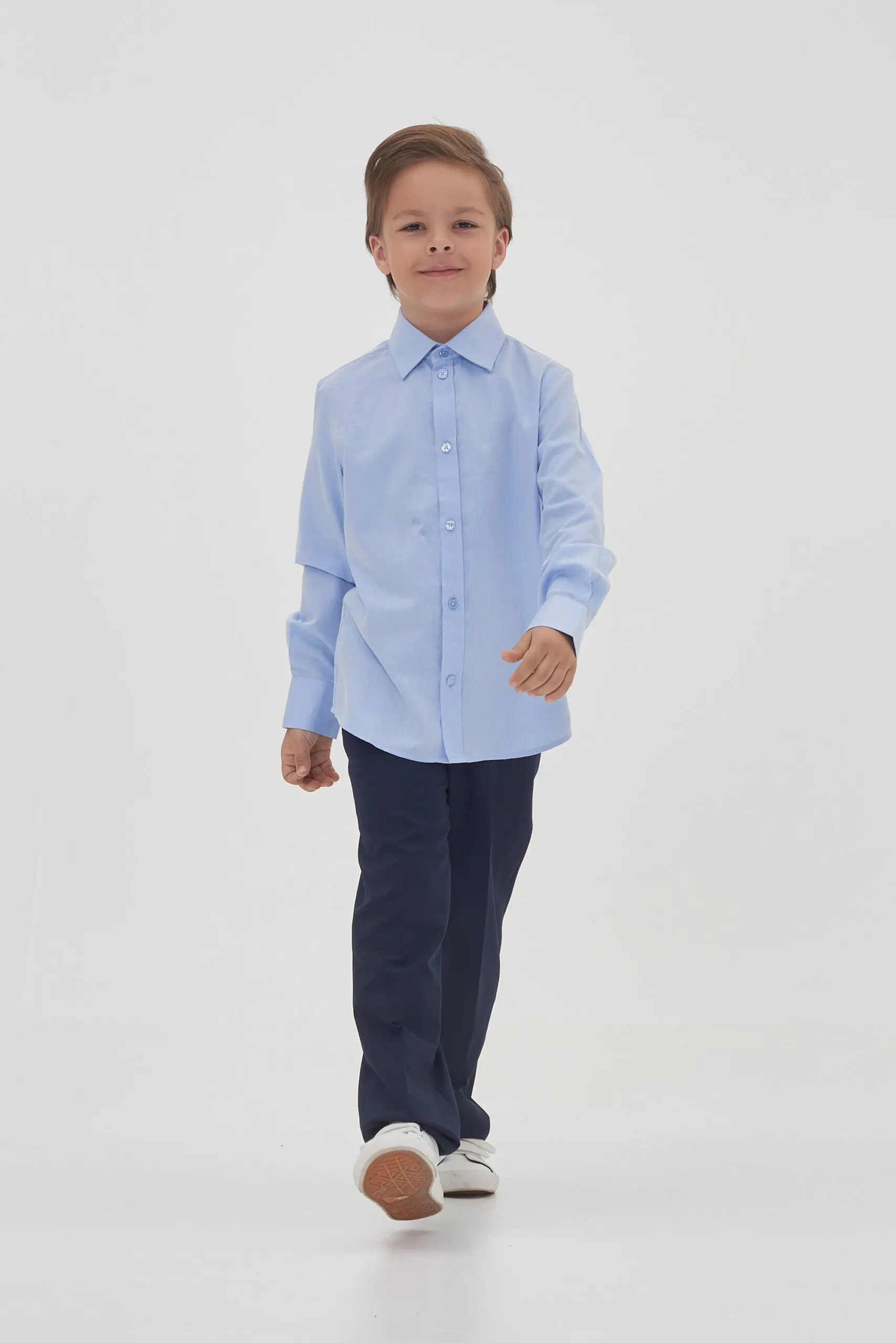 Классическая сорочка для мальчика - неотъемлемая часть гардероба школьника, определяющая его внешний вид и удобство. Представленная модель свободного силуэта изготовлена из высококачественной ткани с преобладанием хлопка. ... Важное преимущество этой модели в том, что она практически не мнется и легко гладится. Характерные черты сорочки: классический отложной воротник, застежка на пуговицы по всей длине, длинные рукава, завершающиеся манжетами. Нижний край изделия имеет закругленную форму. Данная модель превосходно сочетается с трикотажными жилетами, кардиганами и пиджаками.Все товары