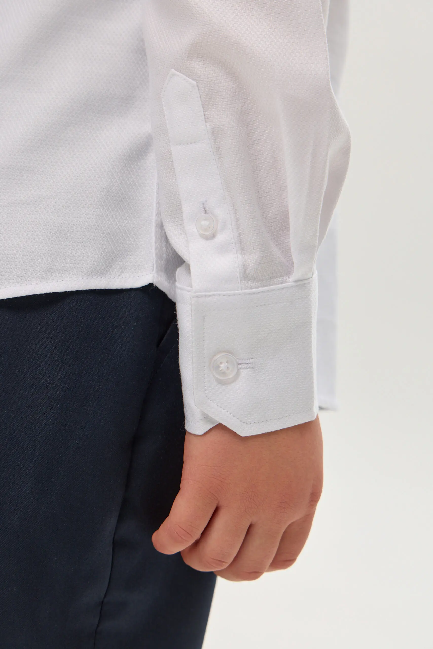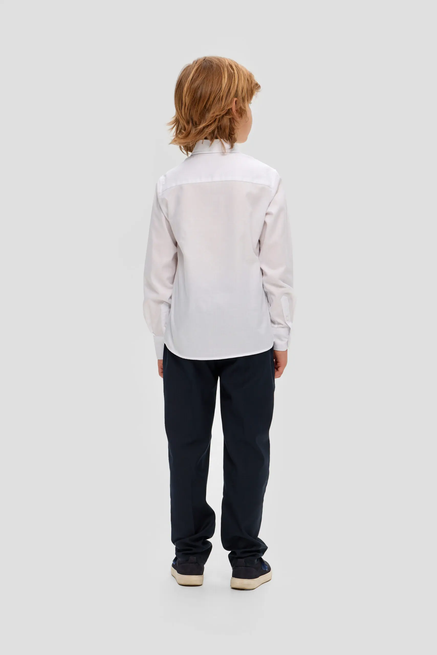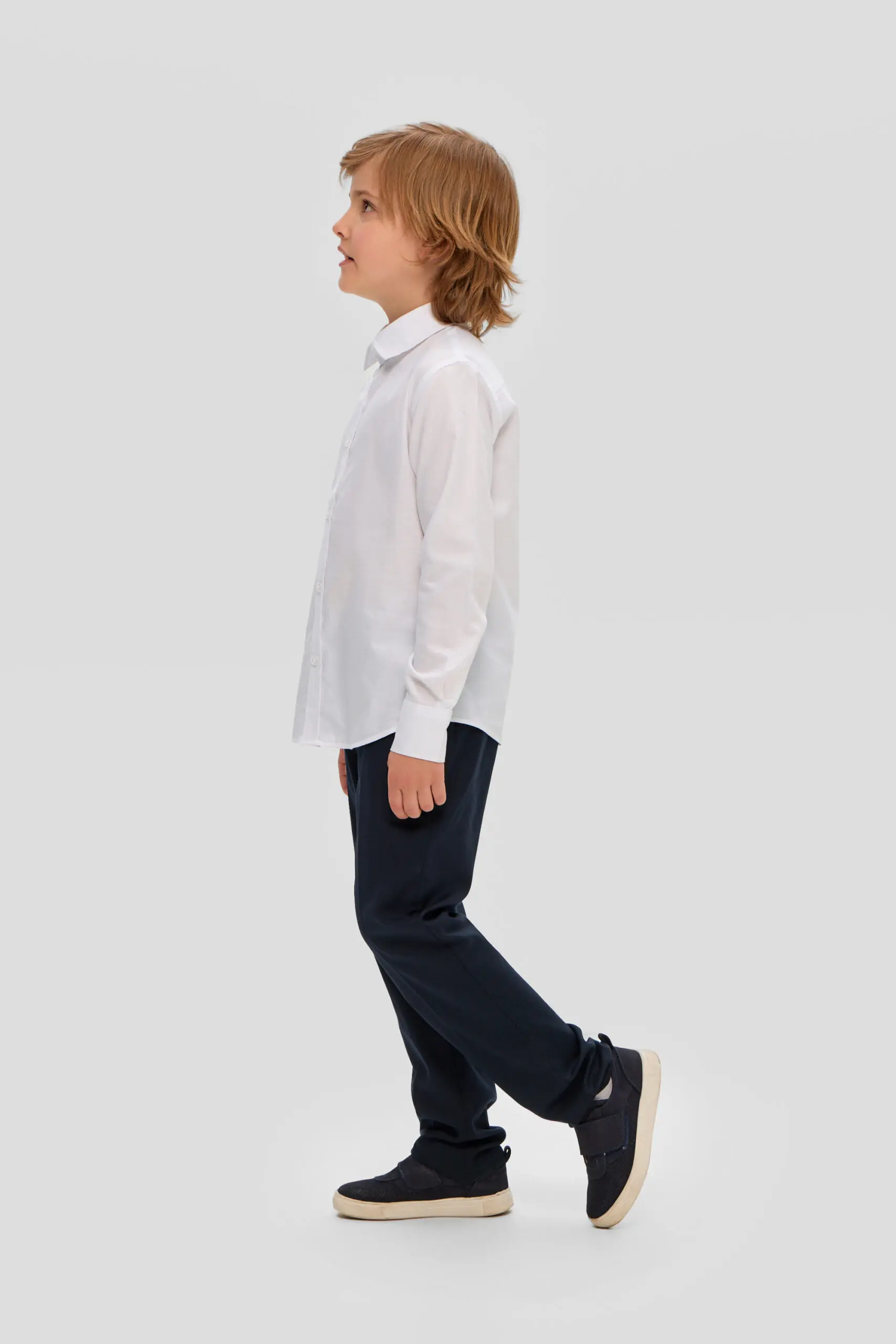Белая сорочка для мальчика, выдержанная в традиционном дизайне, – обязательная составляющая гардероба для школьника. Эта модель свободного силуэта изготовлена из качественной ткани с преобладанием хлопка. Несомненное ... преимущество этой сорочки – неприхотливость в уходе: она практически не мнется и её очень легко гладить. Особенности модели: классический отложной воротник, который позволяет носить галстук или бабочку, застёжка на пуговицы по всей длине изделия, длинные рукава с манжетами. Линия низа имеет округлую форму. Эта сорочка прекрасно комбинируется с жилетами, пиджаками и кардиганами.