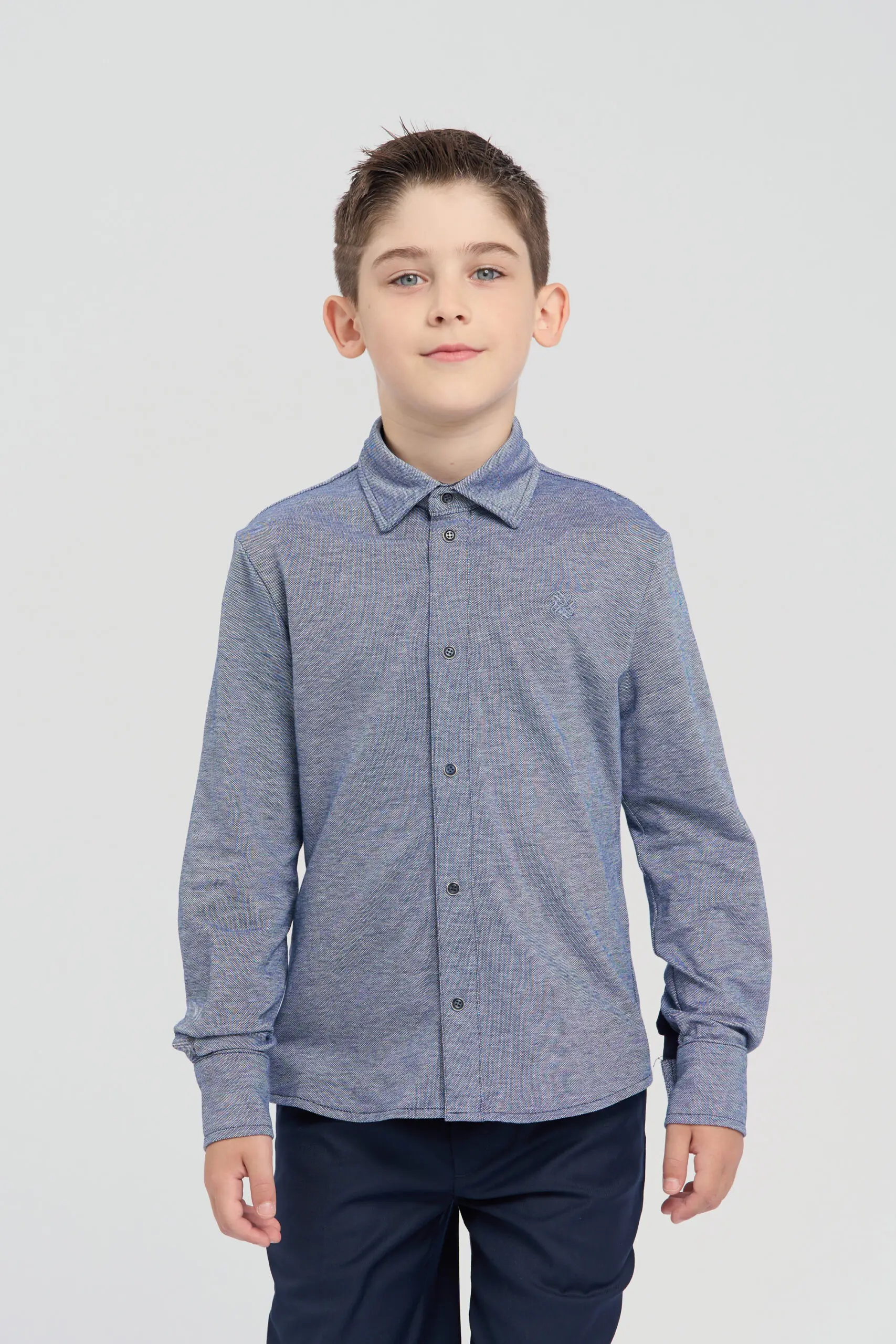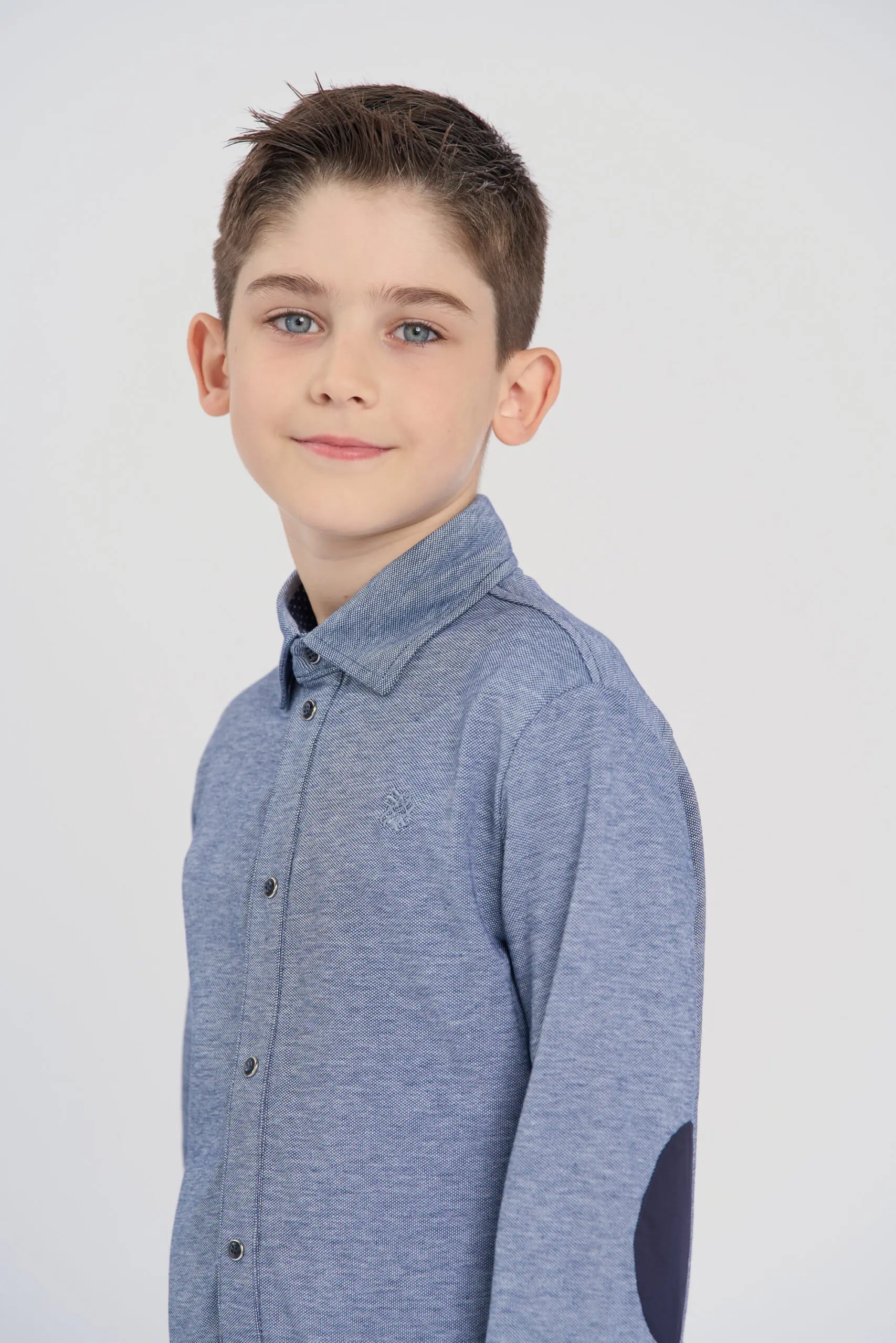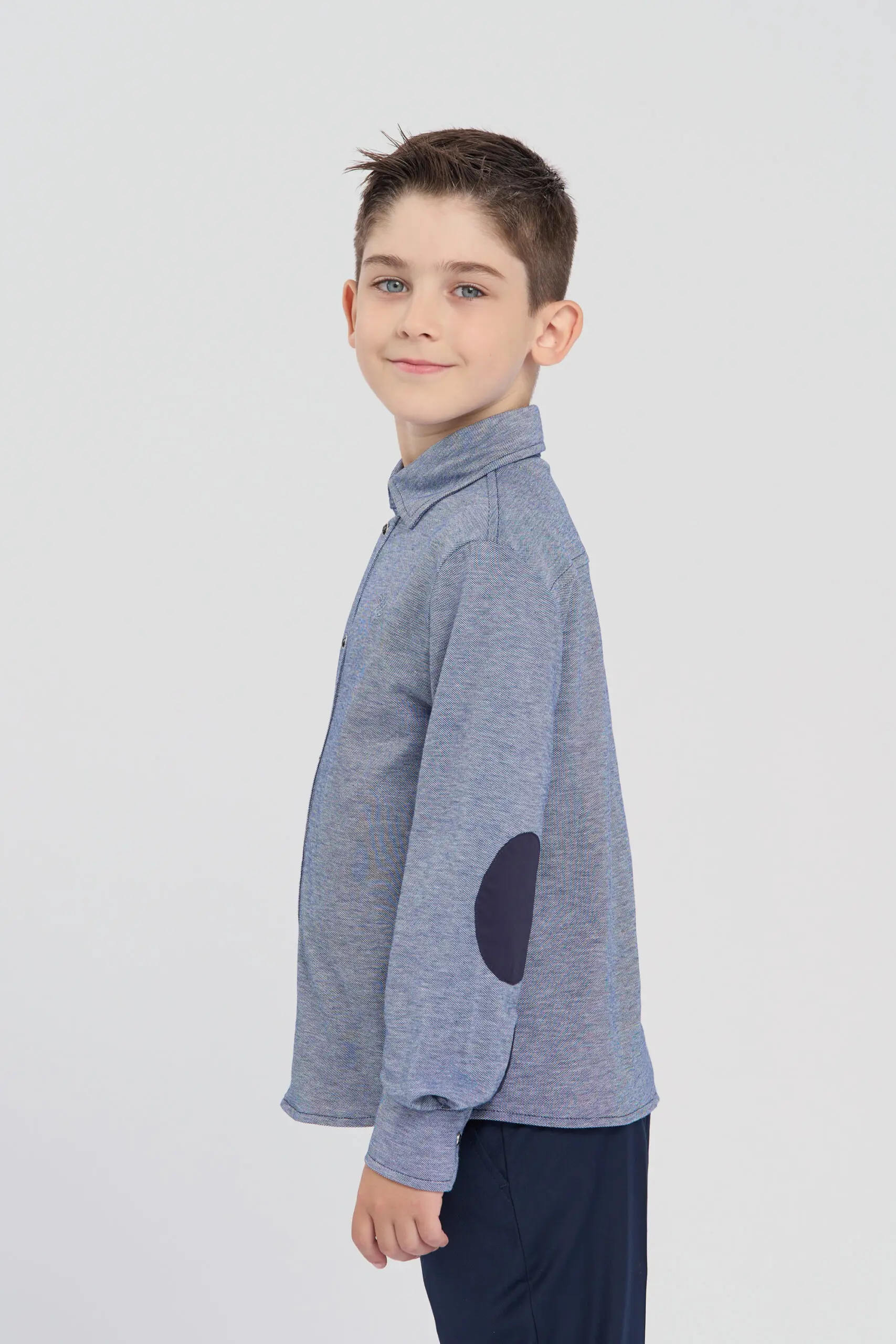 Элегантная трикотажная рубашка из ткани пике – это изысканный и удобный выбор для школьной одежды и для праздничных событий вне школы. Классический рубашечный фасон выделяется благодаря ... контрастным элементам и запоминающимся акцентам: темным брендированным кнопками, накладкам на локтях и вышитому логотипу компании. Хлопковая ткань пике обладает приятной текстурированной поверхностью, обеспечивая естественную циркуляцию воздуха для кожи в любой ситуации. Рубашка отлично сочетается как с классическими школьными брюками, так и с чиносами.