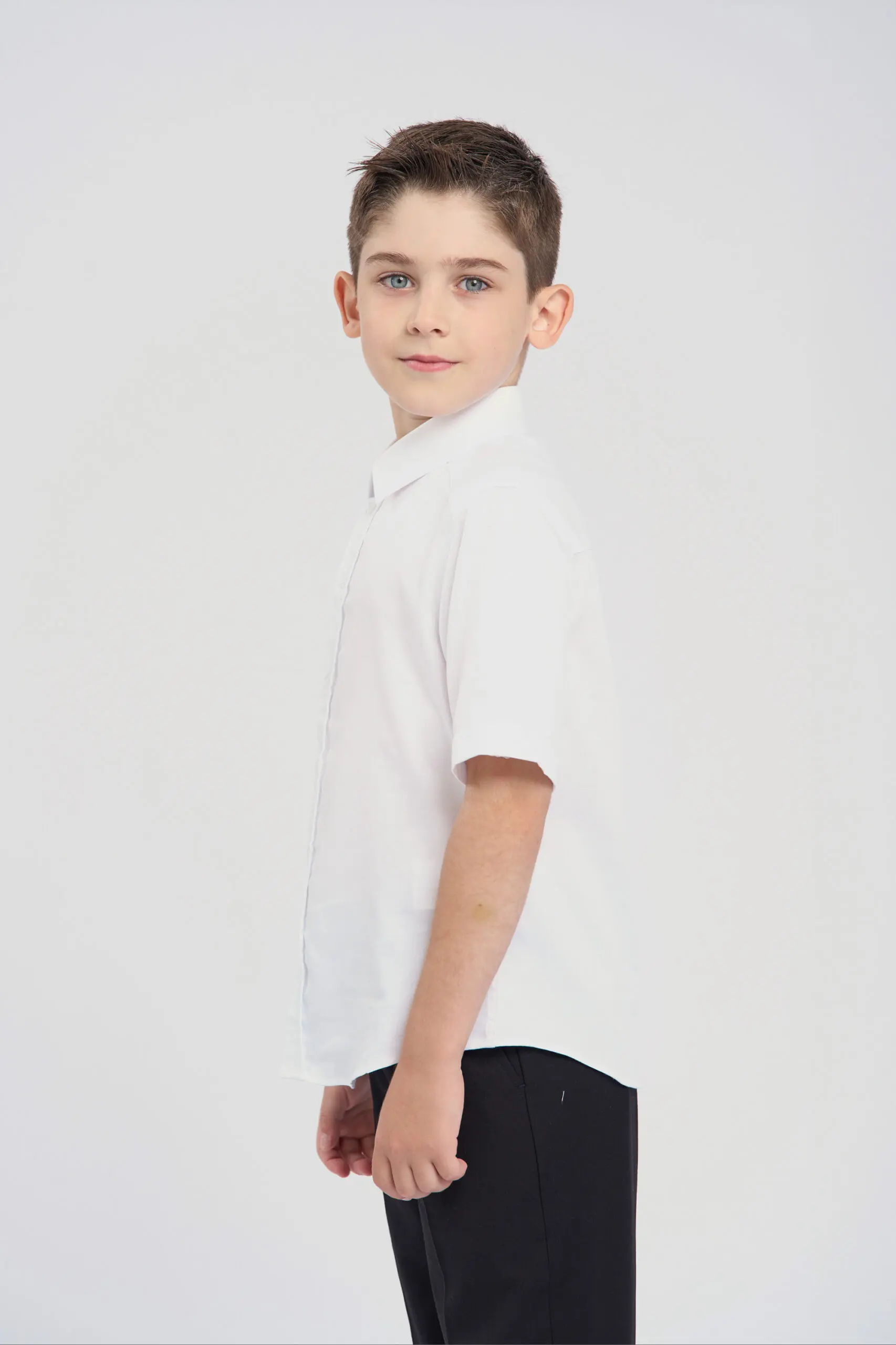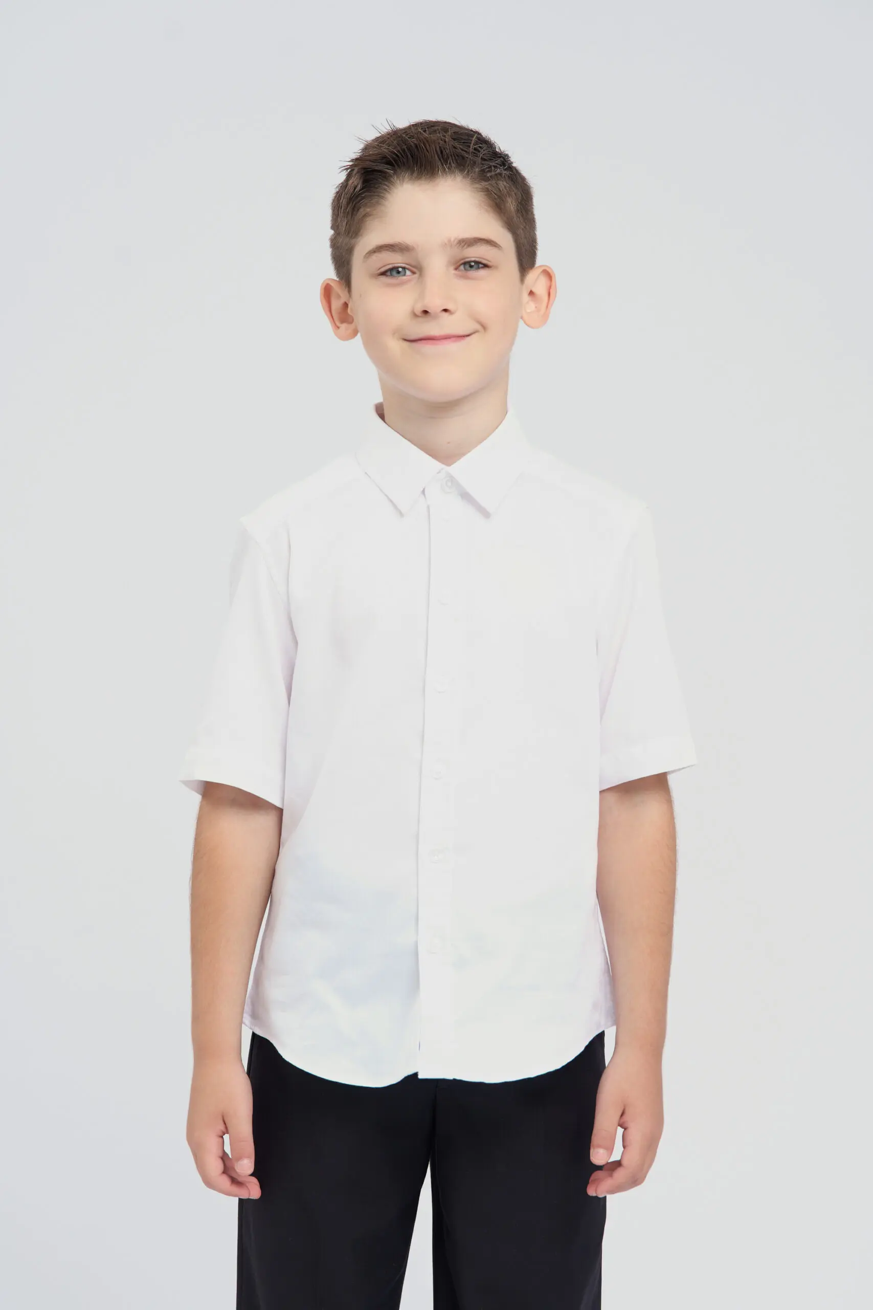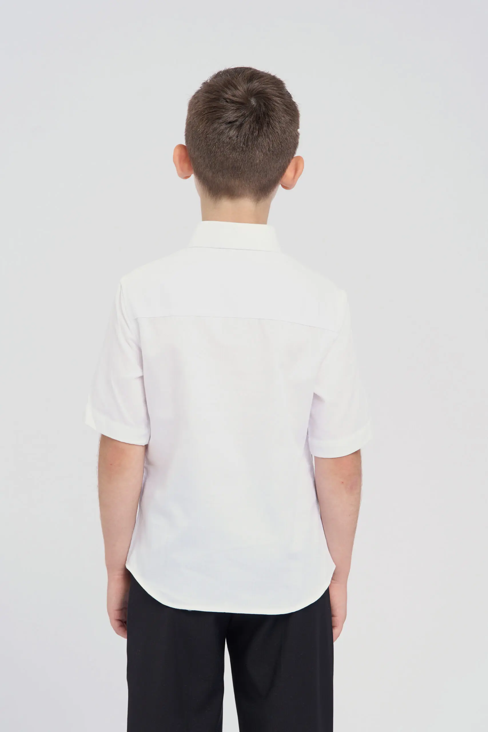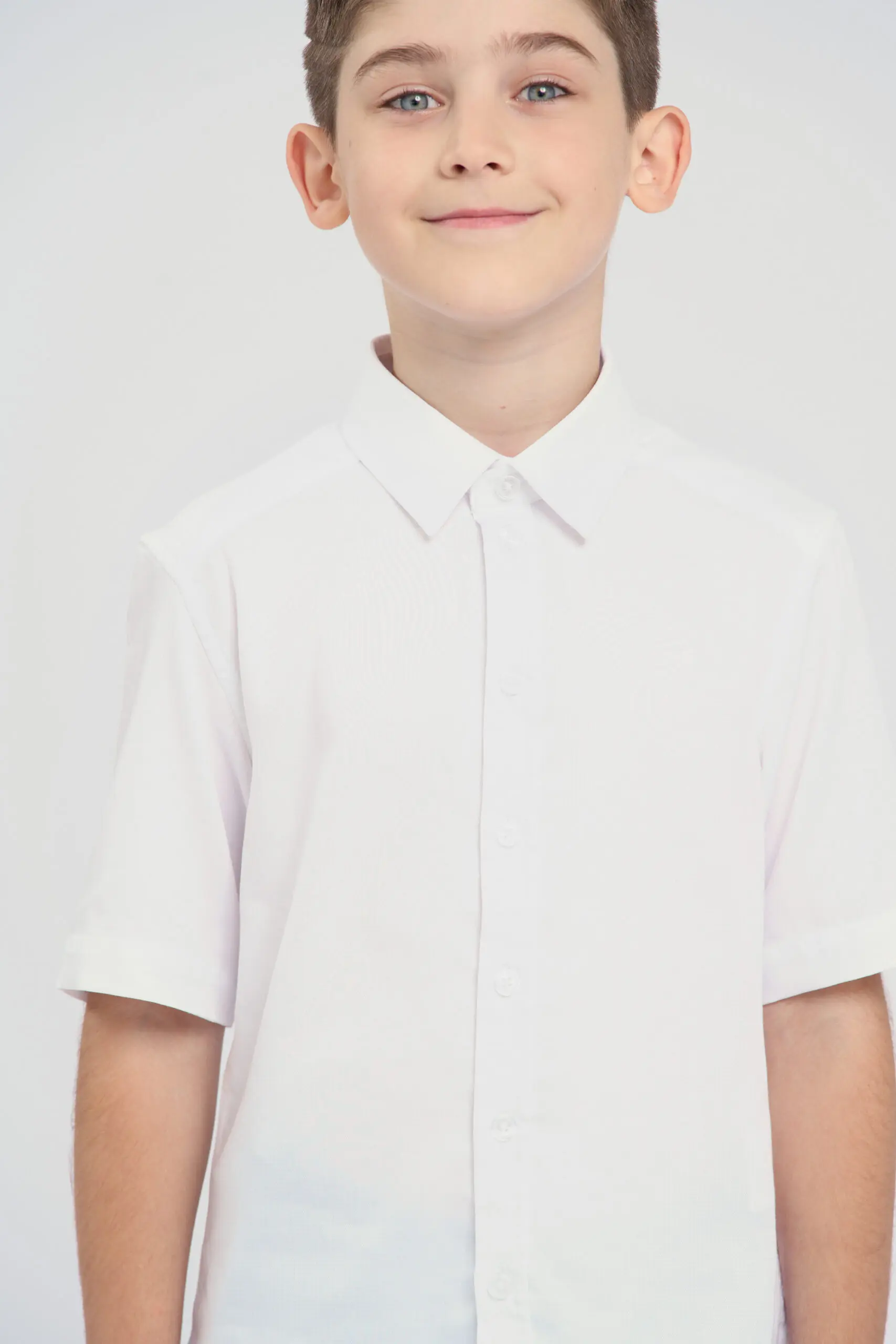 Сорочка в белом цвете с коротким рукавом – это прекрасное сочетание классического силуэта и современных технологий. Изюминкой этой модели является жаккардовый узор, добавляющий ей элегантности. Рубашка ... изготовлена с использованием технологии easy iron. Благодаря особой обработке ткани, процесс глажки значительно упрощается. Рубашка практически не мнется после стирки. Традиционный дизайн идеально сочетается как со строгим школьным комплектом, так и с повседневной одеждой.