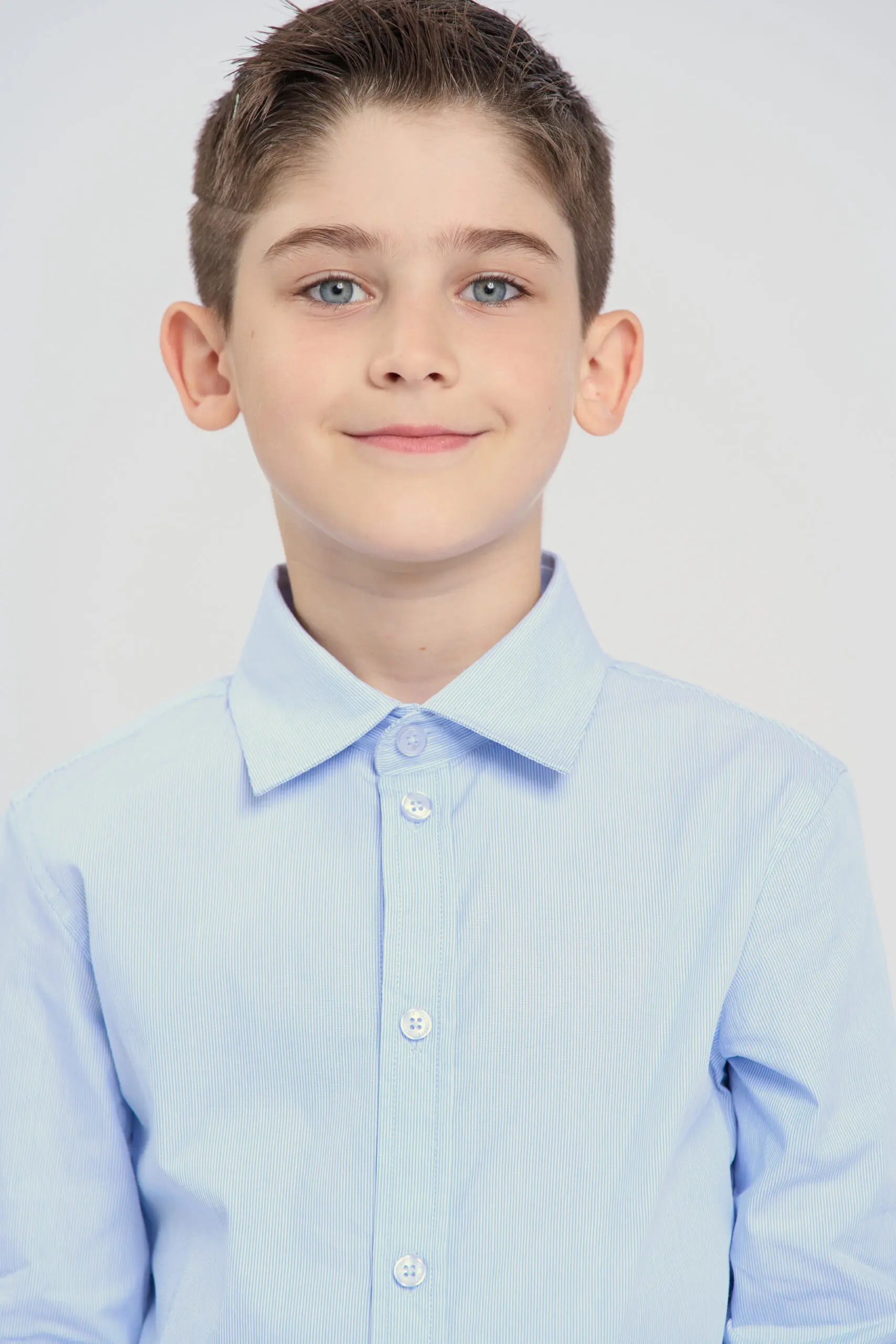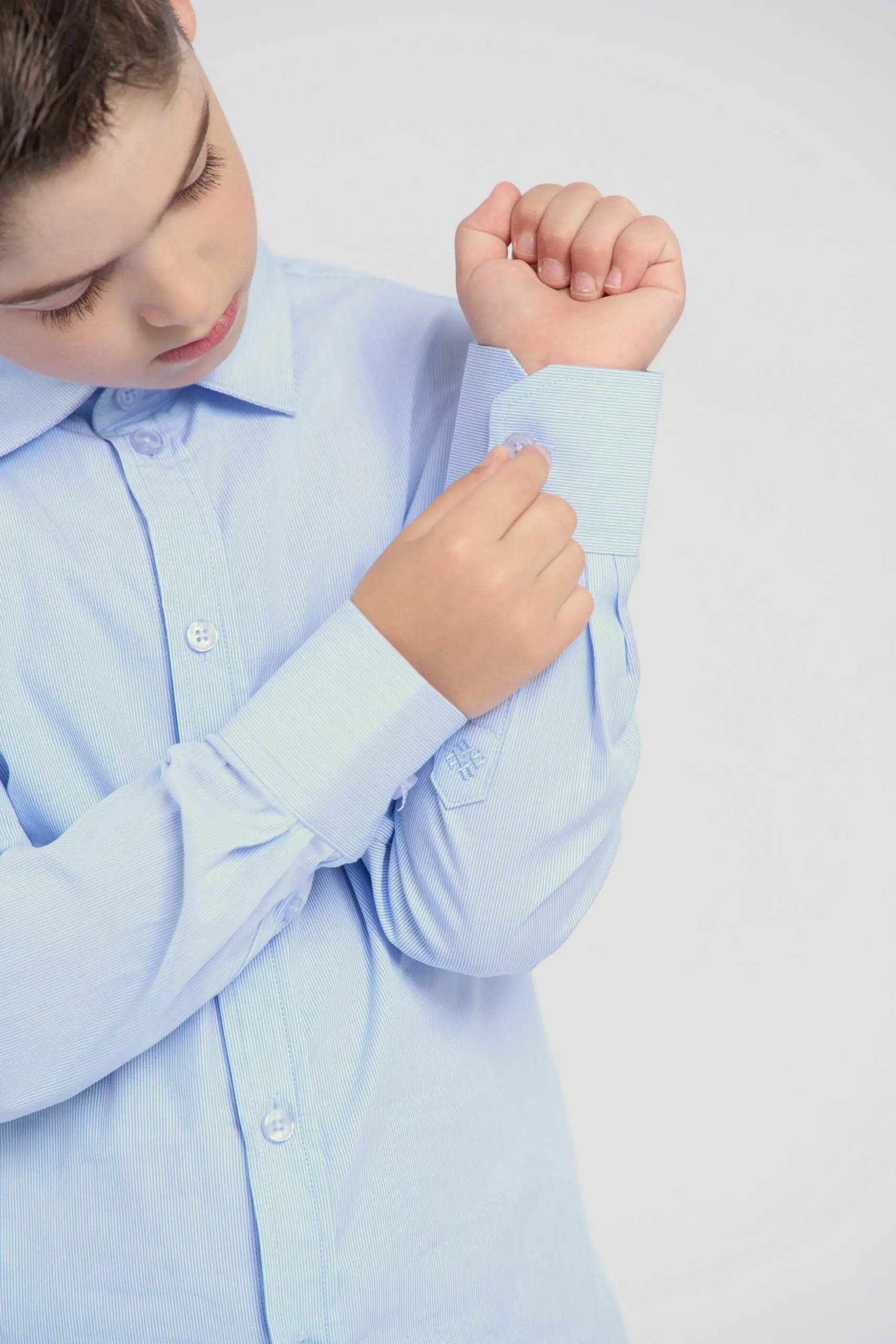 Классическая сорочка для мальчика – неотъемлемый элемент гардероба каждого школьника. Модель выполнена из качественных дышащих материалов. Тонкая полоска, придает сорочке элегантность и современный вид. Этот ненавязчивый ... узор позволяет сочетать сорочку с различными элементами школьной формы – от классических брюк до строгих пиджаков. Аккуратный воротничок, выполненный в классическом стиле, подчеркивает официальность и сдержанность образа, а пуговицы завершают целостный и гармоничный вид сорочки.