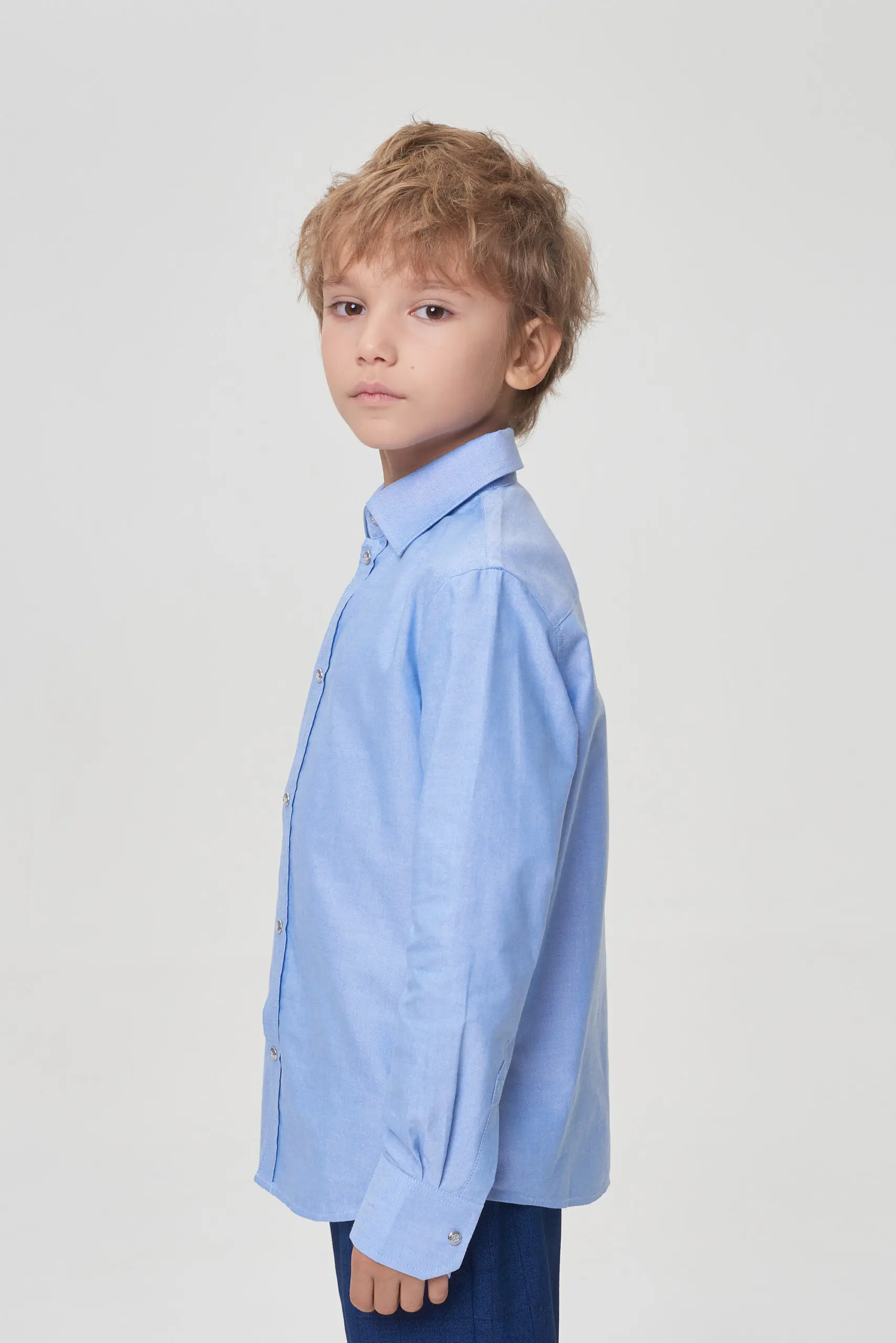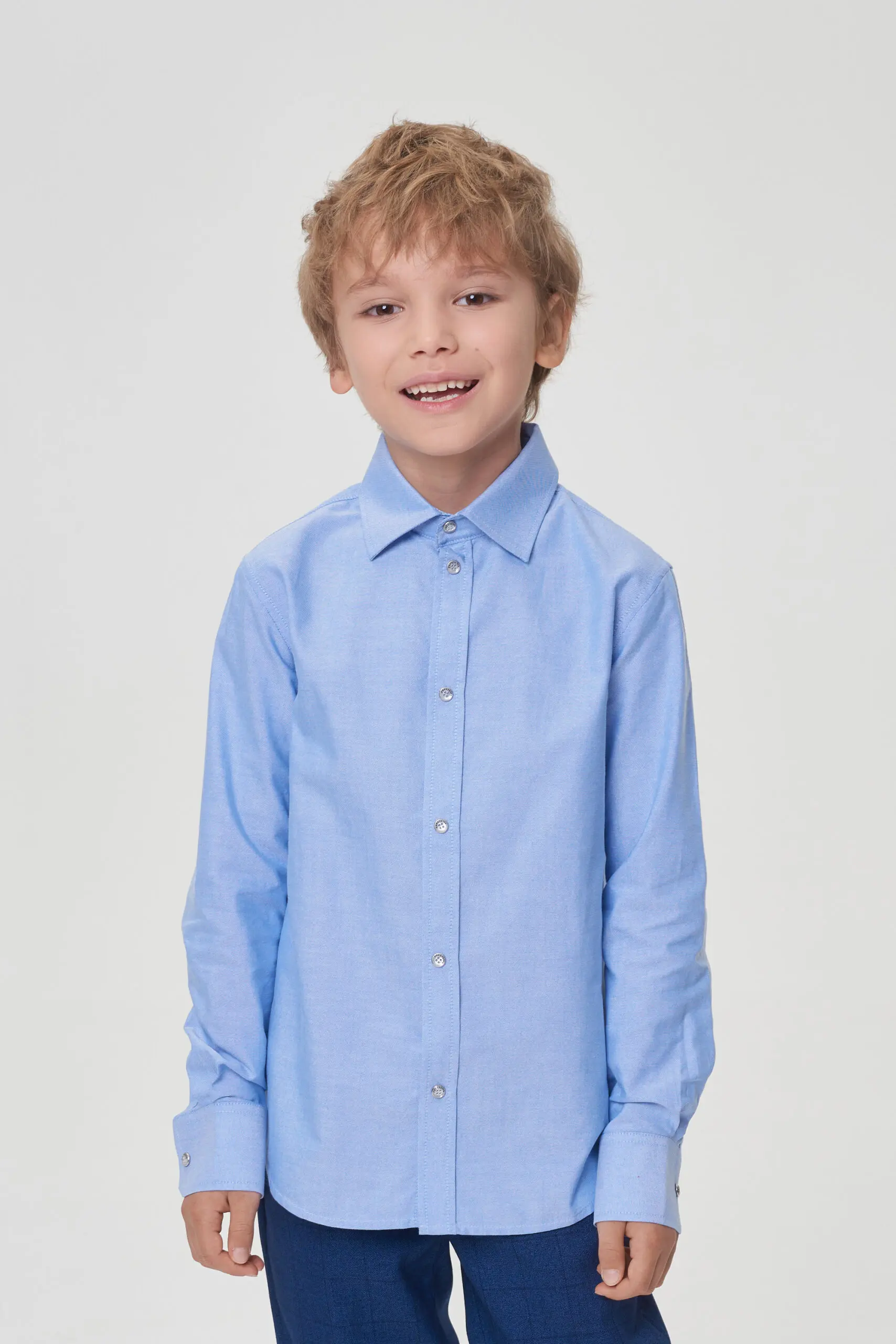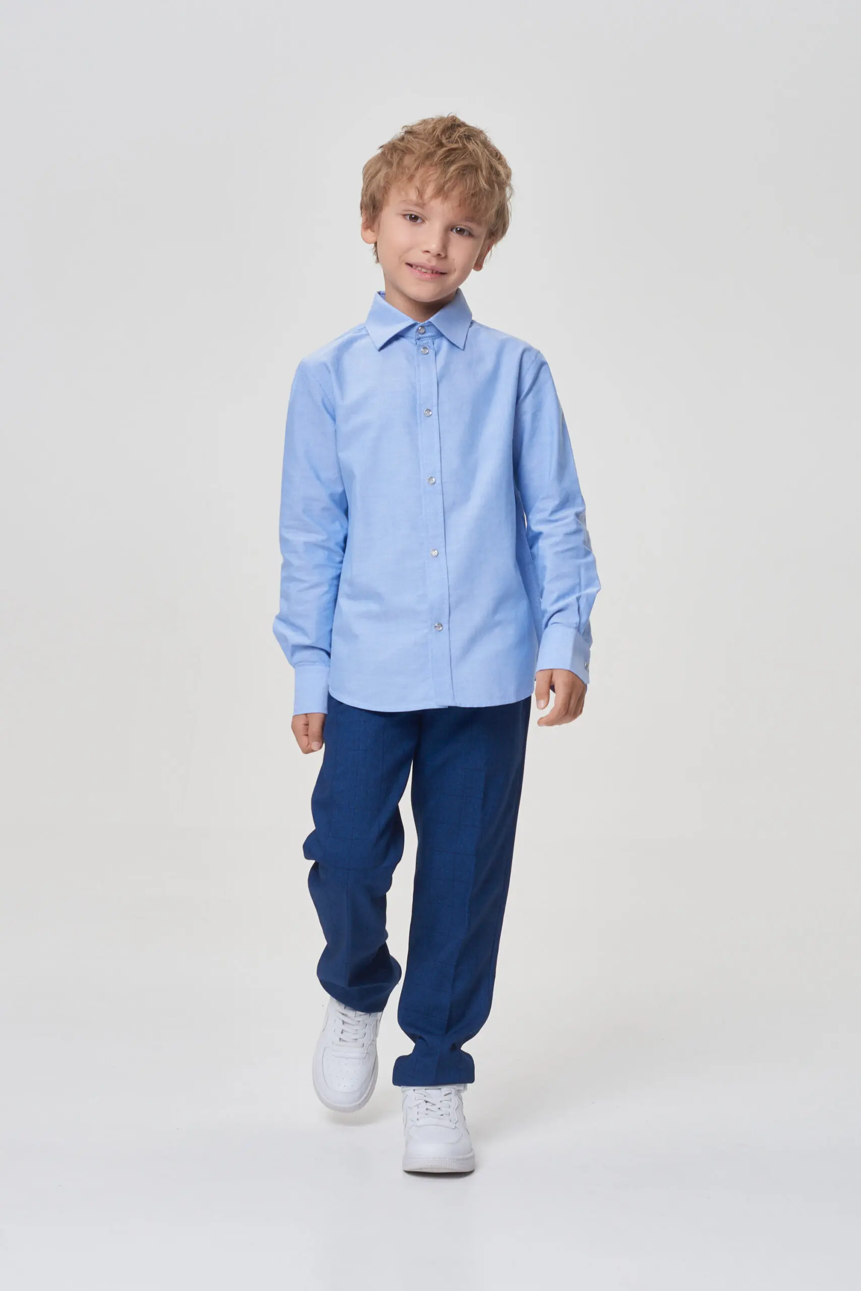 Классическая рубашка для мальчика – важная часть школьного гардероба, создающая аккуратный внешний вид. Эта модель свободного кроя изготовлена из качественного материала с высоким содержанием хлопка. Важным ... преимуществом этой рубашки является ее неприхотливость в уходе – она слабо мнется и легко разглаживается. Отличительные особенности рубашки: традиционный отложной воротник, застежка на кнопки по всей длине, длинные рукава с манжетами. Нижний край изделия имеет округлую форму. Эта модель отлично комбинируется с вязаными жилетами, кардиганами и пиджаками.