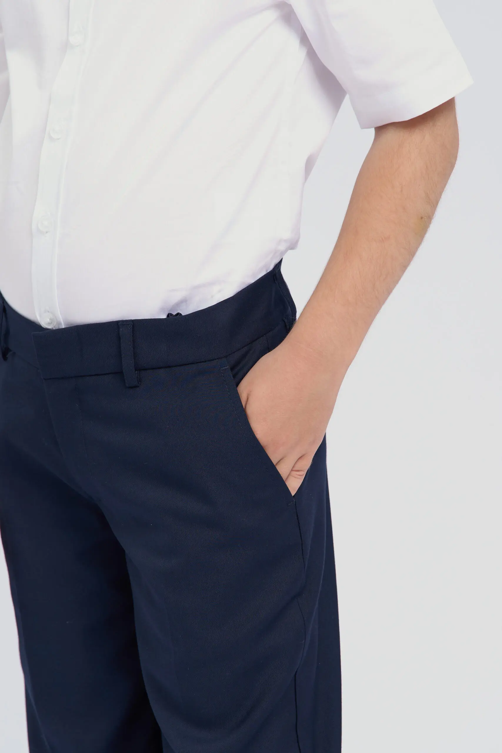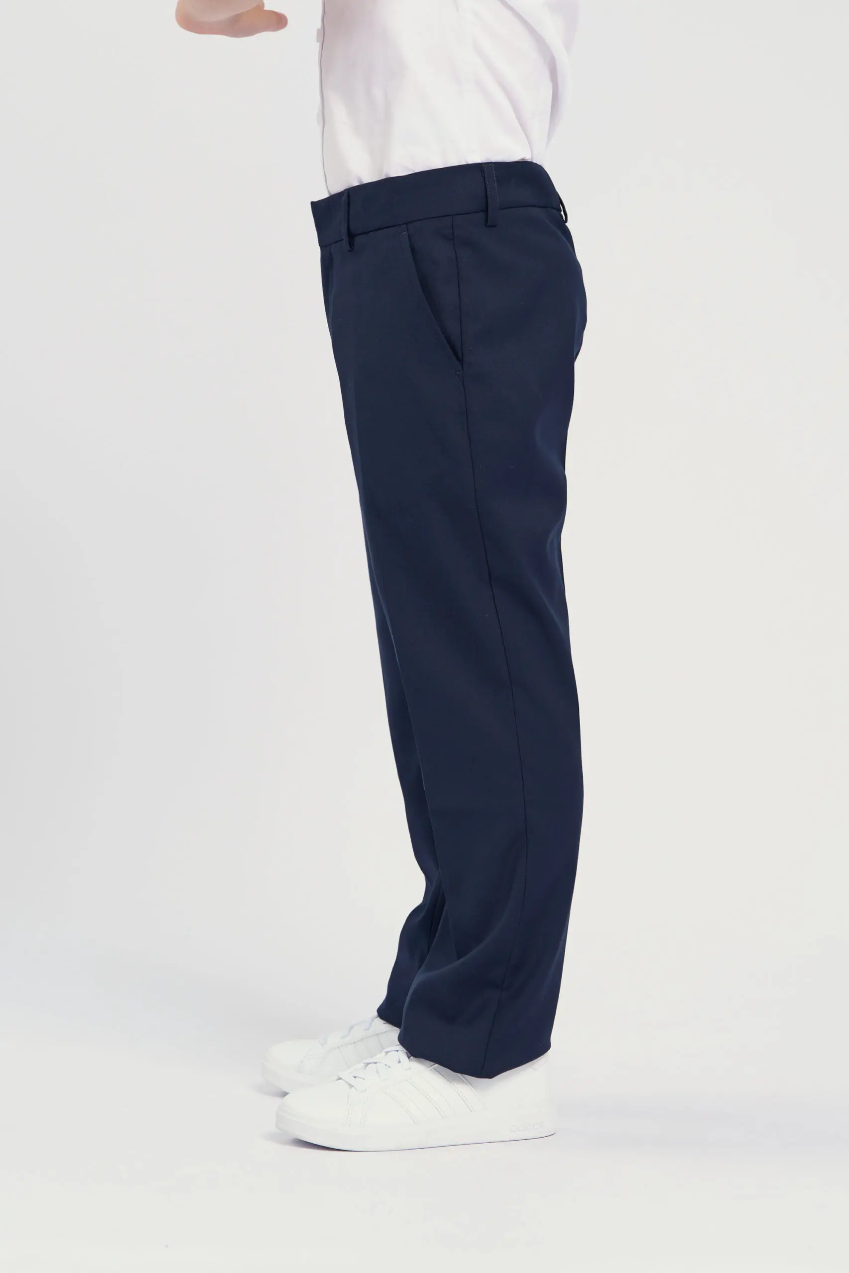 Элегантные синие брюки – идеальный выбор для школьного гардероба мальчика, полностью отвечающий требованиям строгого дресс-кода. Изготовленные из качественной костюмной ткани, они отличаются прямым силуэтом и заниженной ... талией. Безупречное качество пошива, внимание к деталям и сдержанный дизайн подчеркивают лаконичность модели. Брюки оснащены удобной молнией с застежкой на пуговицу, а также функциональными карманами для мелочей. Регулируемая резинка на поясе обеспечивает оптимальную посадку по фигуре, гарантируя комфорт в течение всего дня. Они легко сочетаются с различными элементами школьной одежды: от рубашек и поло до пиджаков и жилетов. Костюмная ткань, из которой сшиты брюки, обладает рядом преимуществ. Этот материал отличается высокой прочностью, отлично держит форму и практически не мнется, что особенно важно для школьной формы. Благодаря особому составу, ткань обеспечивает максимальный комфорт на протяжении всего учебного дня.