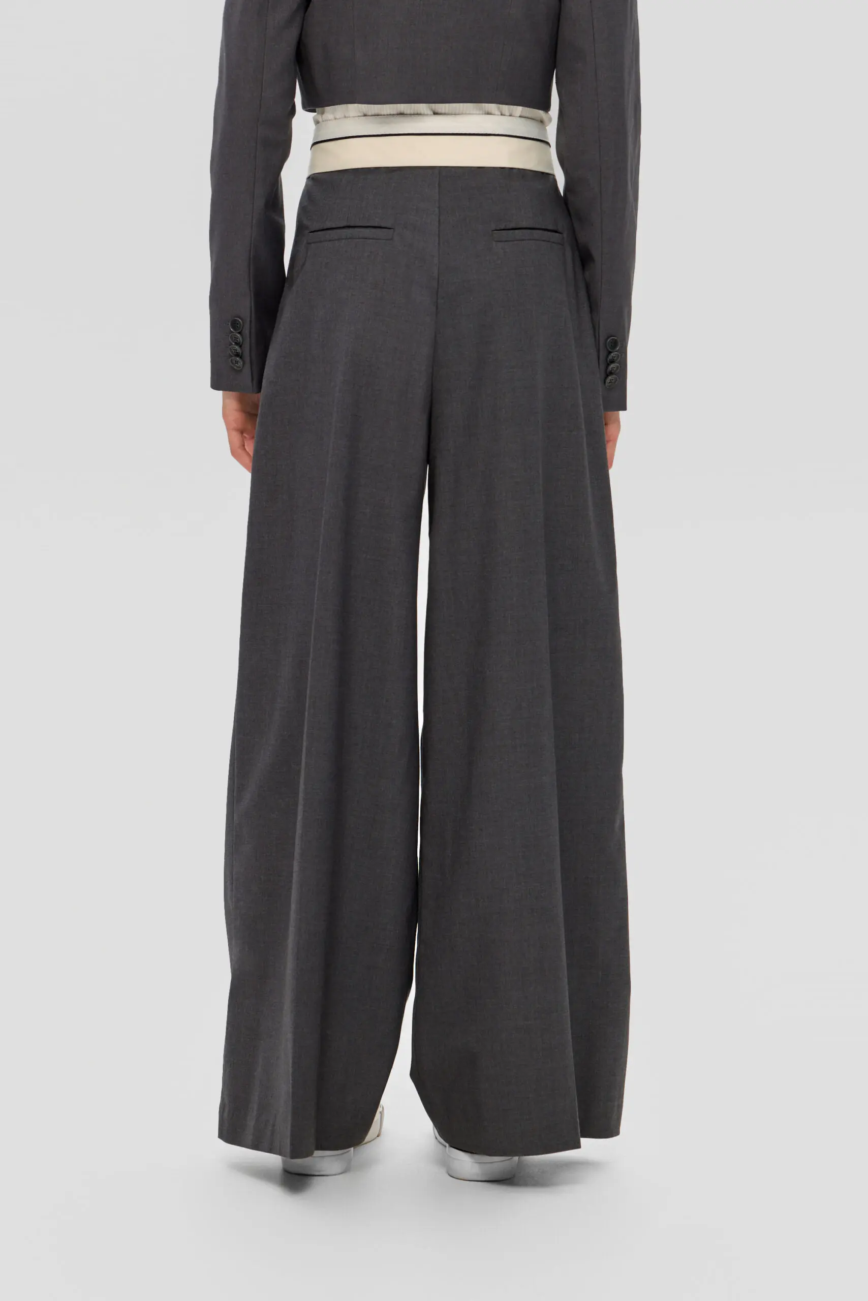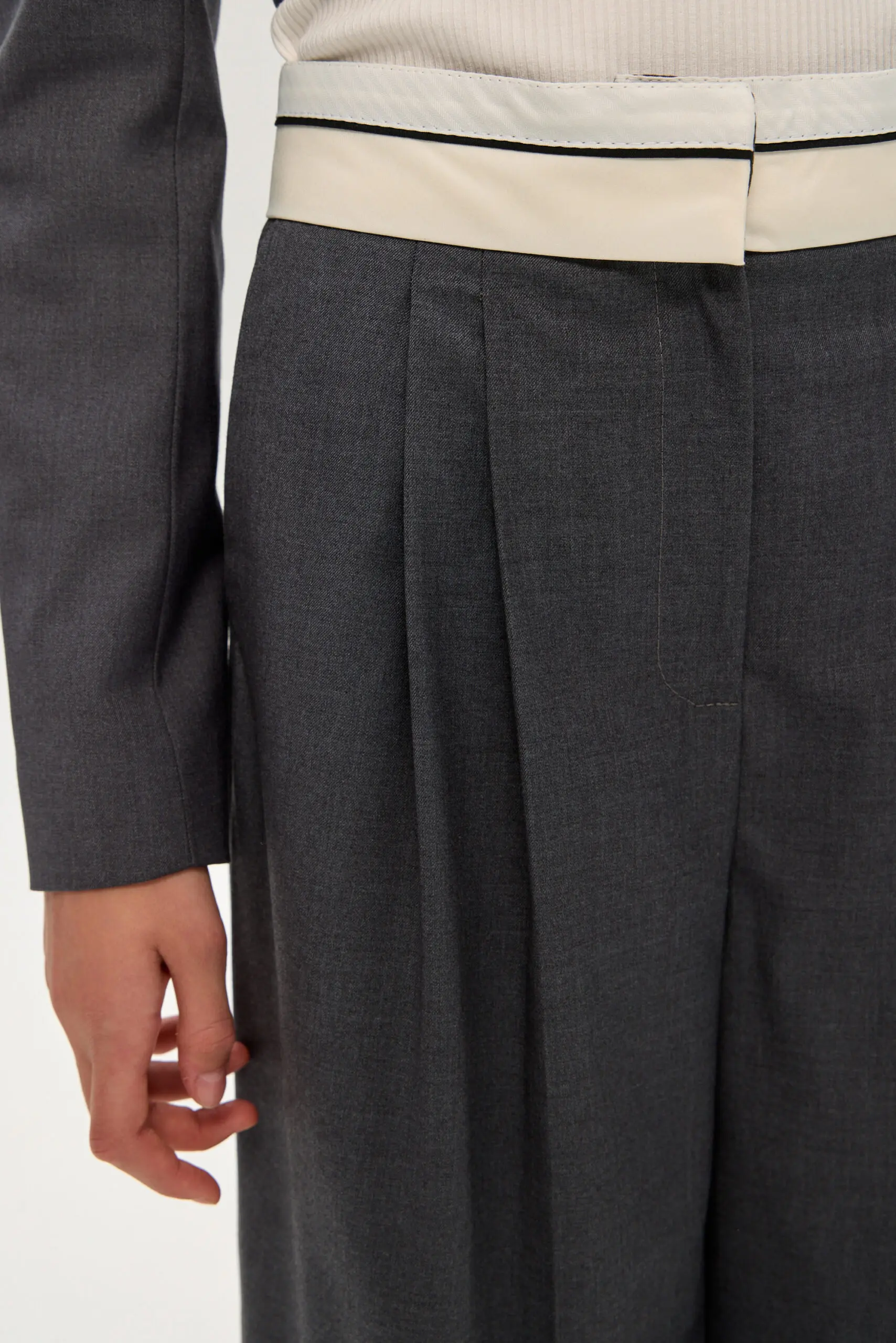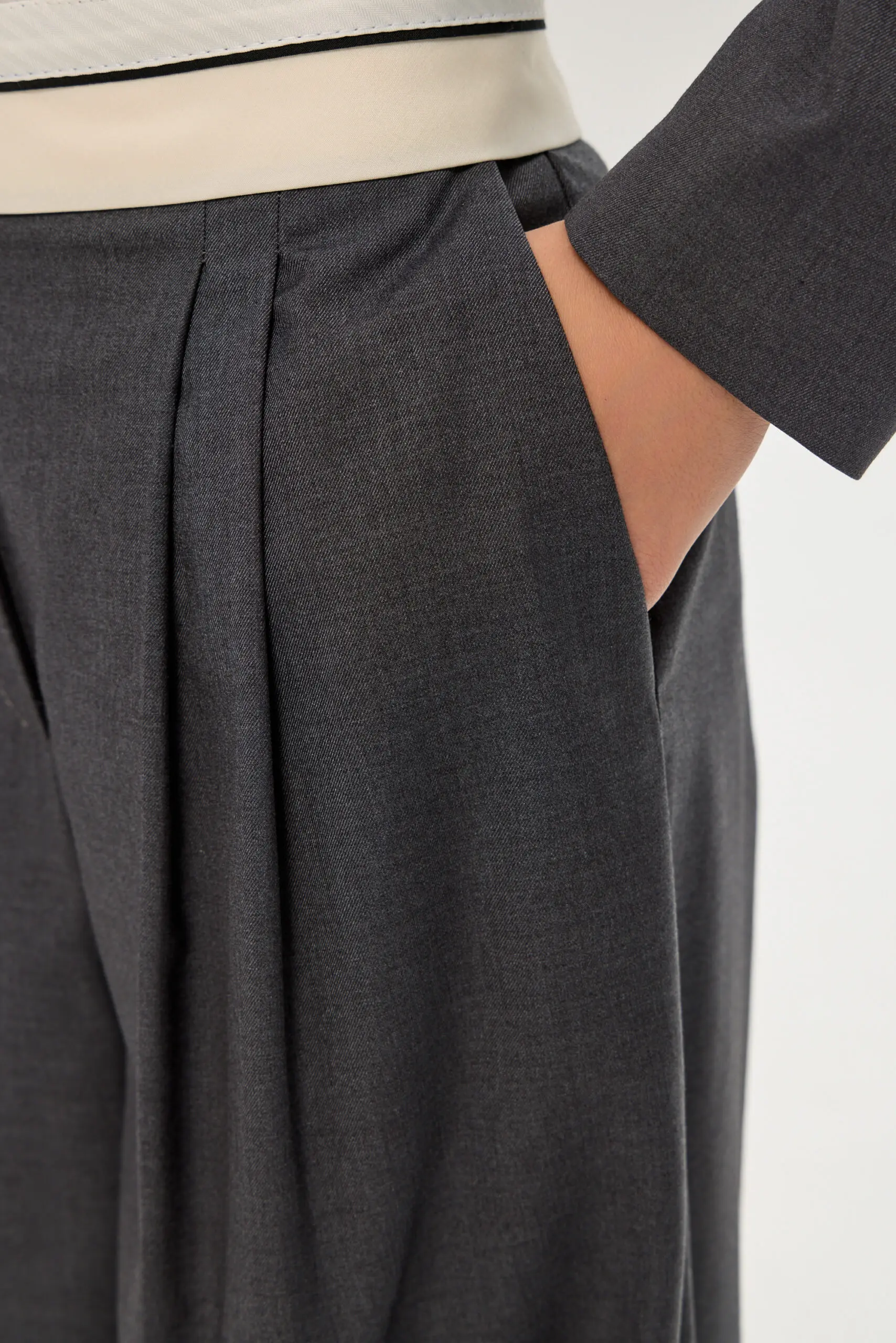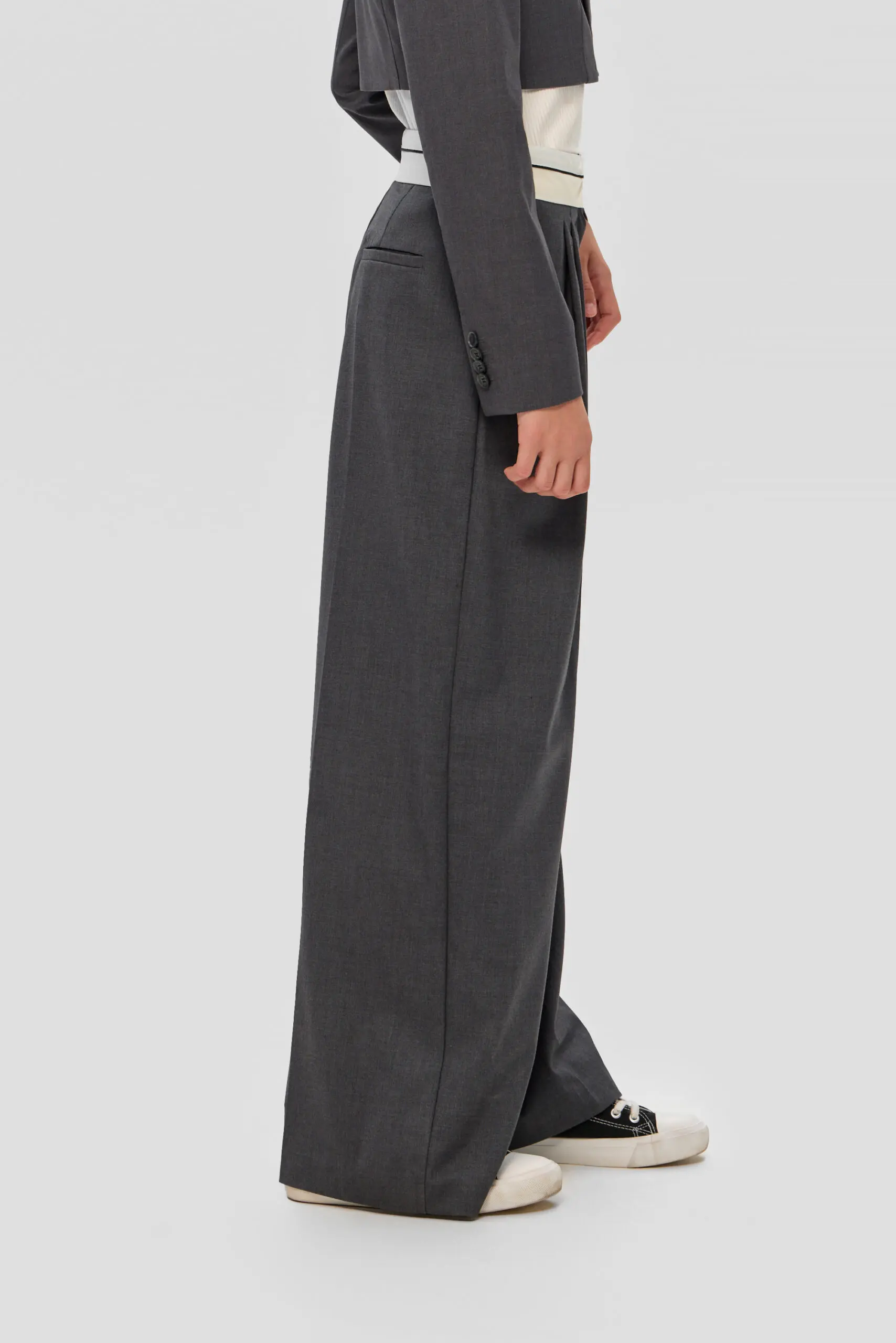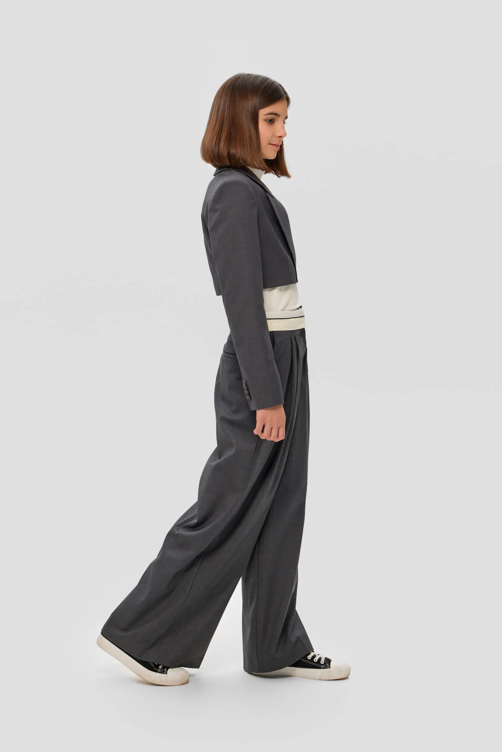 Для школьного гардероба девочки превосходным выбором станут широкие брюки с корсажным поясом, гарантирующие безупречный внешний вид и удобство. Серый цвет делает их универсальной вещью, без труда ... комбинируемой с блузами, рубашками и пиджаками, что открывает возможности для создания множества модных школьных ансамблей. Свободный силуэт брюк не сковывает движений, обеспечивая комфорт в течение всего дня занятий. Конструкции пояса уделено особое внимание: корсажный пояс подчеркивает линию талии обеспечивая надеждную фиксацию. Подкладка из вискозы создает приятные тактильные ощущения и обеспечивает ребенку максимальный комфорт на протяжении всего дня.