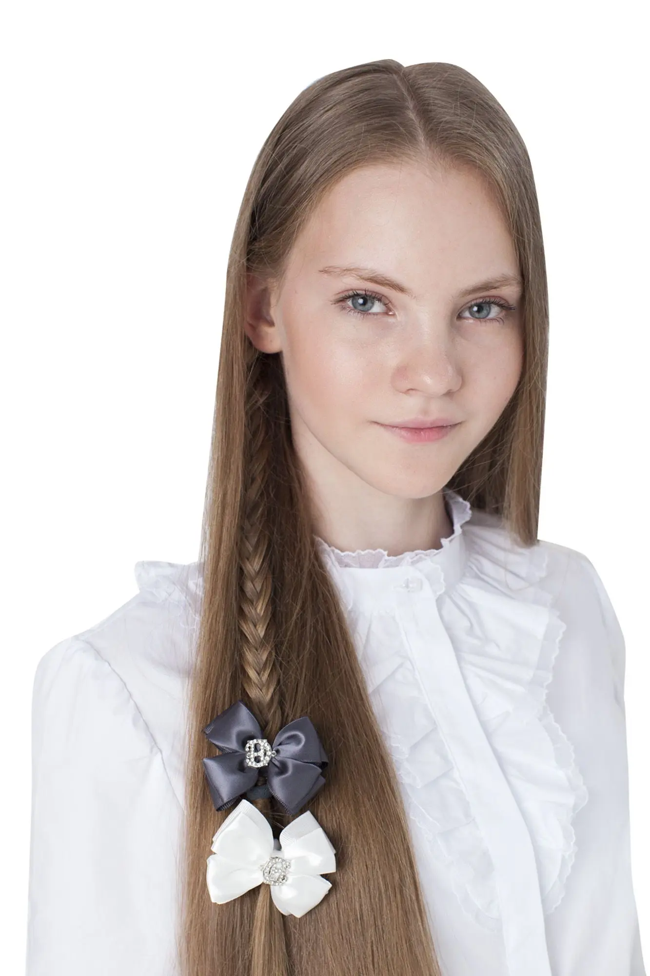 Не выходят из моды лаконичные банты из ленты на резинке. Данная модель выполнена в оригинальном сером цвете, что придает изделию строгий вид и позволяет украшать волосы ... в будние дни, привнося нотку элегантности в привычный школьный образ.