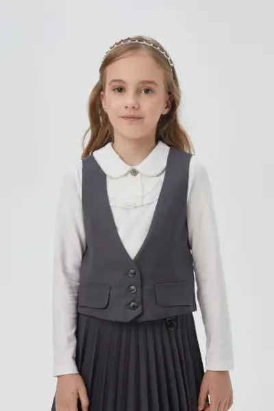 Застежка на пуговицы. Такую вещь можно сочетать с ... любыми брюками, юбками и сарафанами. Универсальный предмет гардероба для создания школьного лука.