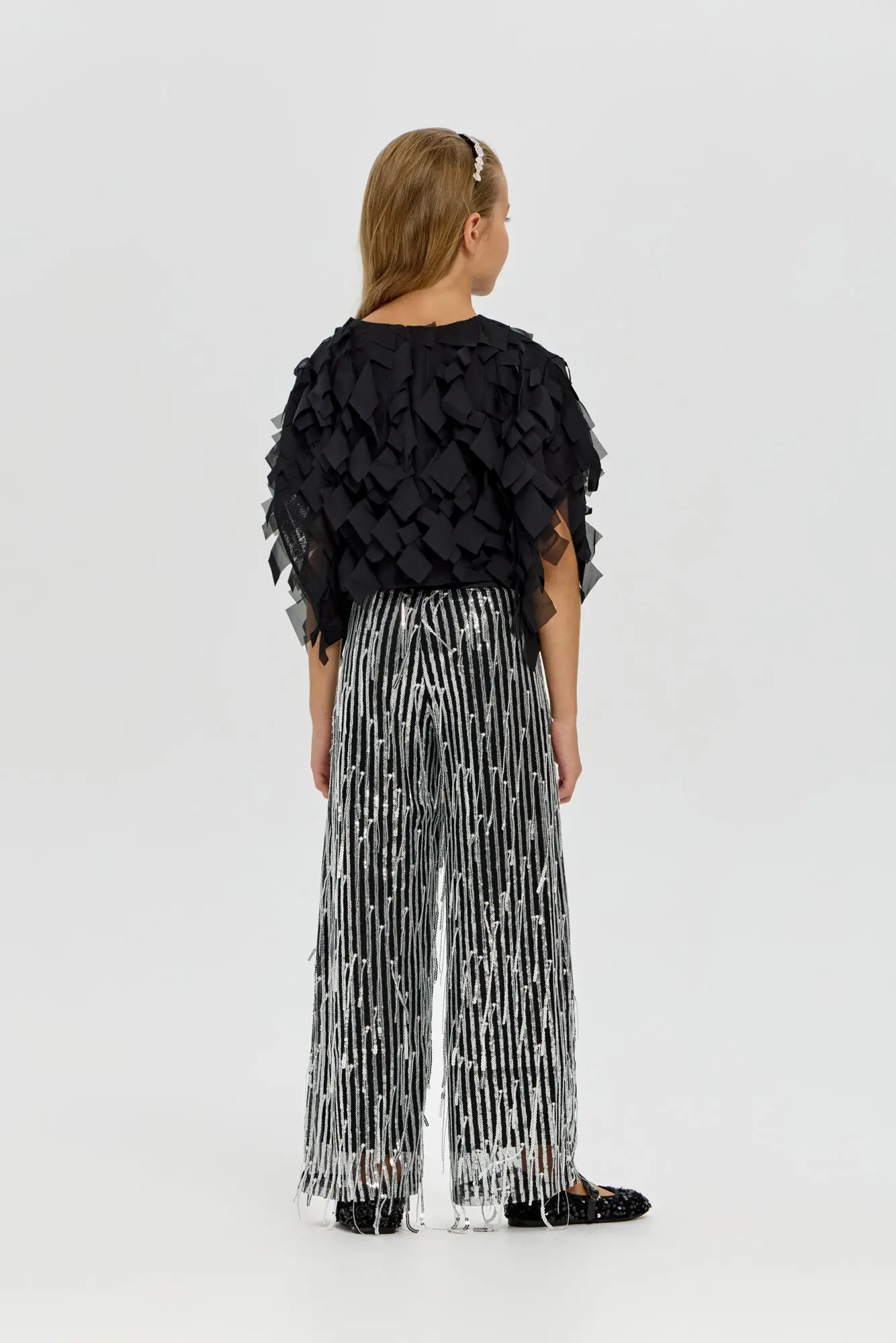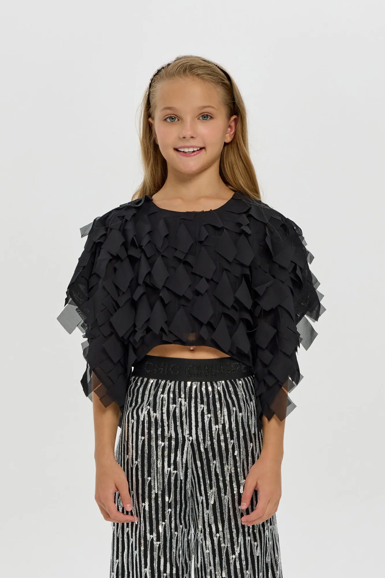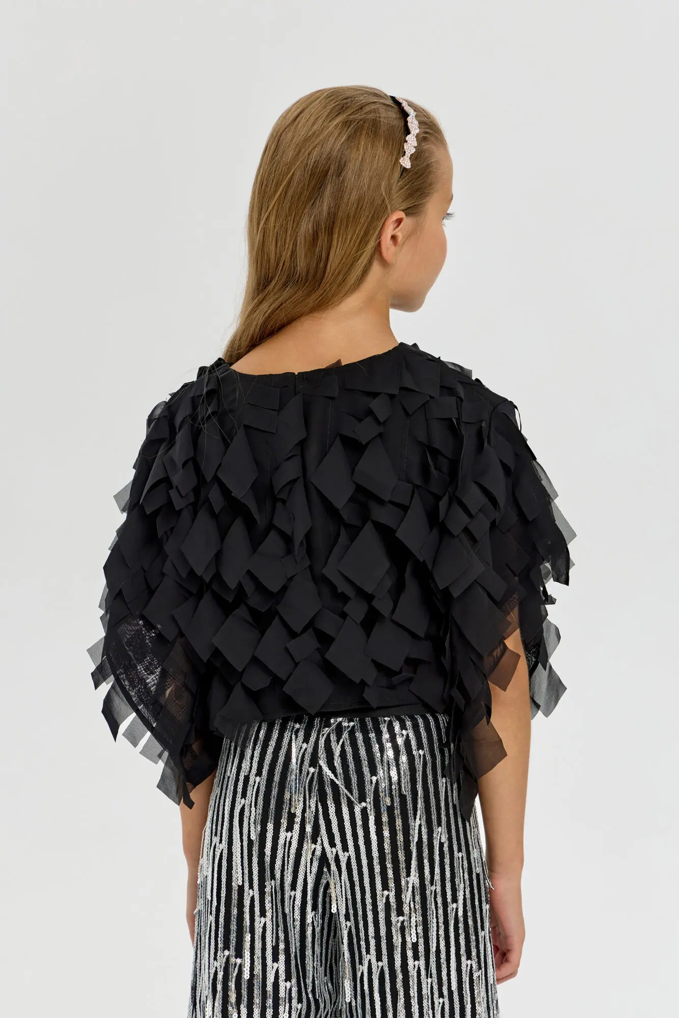 Черная блузка для девочки станет ярким и модным акцентом в одежде юной модницы. Благодаря оригинальному оформлению, эта вещь точно не останется незамеченной. Блузка прекрасно дополнит как ... нарядный, так и ежедневный комплект, привнося в него нотки индивидуальности и элегантности.