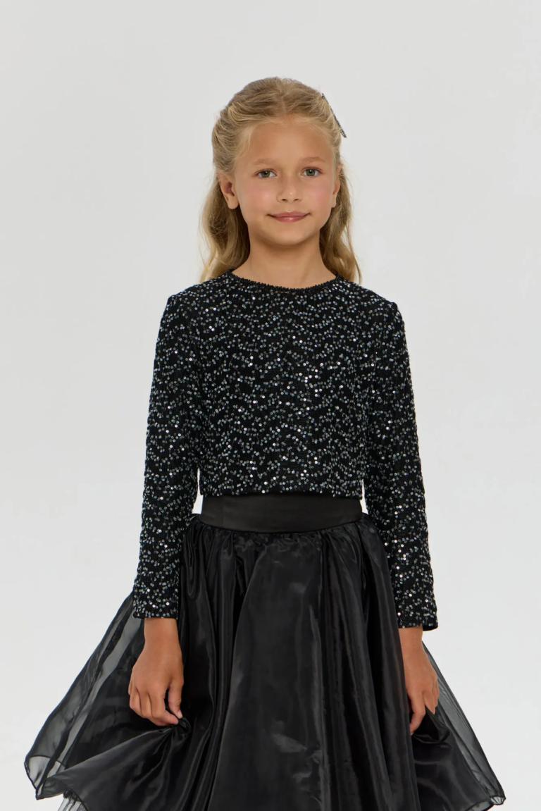 Блузка, украшенная блестящими пайетками, – превосходный акцент в детском гардеробе. Эта модная вещь способна преобразить любой комплект одежды делая его запоминающимся. Благодаря мягкости ткани, носить ее ... – одно удовольствие. Блузка с пайетками – прекрасный вариант для особенных случаев. Она станет отличным решением для празднования дня рождения или другого торжественного мероприятия, удачно дополнив праздничный образ. Блузка замечательно сочетается с юбками и брюками нейтральных оттенков.